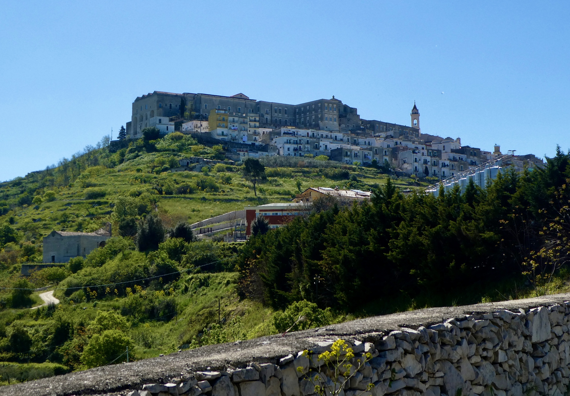 Surprisingly, the only other guests at the B&B are leaving at the same time. Surprising, because they also are leaving by bike. They’re from Netherlands and on their own tour, biking their way home from Greece. More surprisingly, they’ve got the same destination today, Margherita; and beyond that they’re also biking around the Gargano promontory, as we plan to do; so there’s a chance we’ll see them again. They don’t seem inclined to linger and chat though, and after a perfunctory exchange are underway. They get off to a slow start, pushing their heavy-looking loads and e-bikes up the very steep lane from the B&B. He pushes his up, then looks back to see that she’s stuck in the middle of the road and unable to push up herself because it’s too steep and her cleats slide on the pavement. He walks back down to help her out, and soon their e-bikes kick into gear and they’re off.