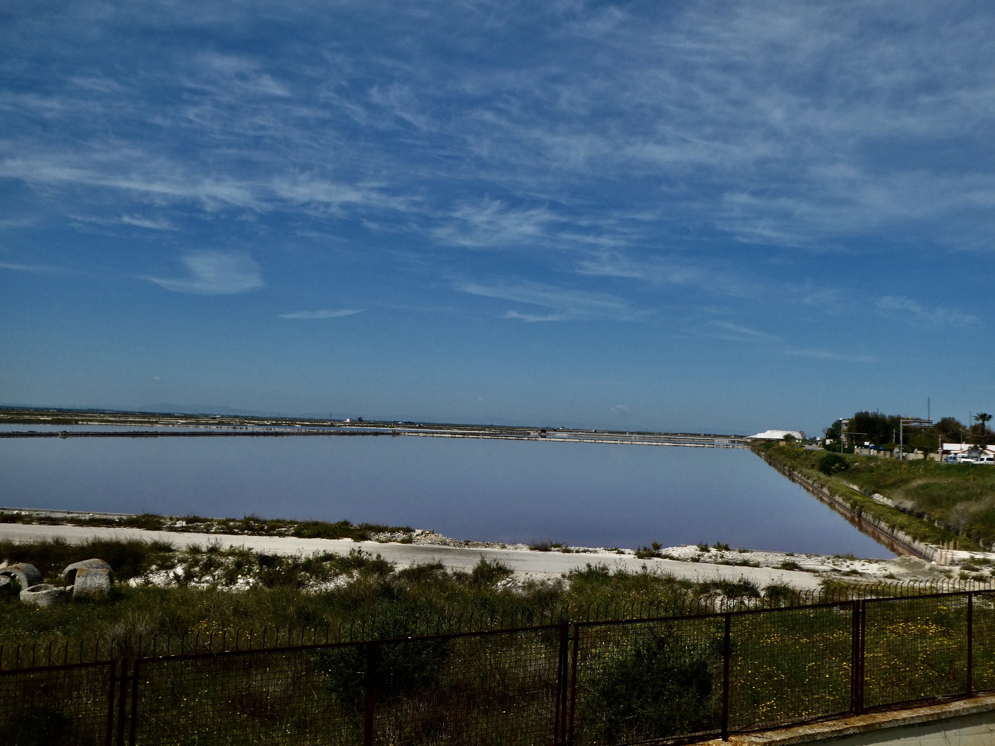 Unfortunately, beyond the salt works we come to the end of the path and are dumped back onto SS7, the narrow and shoulderless two lane coast road. It’s not bad really - traffic is light this morning, it’s a straight road most of the way so visibility is good - but it’s just busy enough that you can’t fully relax and enjoy the sights, which are interesting the entire way. On the left, lorries are driving back and forth along the lagoon shuttling their loads of salt; and on the right we’re constantly passing fields of pulled onions drying in the sun with work crews bent over or on their knees loading and carrying hand-filled trays of onions. Also, we pass one interesting structure after another - newer, well maintained homes; what look like the eroded ruins of old shelters for agricultural workers; a few towers built many centuries go as defense against invasion by the Saracens.