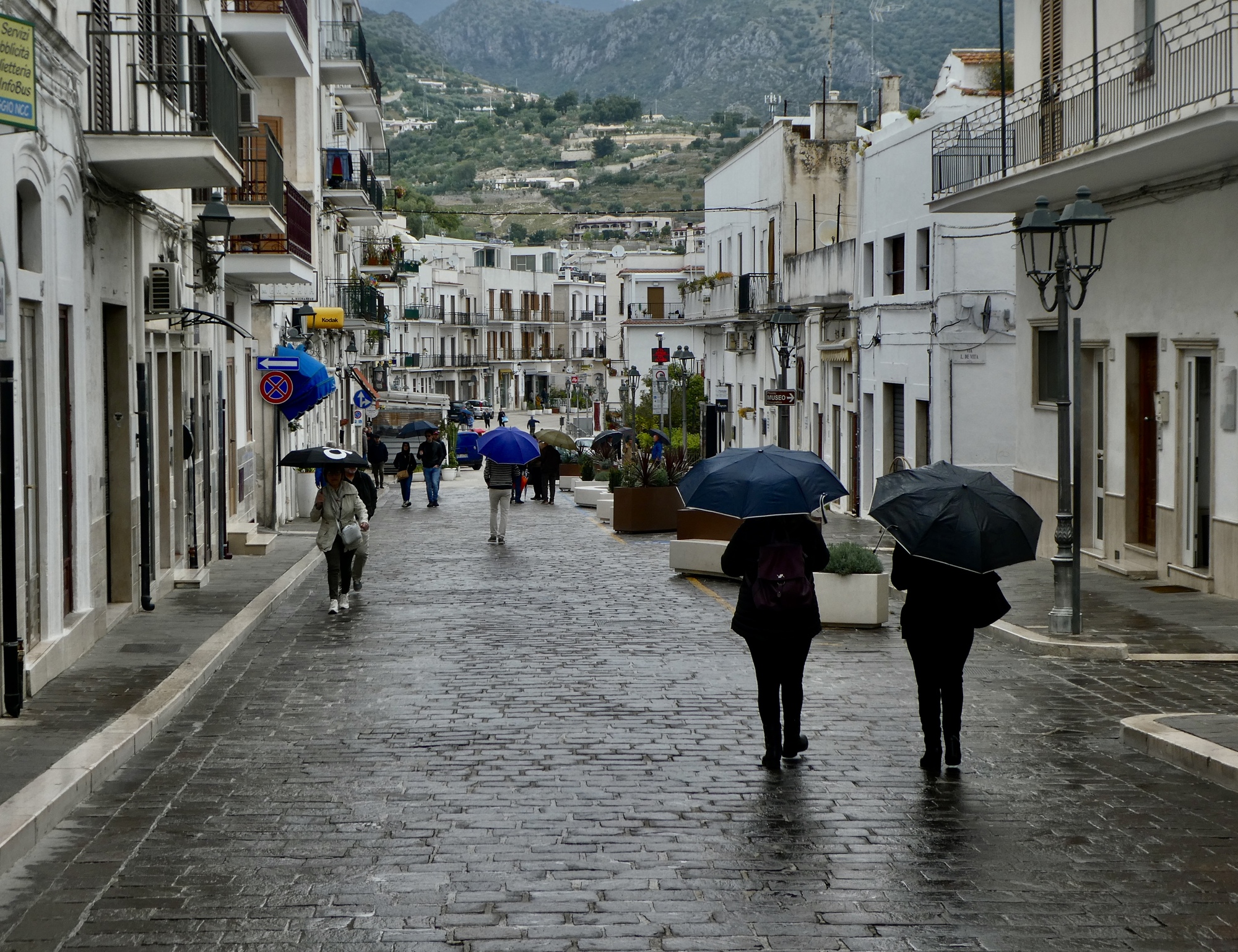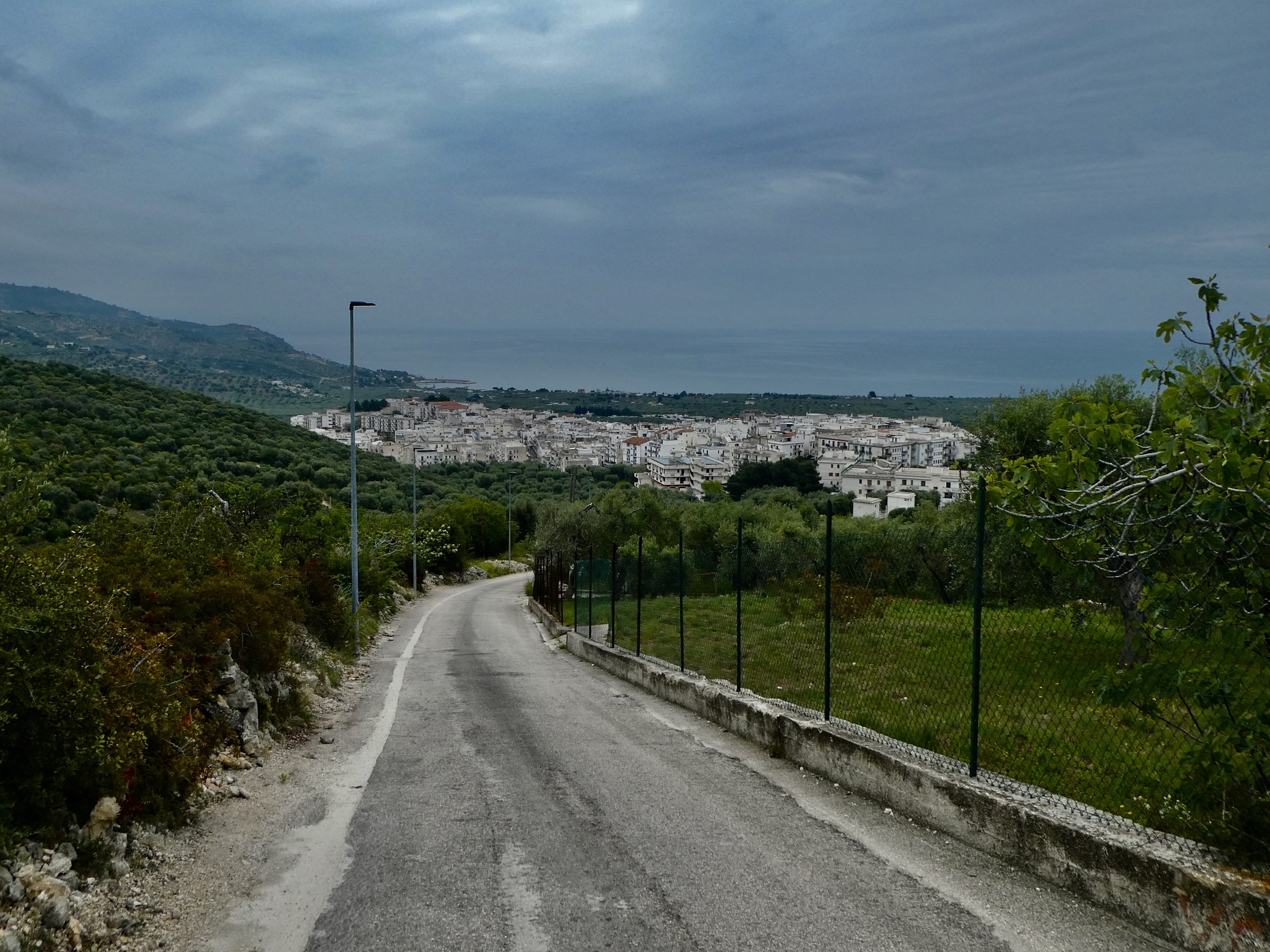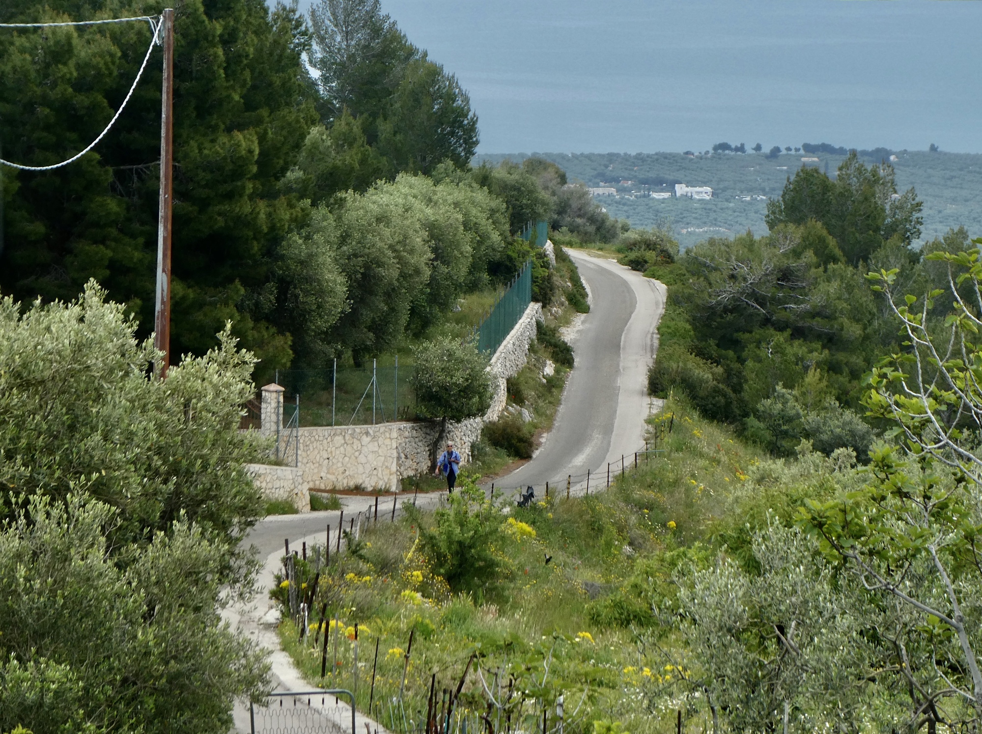 You’ll remember that Mattinata sits in the narrow valley between steep-sided Mounts Saraceno and Sacro. As a result, there are really only two walking directions out of town. Yesterday we walked the short distance from town to the sea - flattish, since central Mattinata sits at an elevation of only around 250 feet. Today we’re headed the other way, up-valley.