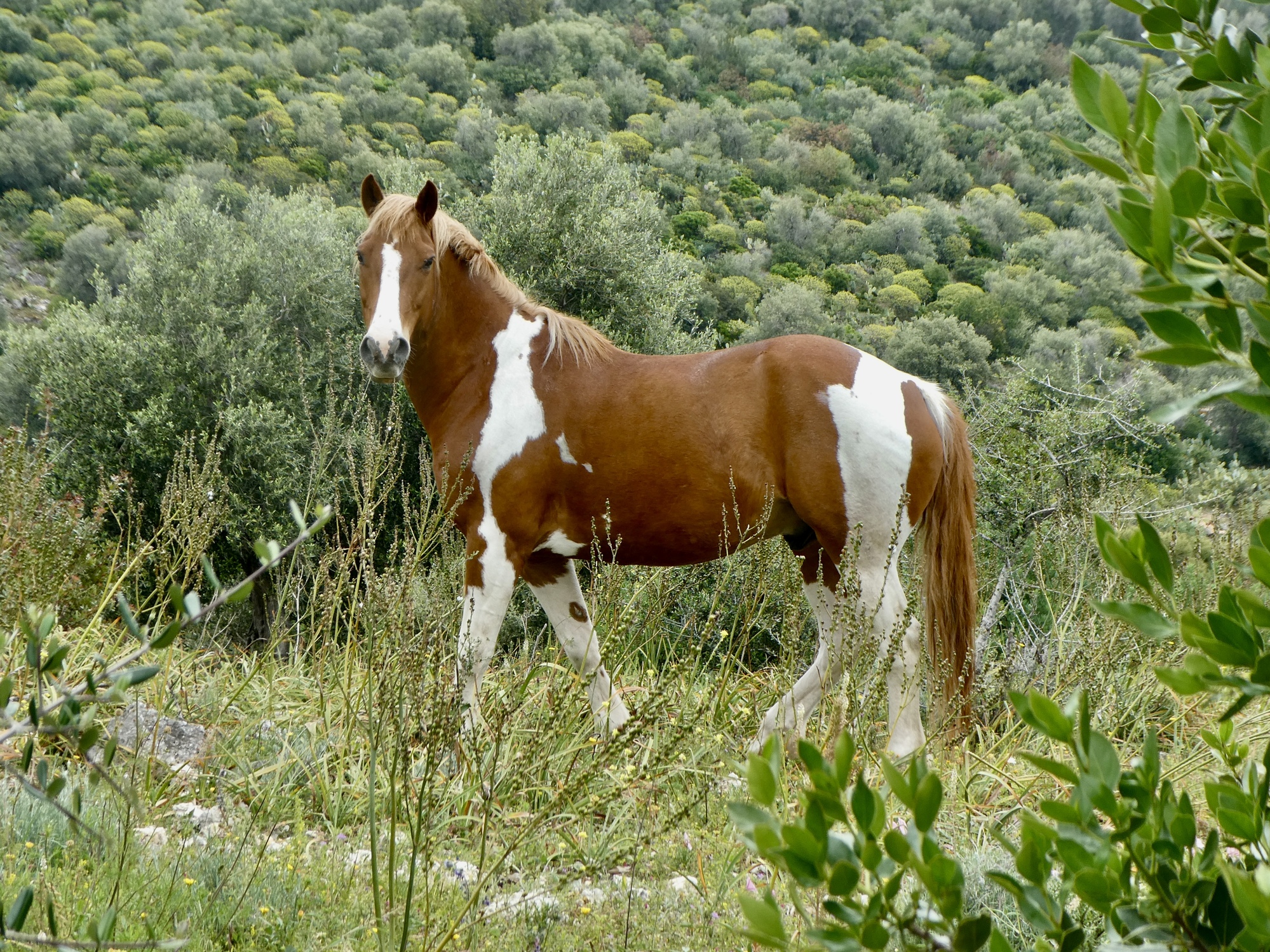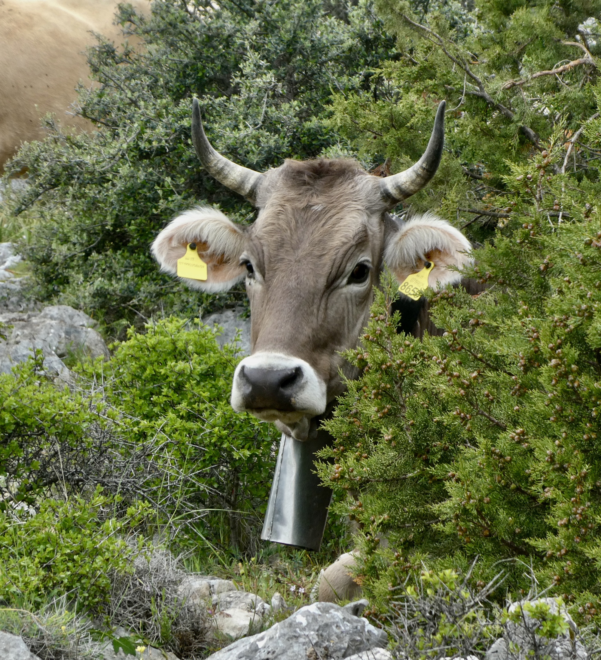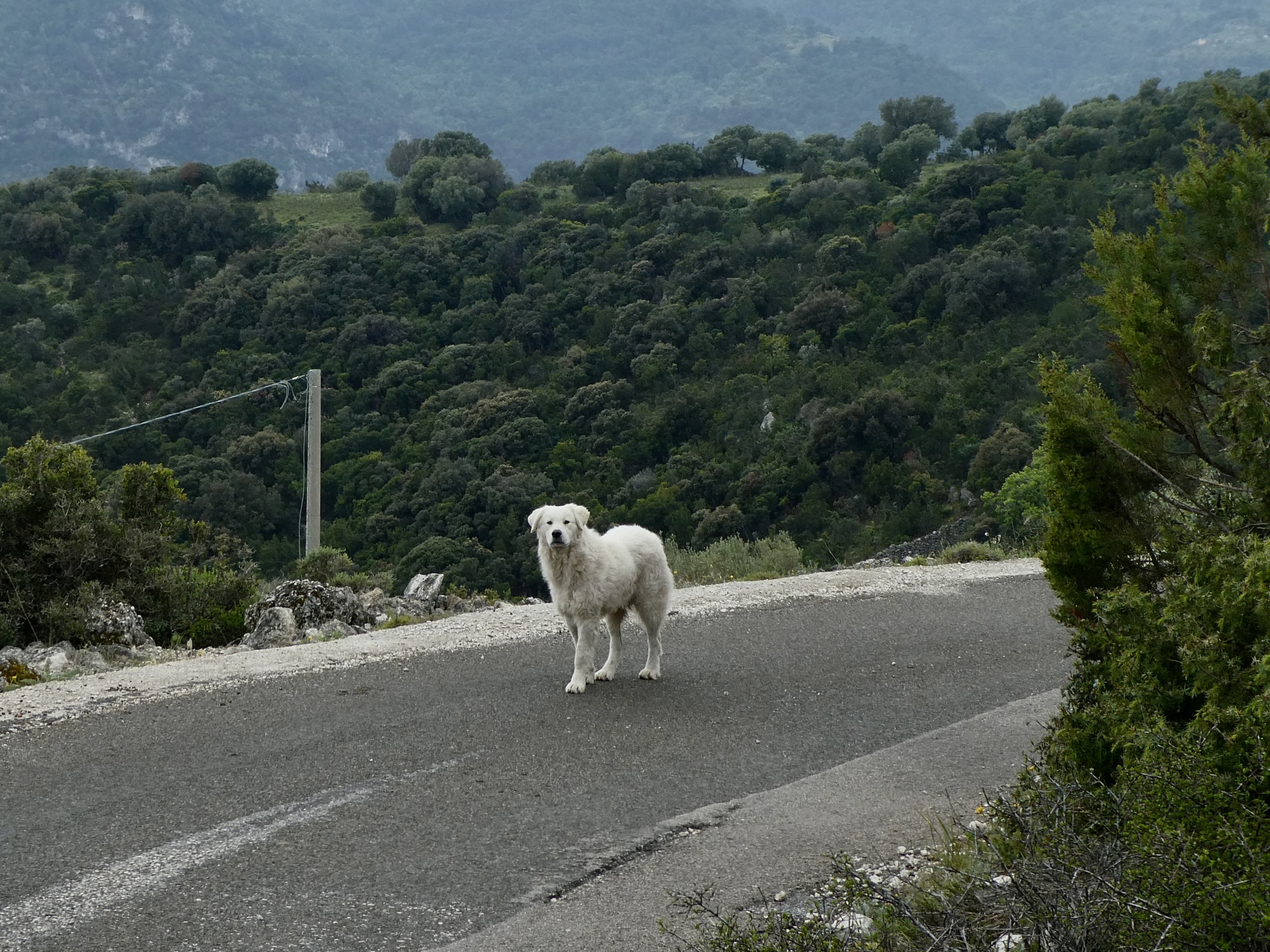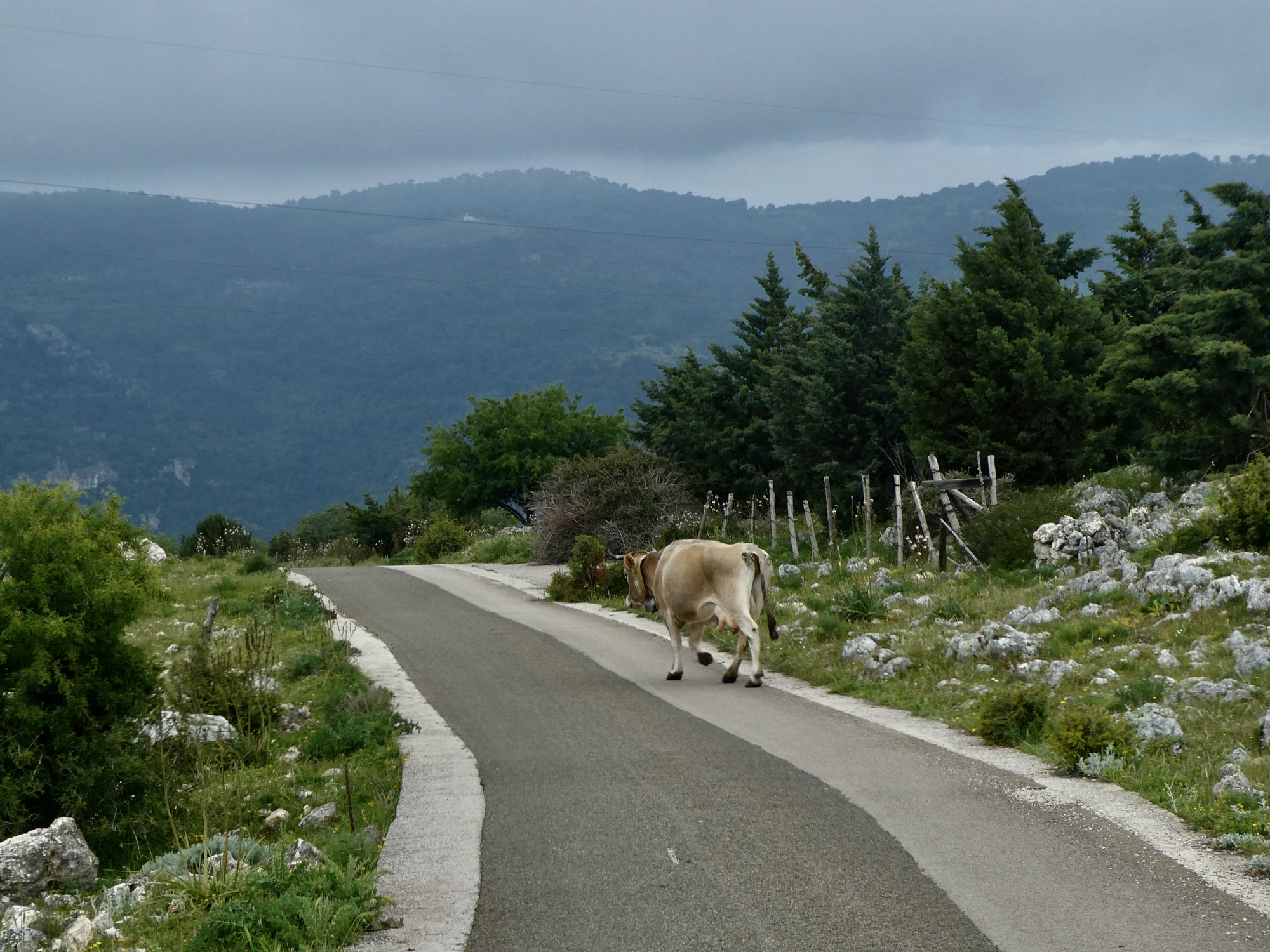 I’m pleased to have made it about a mile and a half into the climb before Rachael finally catches up with me. We walk together for a ways before I find something else to yank out the Lumix for and she climbs on ahead. The road continues upward, but less steeply now - generally rising at around a comfortable 8-10 percent. Above around a thousand feet the nature of the surroundings change, with the woods changing from olives to juniper and the fields broken by stone walls.