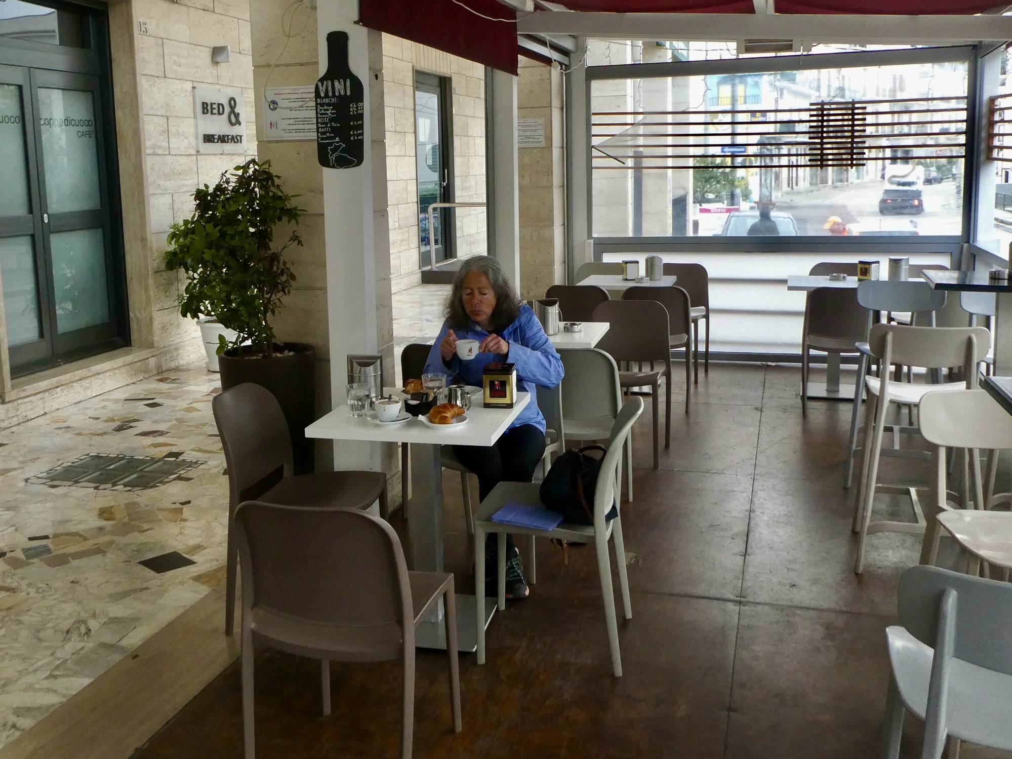 Later, she WhatsApp’s a request to our host to drop off a few coffee pods when it’s convenient, but we learn that our B&B has no espresso machine. As it happens, our building houses two B&B’s and we’ve just robbed some cookies from the other one. Nothing to be done about it now!