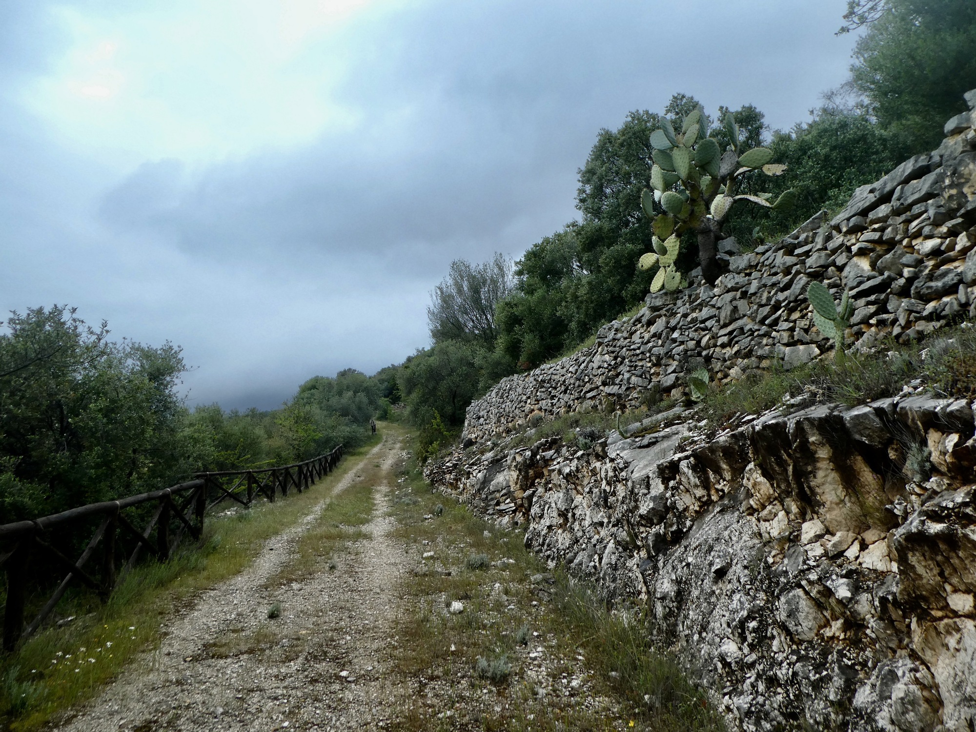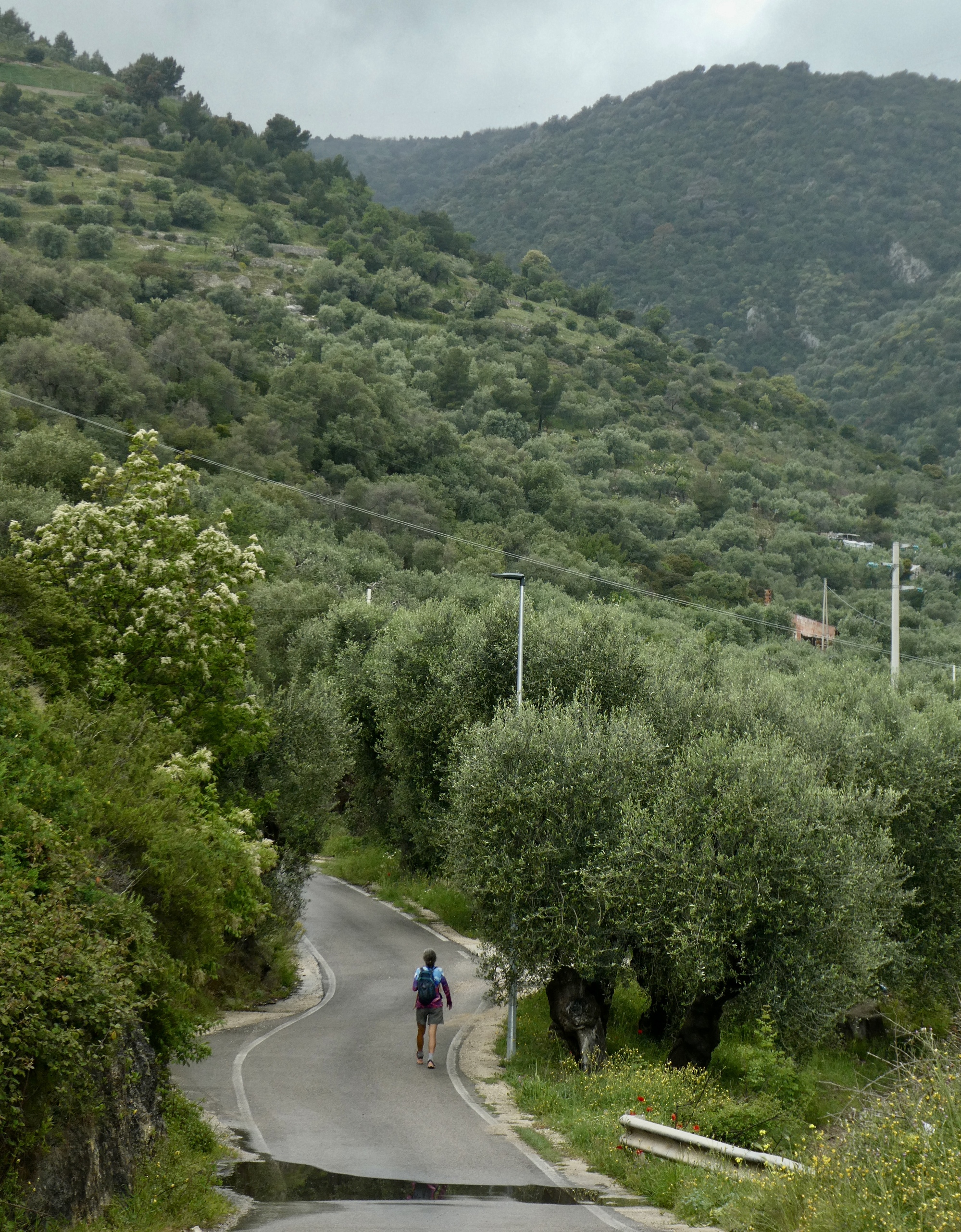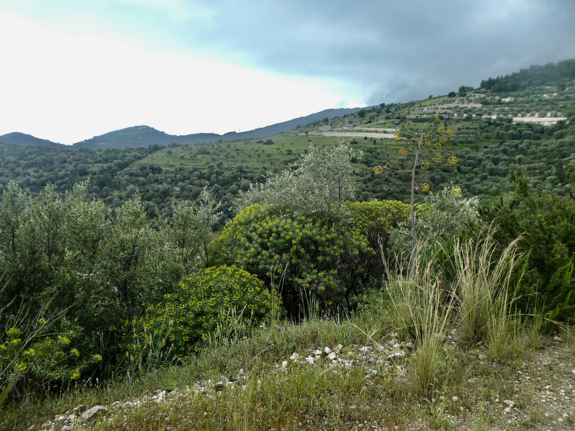 We’re in Mattinata for three nights as a bailout while we sit out the rain, but it’s turned out to be a much more enjoyable stay than we’d anticipated. We really like the town, we loved yesterday’s hike, and we got enough of a break in the weather today for a decent hike as well. This time we followed a second route north from town, a lane that eventually becomes a footpath zigzagging up the side of Monte Sacro into the national park. The walkable path is shorter than yesterday - not much more than four miles round trip - but it’s also a more gradual climb and at least as enjoyable. We turn back when the path deteriorates further into an overgrown grassy route further up into the hills that in today’s conditions is just too wet with our footwear. I test it out by walking maybe fifty yards, which is enough to thoroughly soak my shoes and socks.
