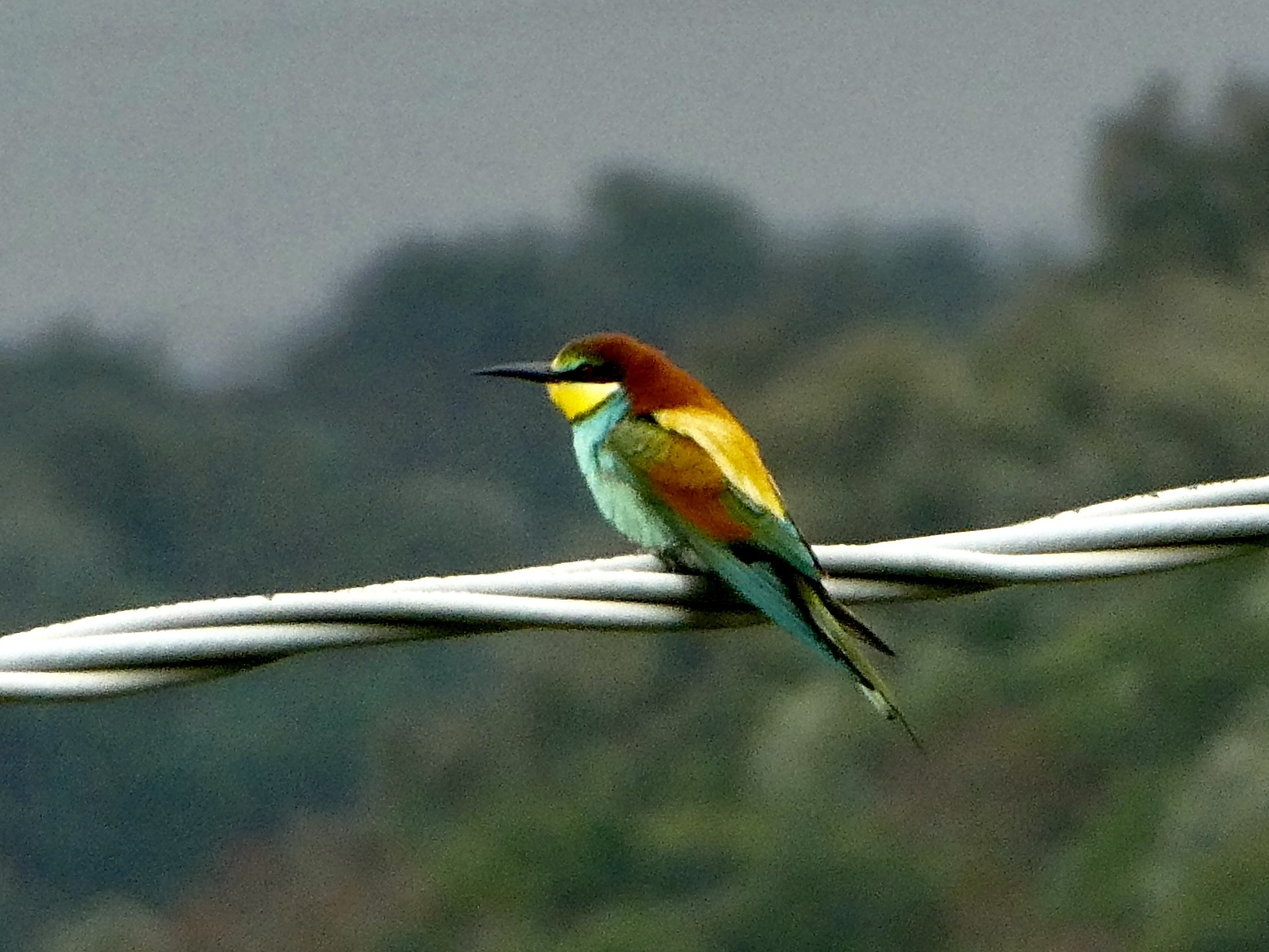 We both thoroughly enjoyed our walk, which for much of the way we took alone at our own pace; but for me the day will be best remembered for seeing a flock of about a half dozen bee-eaters putting on an aerial show high above. Bee-eaters are astonishly colorful birds that win my vote for the prettiest bird species in Europe. I’ve only knowingly seen them once before, and was secretly envious when the Grampies spotted one in Portugal earlier this spring.