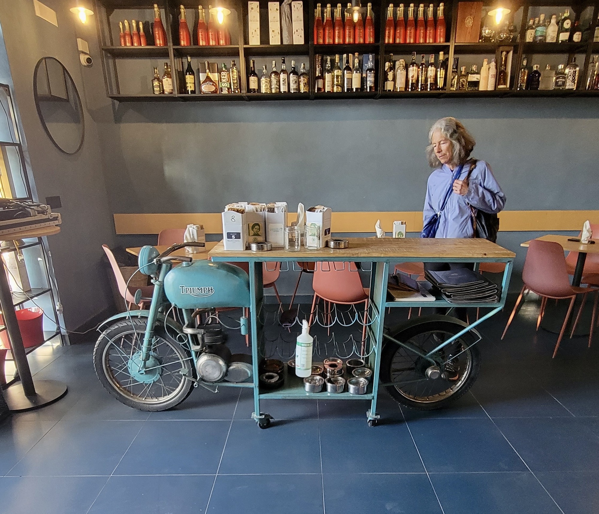 The day begins in the usual way, with us going to the neighborhood cafe to redeem our breakfast coupon for coffee and a pastry. This is at least the sixth night in a row our ‘B&B’ has outsourced their second B in this way. Today’s partner is a triumph, serving us up tasty slices of crostata rather than the usual cornati.