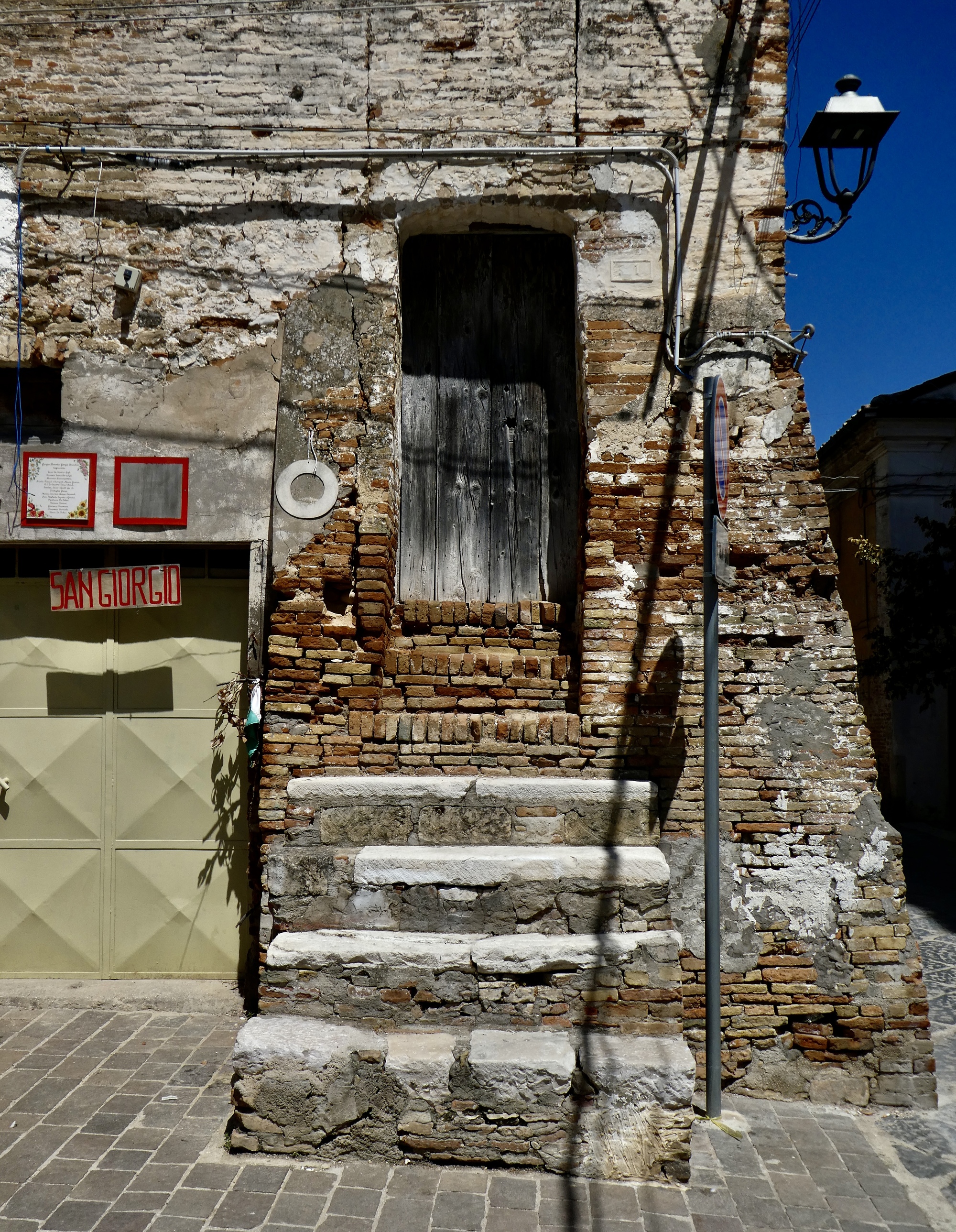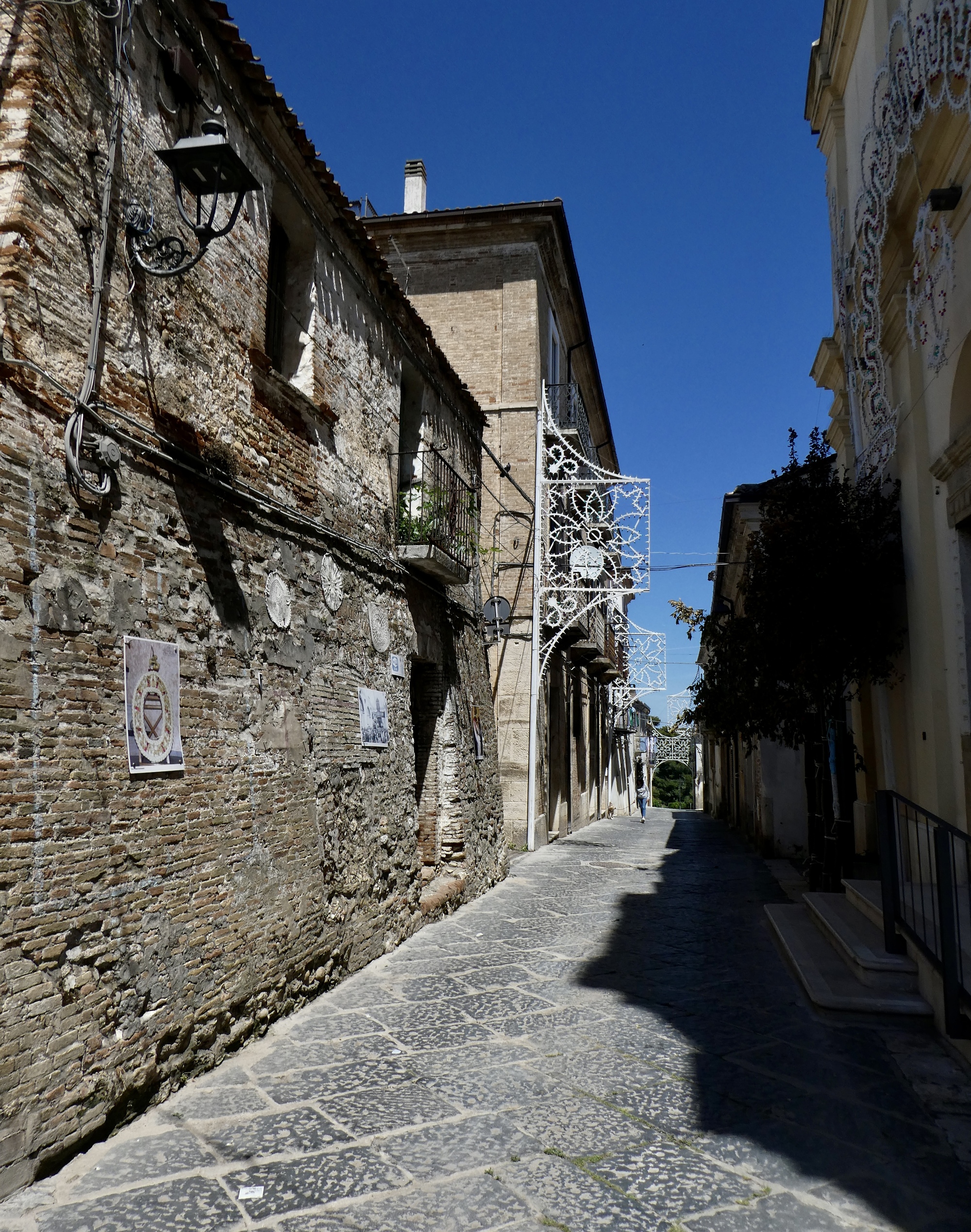 An unexpected highlight of the day comes at its high point when we bike into Chieuti, a village I knew nothing about until we arrived. It is a surprisingly interesting place, especially now when its streets are still decorated from its annual celebrations to honor the town’s patron saint, San Giorgio Martire. It’s too bad we hadn’t arrived perhaps a week earlier at the height of the celebrations and seen the oxcart race that begins in the countryside and finishes in front of the church.
