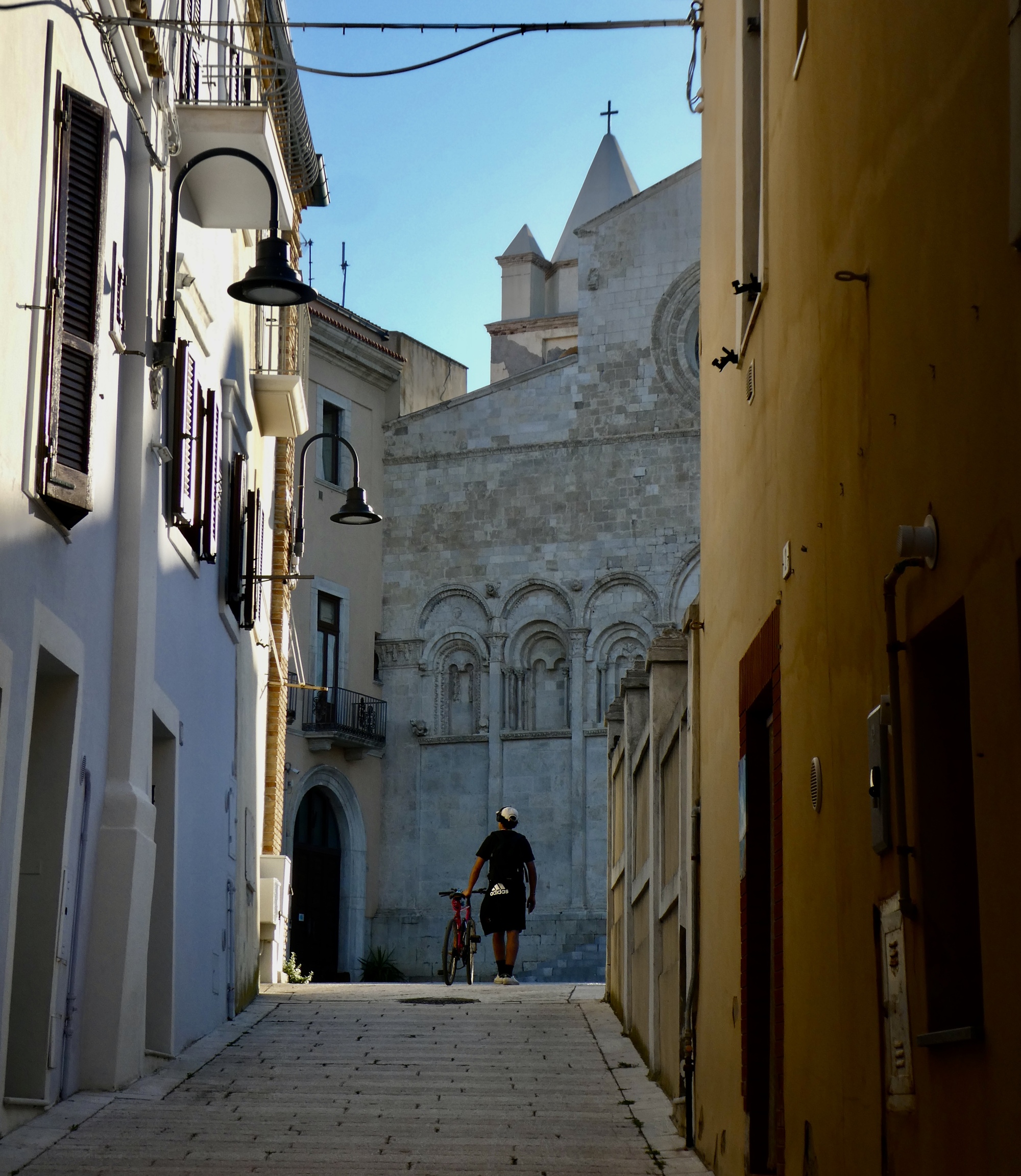 An old fishing town that’s evolved into a popular seaside resort, Termoli has a wealth of attractions to interest visitors but looks like it must be an exceptional place to live as well. It’s easy to imagine coming back here some year and using it as a base for week or more. We’ll get a look at the cycling opportunities here, but first let’s look at its walled, fortified historical center - an intensely colorful place that among other things boasts some of the narrowest alleyways in Europe. Walking it’s walls and exploring the alleys makes an ideal way to spend an hour or two while you’re waiting for your restaurant to open up.
