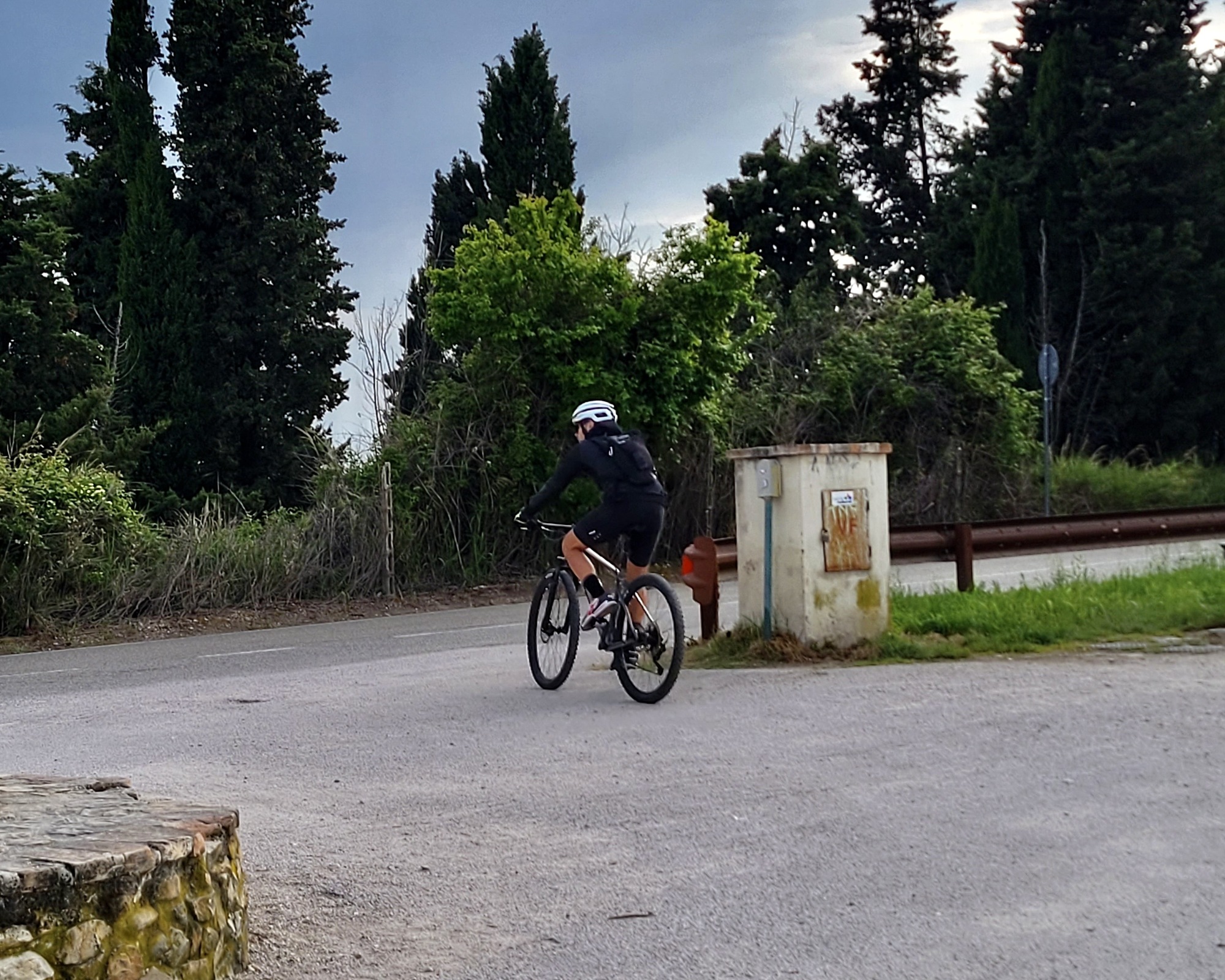 We got to Pesaro in time for lunch and then checked into our apartment. After allowing time to digest, the weather looked good enough to get another hike in. I managed to fit in an 8.8 mile hike while there was still plenty of light. I ended up following a significant portion of the Strada Panoramica Adriatica road which I later discovered Scott was on the same road but going farther. See my route below showing the many hair pin turns. There were a large number of cyclists, which was exciting to watch and fortunately enough room on the side so I could avoid getting hit.