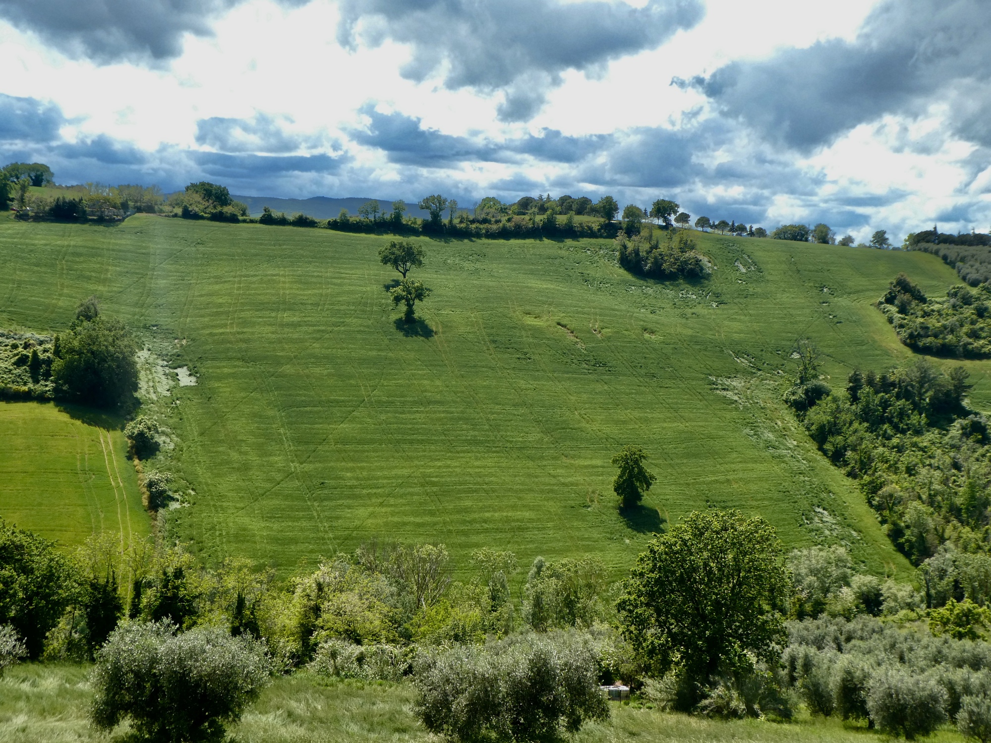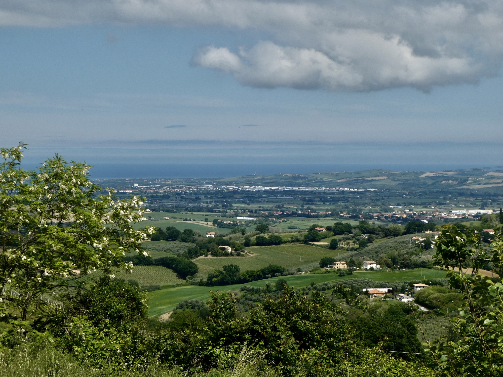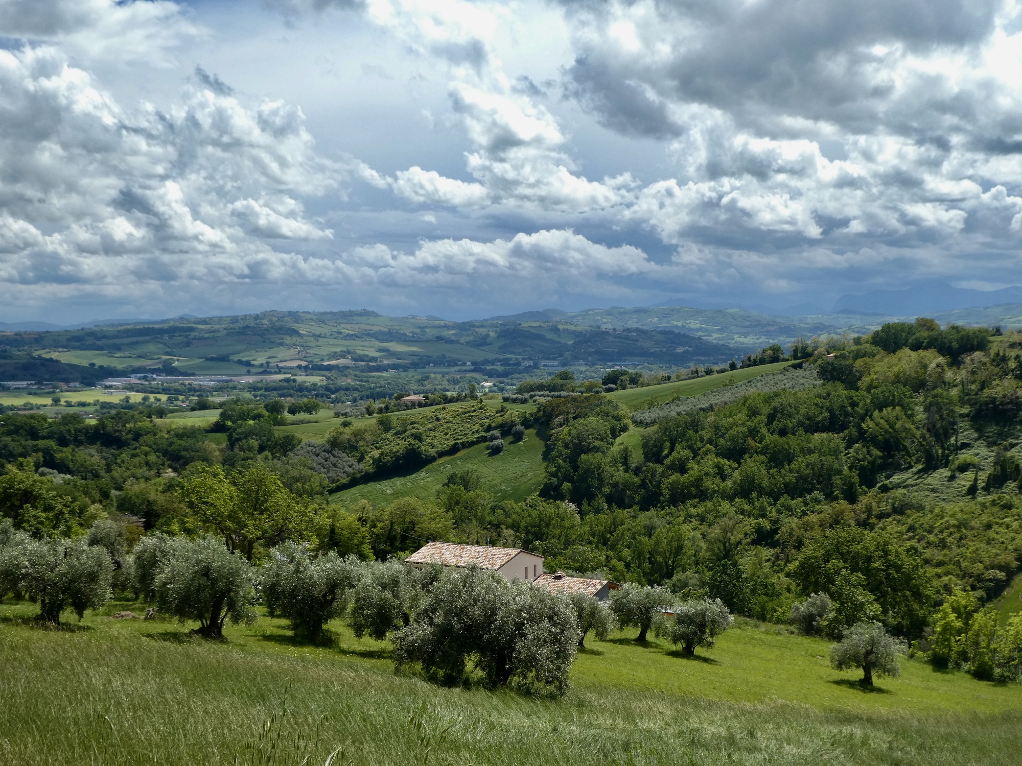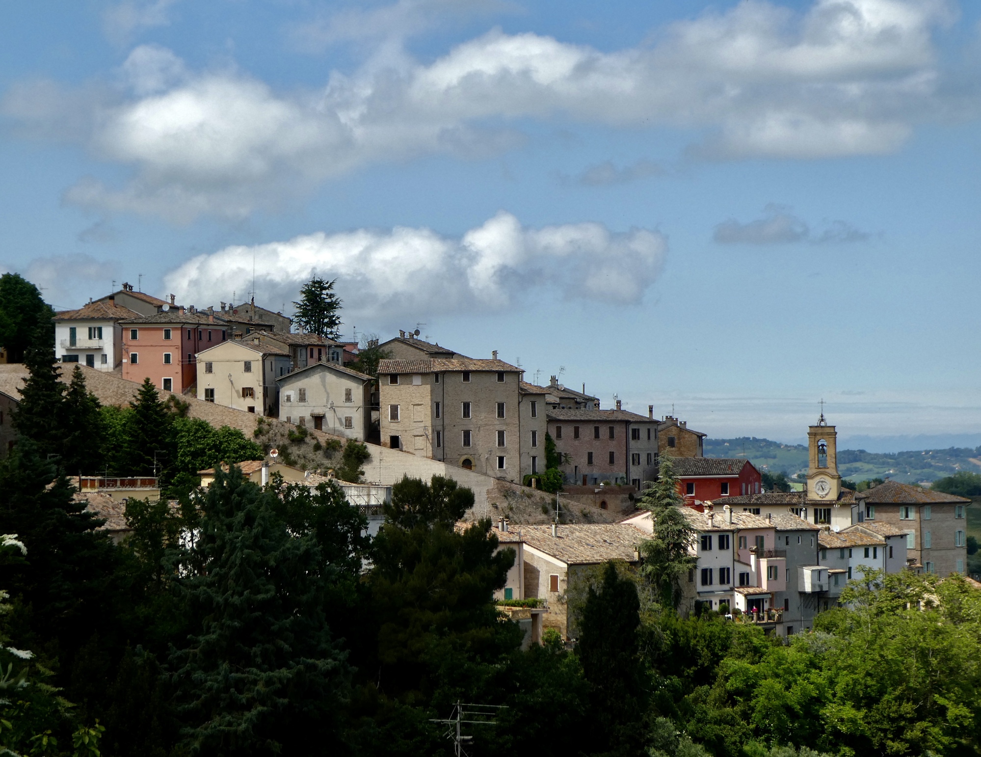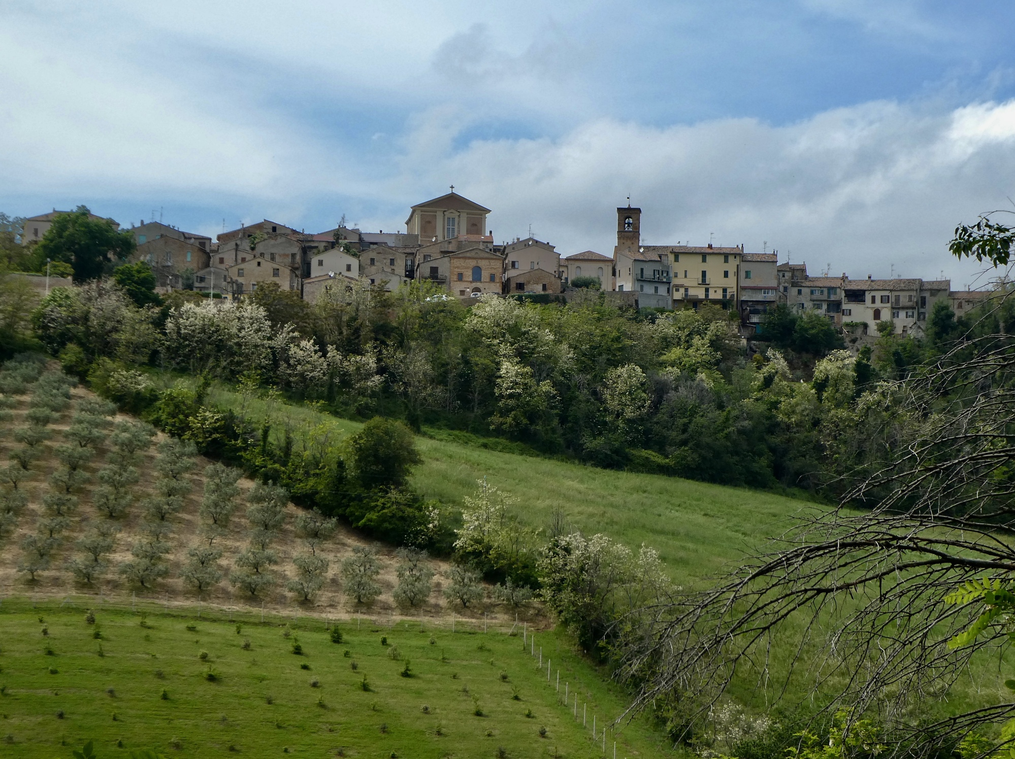 And it’s a very scenic ride, through the familiar agrarian Marche countryside I admired biking San Bartolo two days earlier. The surprise is how scenic the hill towns are that I bike through or nearby as I climb.