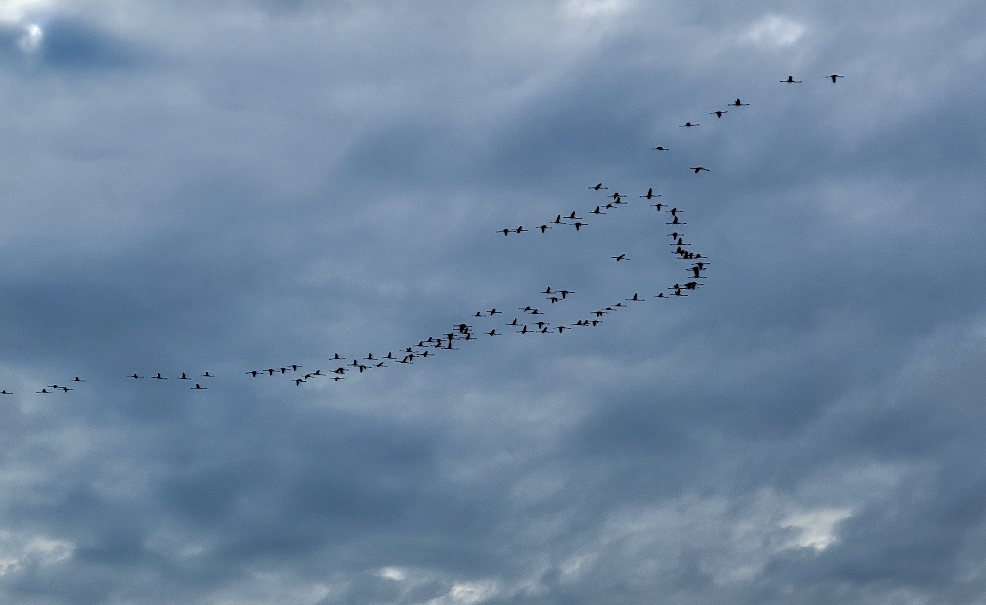 The big question I have for her is whether she was lucky enough to see flamingos. She surprises me by saying she did indeed - a huge flock of them passed overhead on her way back to the room. She shows me the photos from her phone as evidence, and I realize it could be the same large flock that I witnessed from the other side of the water. It’s confirmed when we check the time stamps on our photos and see that hers was shot a minute after mine.