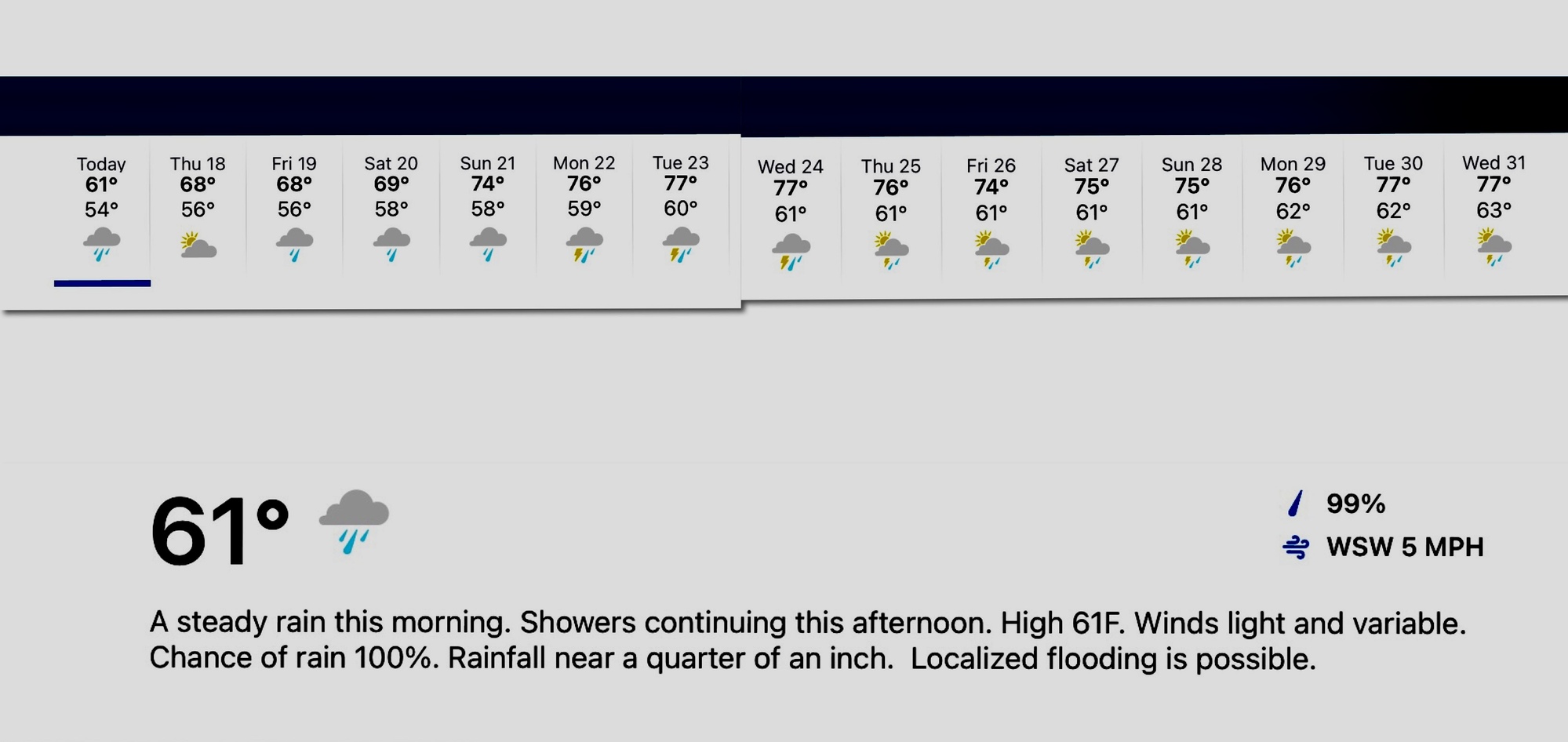 This is shaping up as a historically wet spring in Italy. It’s been raining off and on ever since we arrived in Puglia, and the foreseeable forecast ahead looks no better. Here’s what’s on tap for Brescia for the rest of the month, which is typical of everywhere around: