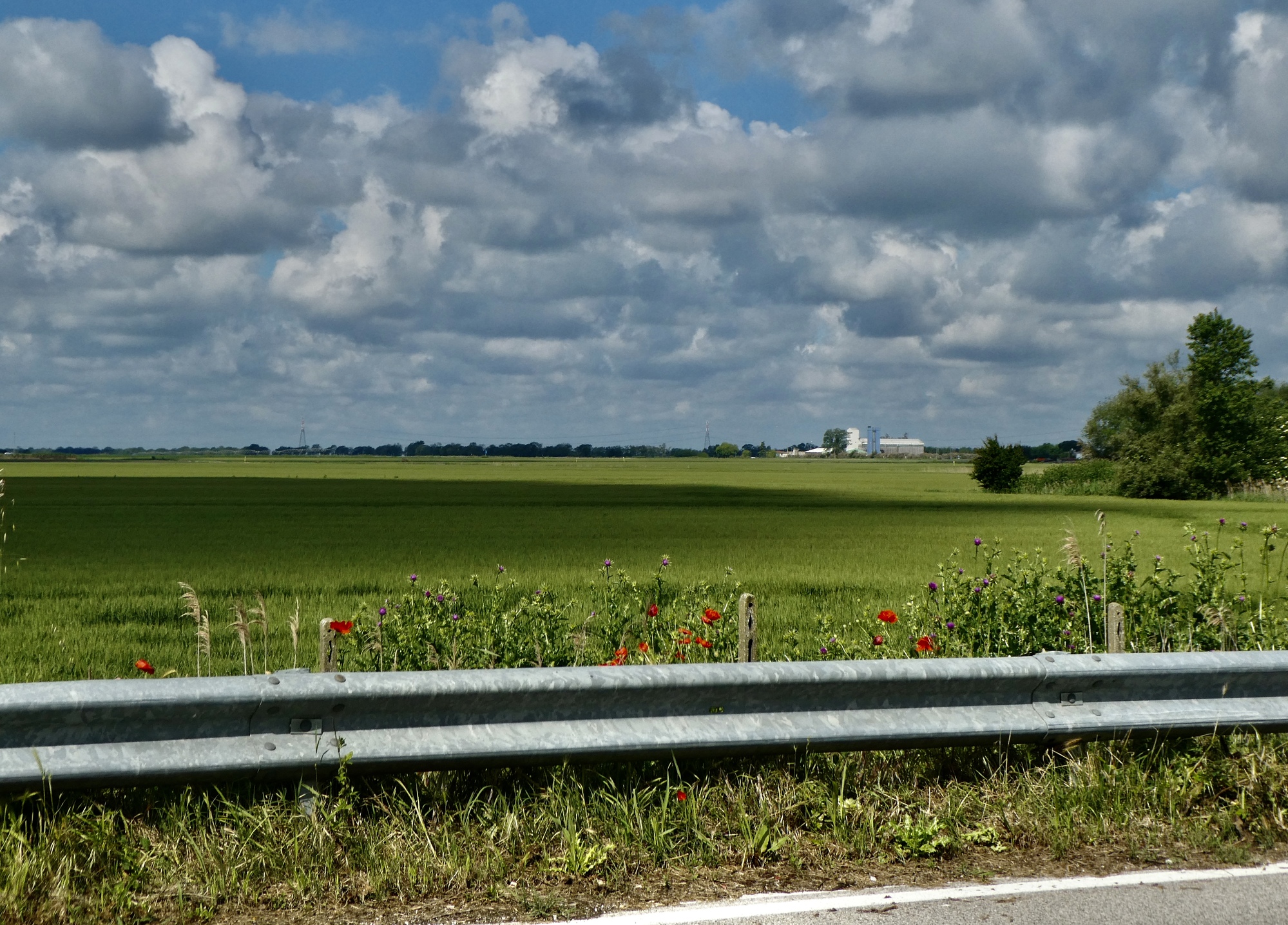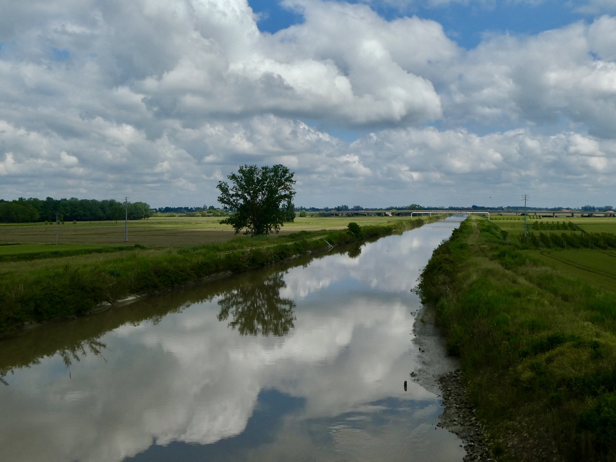 And actually we’re doing exceptionally well considering with our itinerary of short, easy moving days and multi-night stays. We’ve been really lucky recently to have our schedule line up well with the breaks in the weather. We sat out the rain in Termoli and got just enough clearing to see us into Comacchio when it was time to move on. Yesterday we laid over in Comacchio while it rained, and the weather’s fine today for the ride to Ferrara. We’ll be in Ferrara for three nights, which is perfect because two days of hard rain are expected but the sun should show it’s face again when it’s time to move north. We really can’t do any better than that.