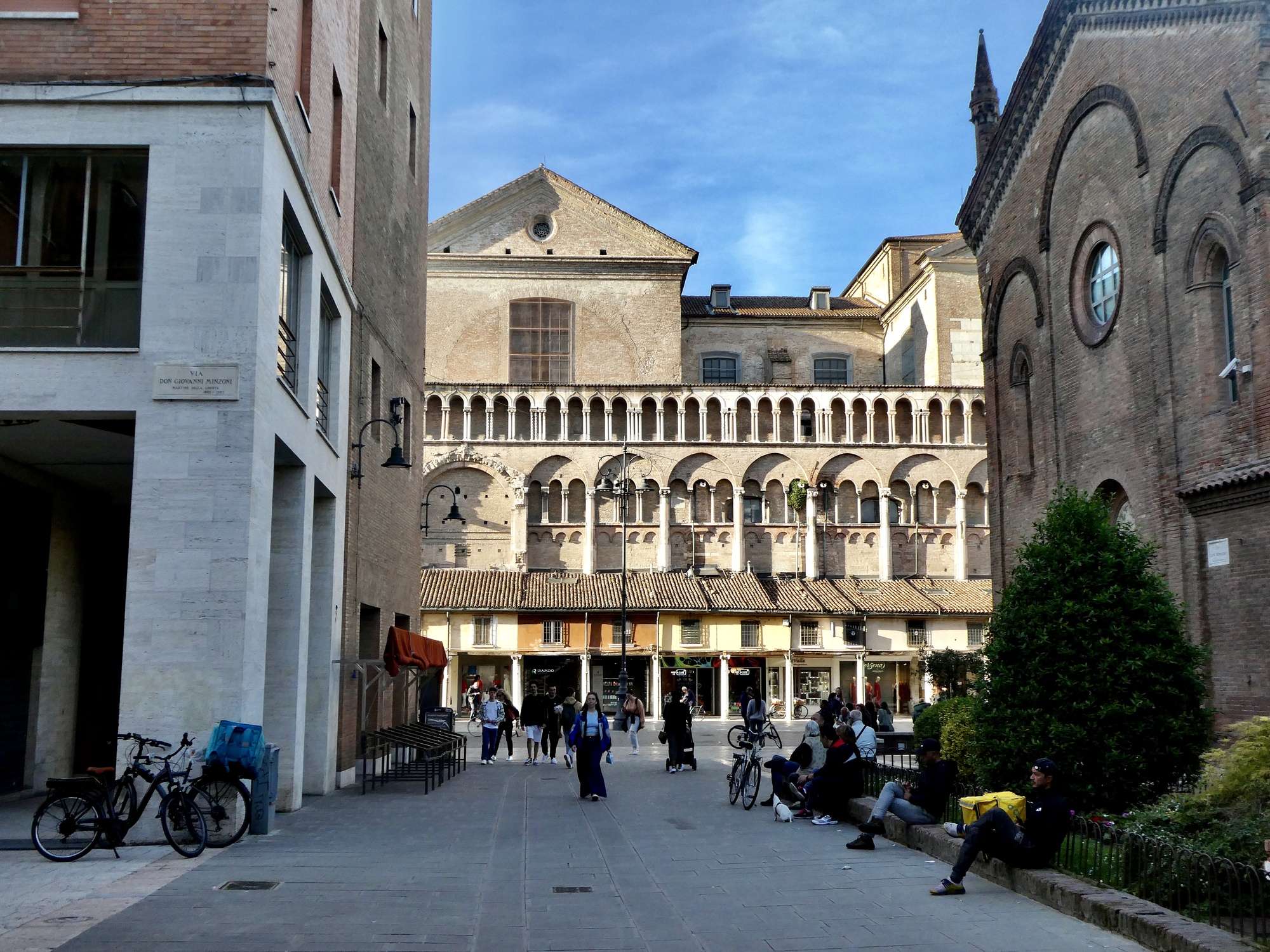 Ferrara is an exceptional city, in our opinion. In spite of all the trauma of living through Covid, we enjoyed our four night stay here three years ago and are excited to be back so soon. We’re in an excellent apartment in the historical center, and rain or shine we’re going to enjoy it here. Today promises to have the best of the weather, so I make it outside with the camera while the sun shines before we leave together for dinner at a restaurant near the cathedral where we ate three years ago.