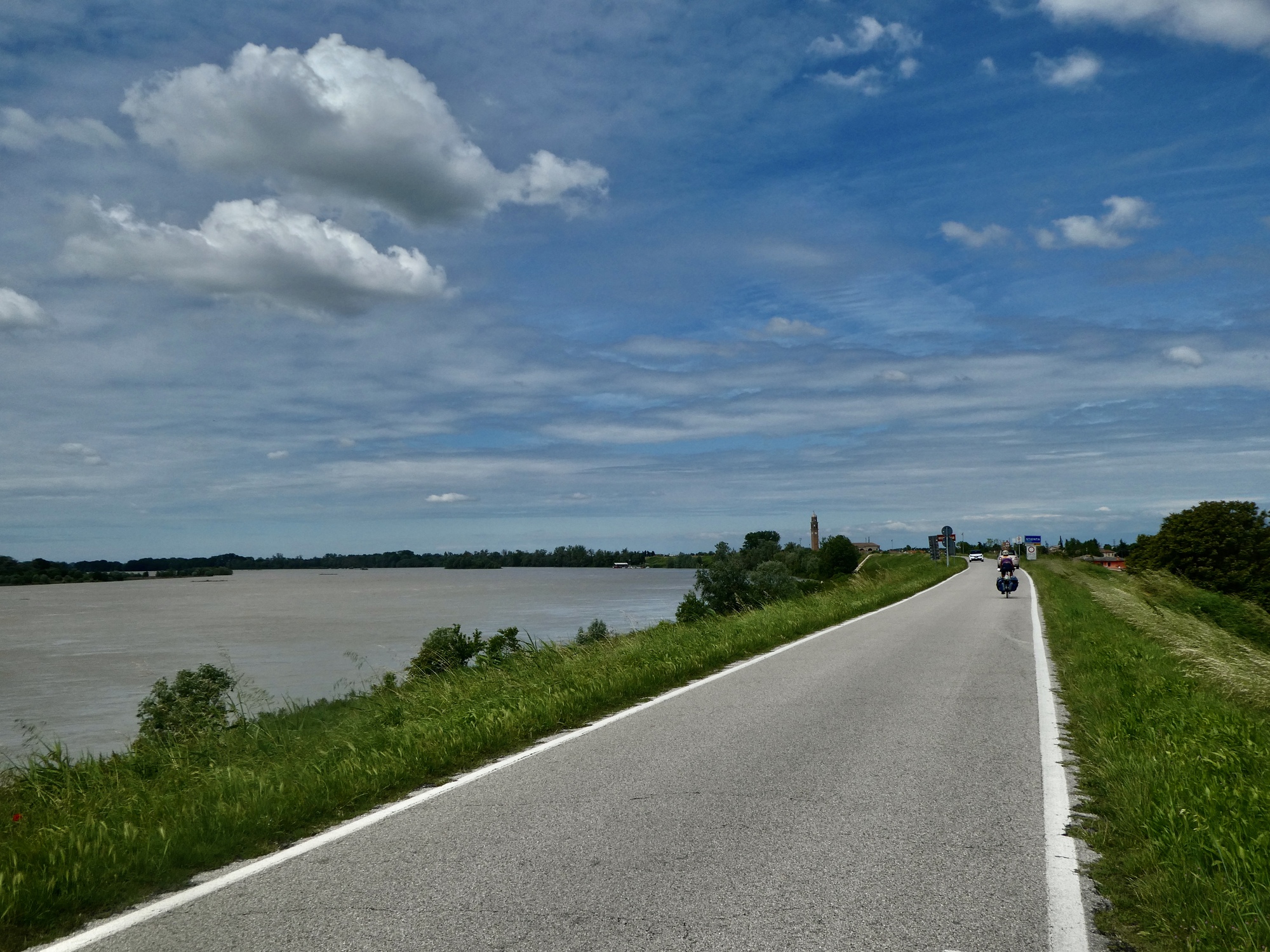 The next five or six miles are a beautiful ride, following the Po on its left bank this time. It’s really just like yesterday’s miles, but better because it’s sunny today.