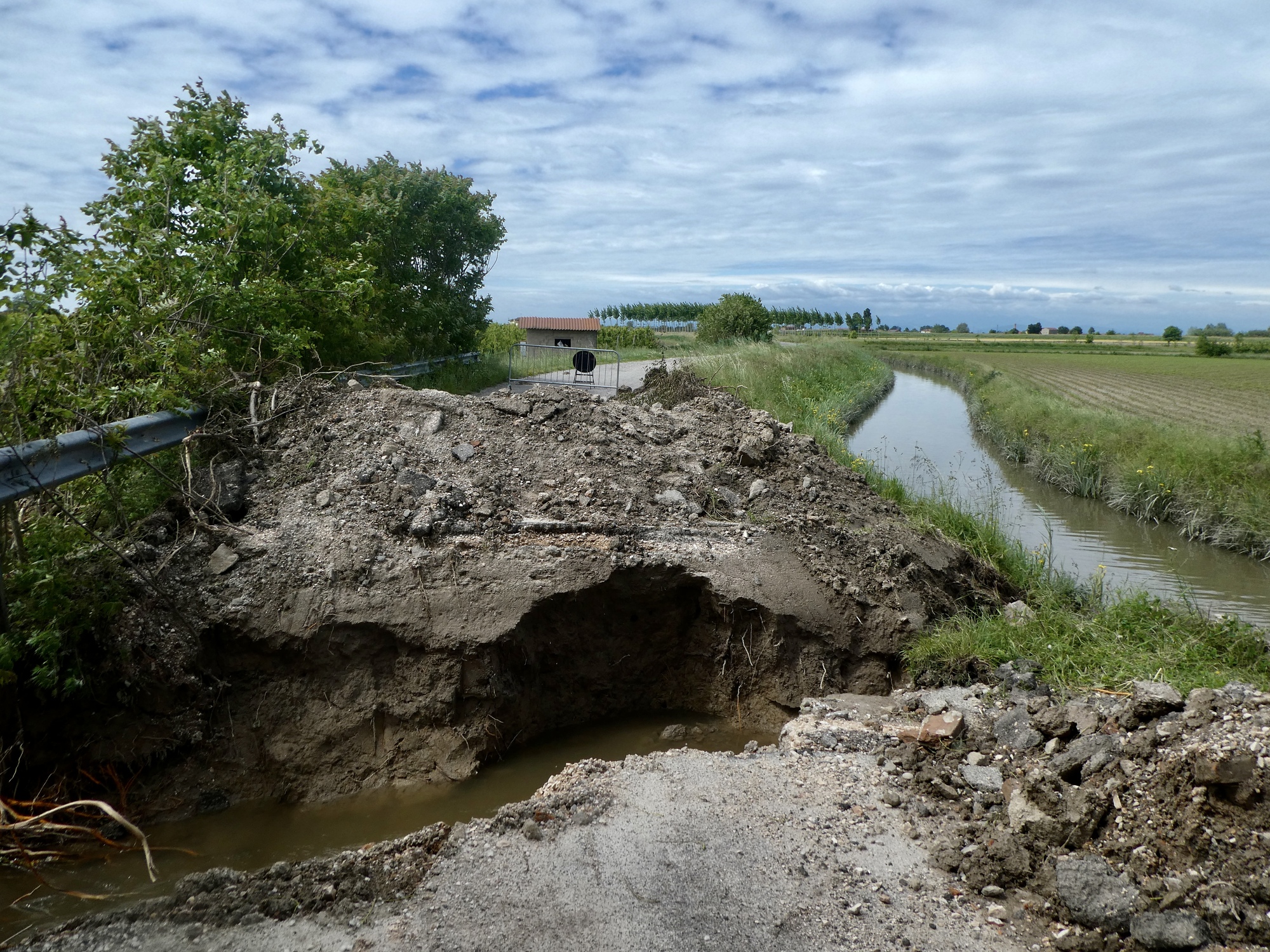 The ride begins with a four mile ride straight north to the Po. Fortunately we’re not taking the flooded EV8 spur, and traffic isn’t bad. In fact it’s pretty much nonexistent for the first mile plus because the Bruce Springsteen concert is today and the street we’re on is barricaded and monitored by traffic cops in preparation for the crowds soon to come.