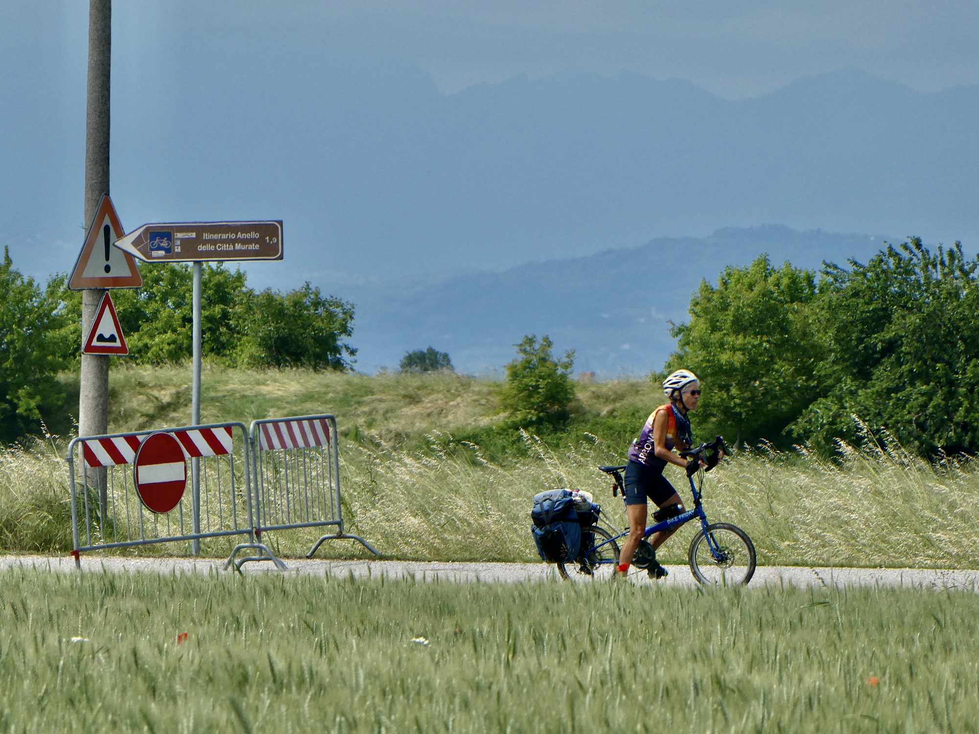 Annoying in other circumstances, but I’m so startled by the sight of Montagnana itself that the extra distance counts for nothing in comparison. I want a show of hands here. Who has even heard of Montagnana before or knew annything about it? The CycleBlaze search function doesn’t show any other hits on it, but maybe some folks knew of this place but just haven’t stitched it into a tour yet.
