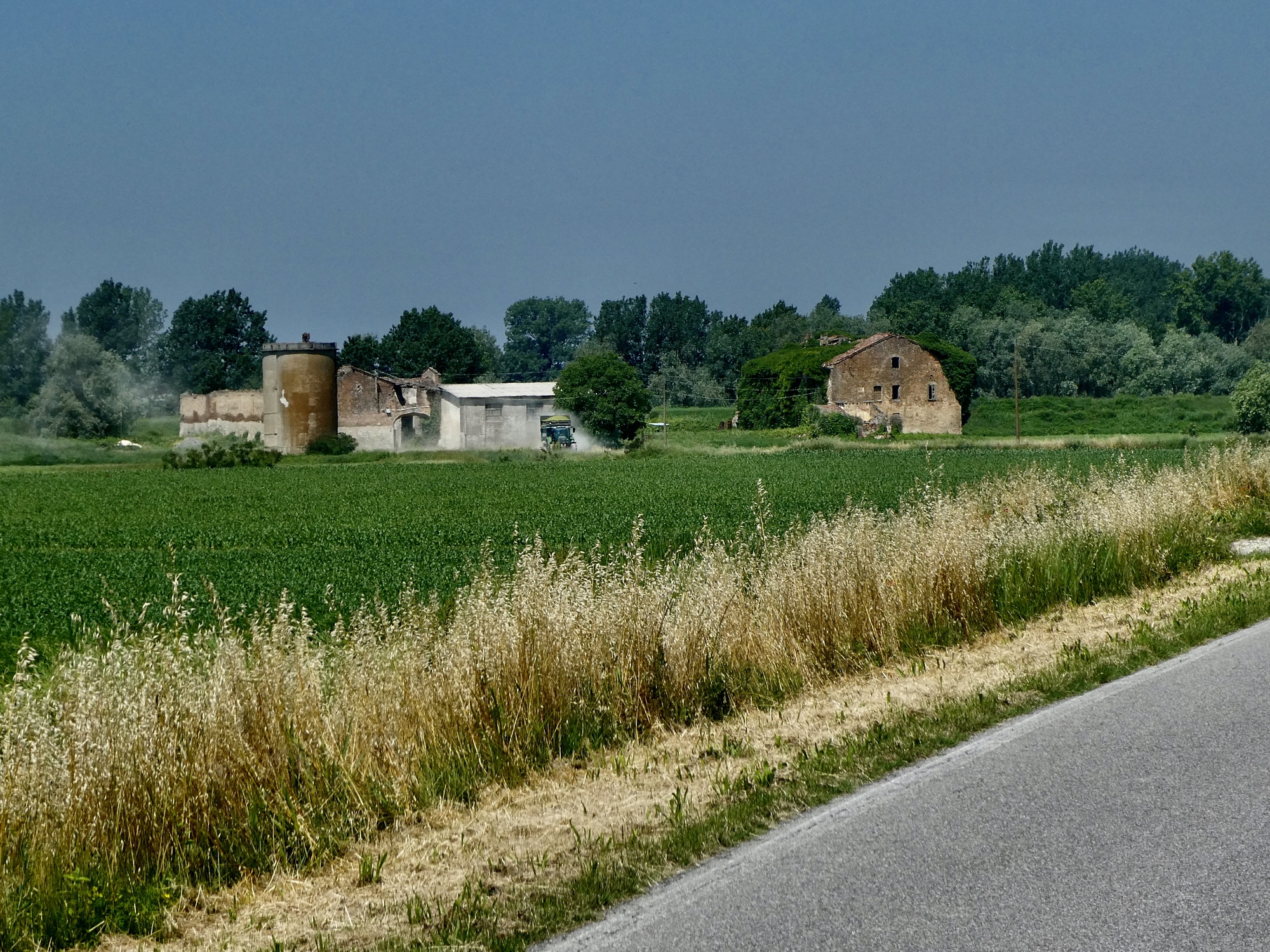 While I’m wheeling the bikes out the door Rachael turns over the keys to our host and mentions our situation. The host offers to call the restaurant for us, which sounds like a great idea. She’s really helpful, and speaks just enough English to make a difference. And she presents a surprisingly good breakfast (scrambled eggs!) for such a modest appearing and inexpensive place. If you’re considering staying over in Casalmaggiore we can recommend the B&B Bijou.