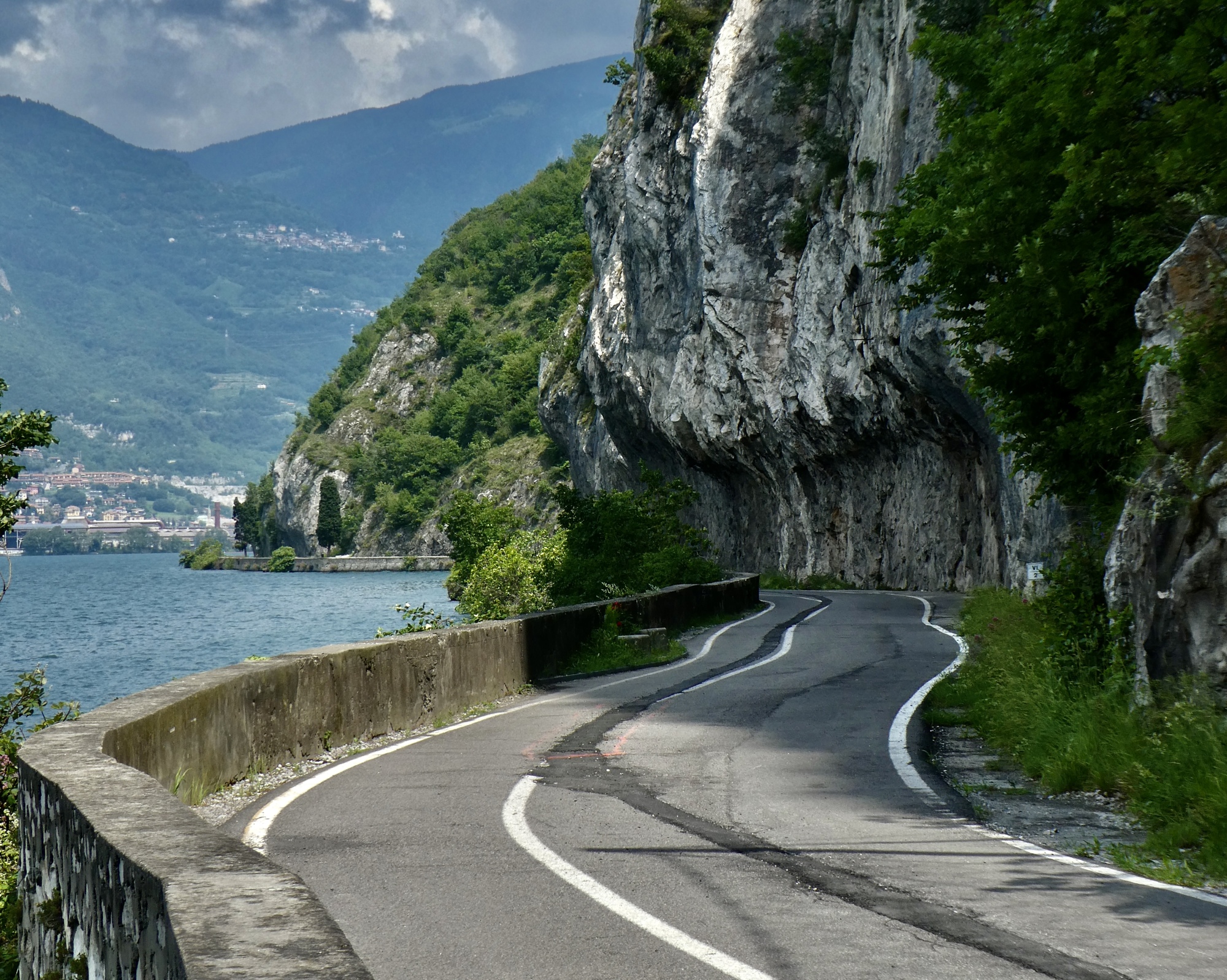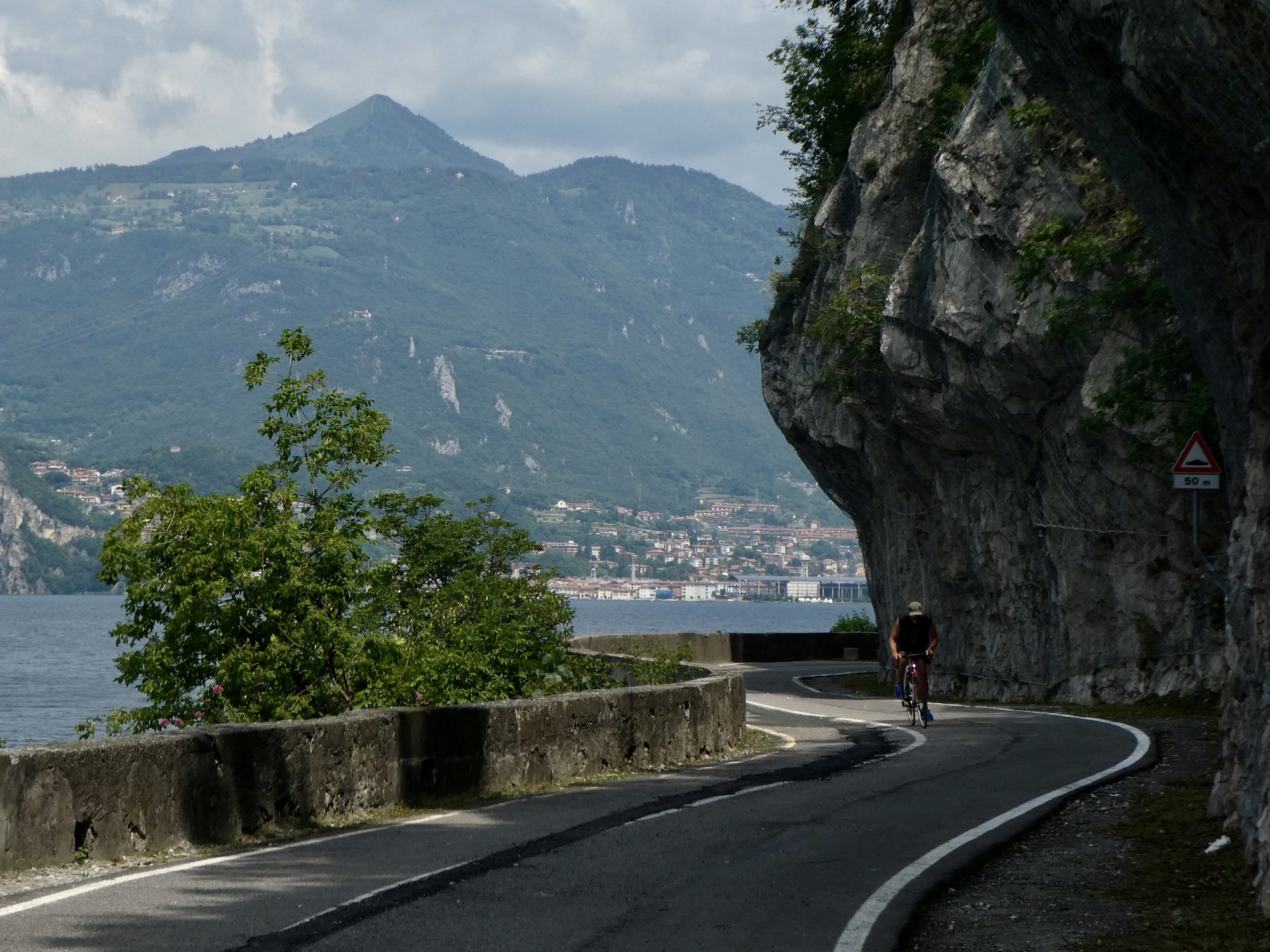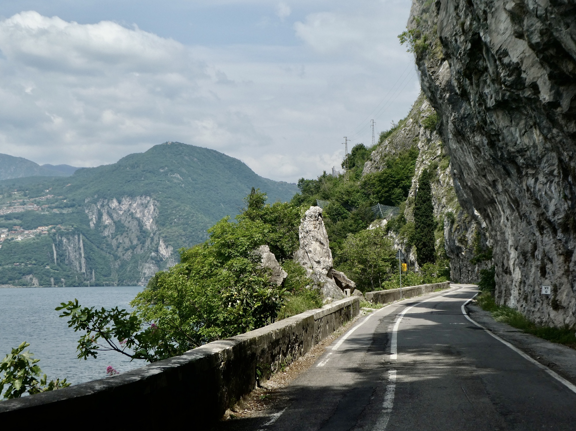 Lake Iseo is a fine scale for a day out on the bike. Not quite twenty miles long north to south, it’s small enough that circling I would be a reasonable day ride - just over 40 miles - which was my initial intention with booking two nights here. The longer I stared at the map though, the less sure I was about that idea. The west side of the lake is severely cramped by cliffs that rise dramatically straight up from the water, and for a fair part of the way there’s nowhere else but the SS road, which even on a weekday morning seems like it could be too busy and cramped to be enjoyable.