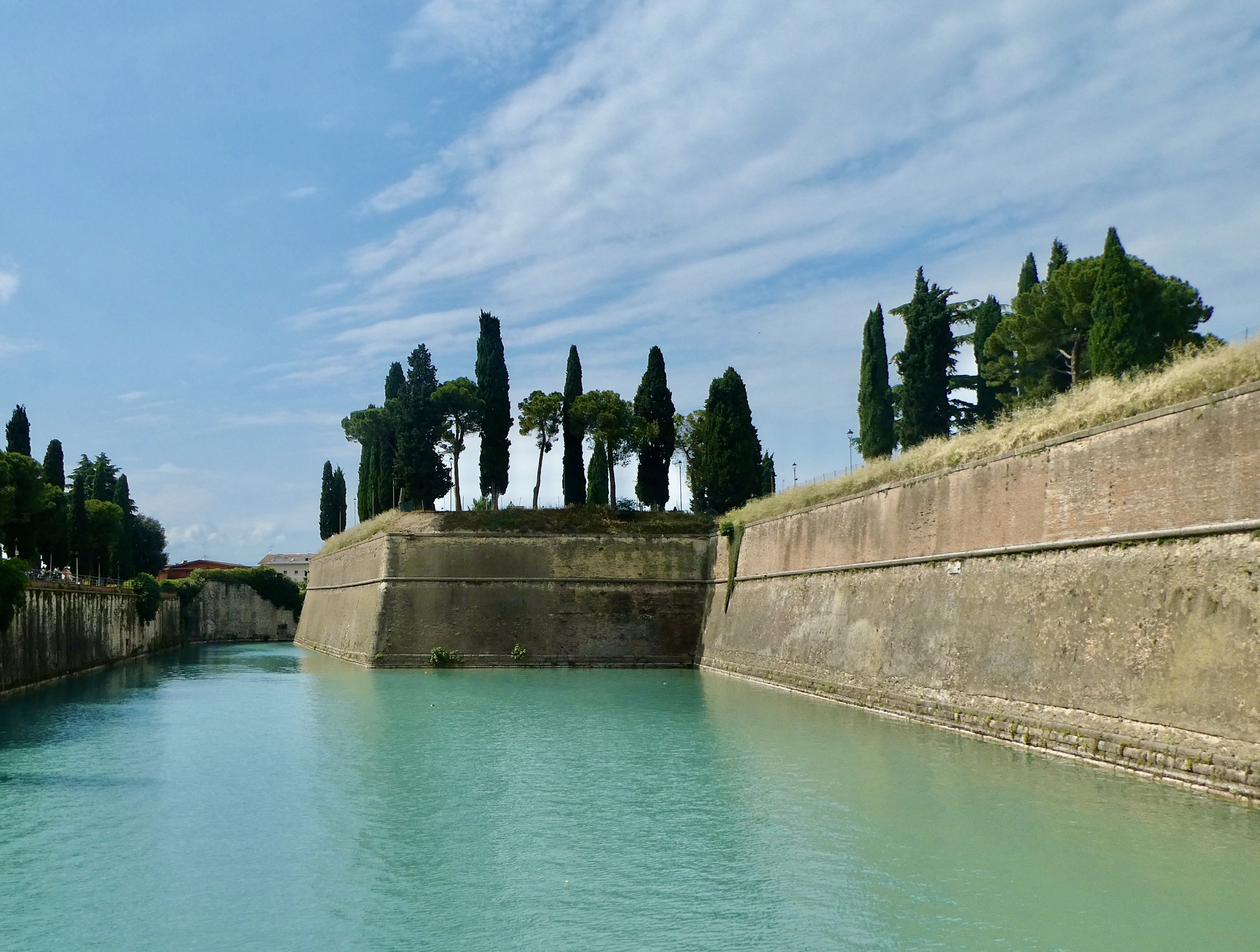 For this afternoon though, we’re content to just relax around the room for a couple of hours until heading out for a look around town, braving the intense holiday crowds and the surprisingly hot afternoon. Peschiera is fascinating place, surrounded by fortress walls and built on three small islets on the Mincio where it drains the lake. Today though it’s a madhouse, which definitely detracts from the experience. It’s probably the worst possible time to be here. We enjoy a walk along the waterfront and its walls and find a bit of seclusion here and there, but after about an hour we’ve had enough and are ready to return to our room until dinner.