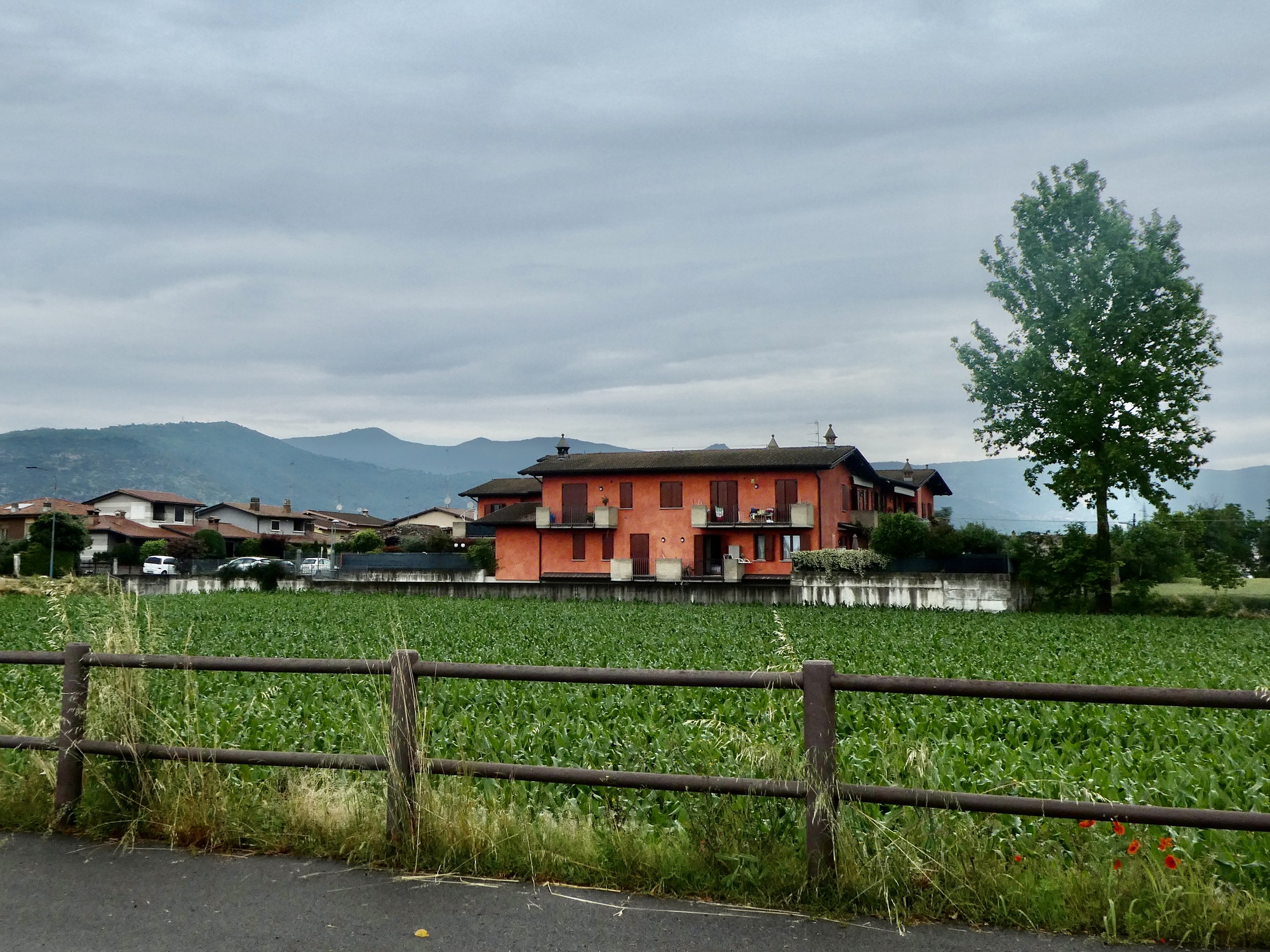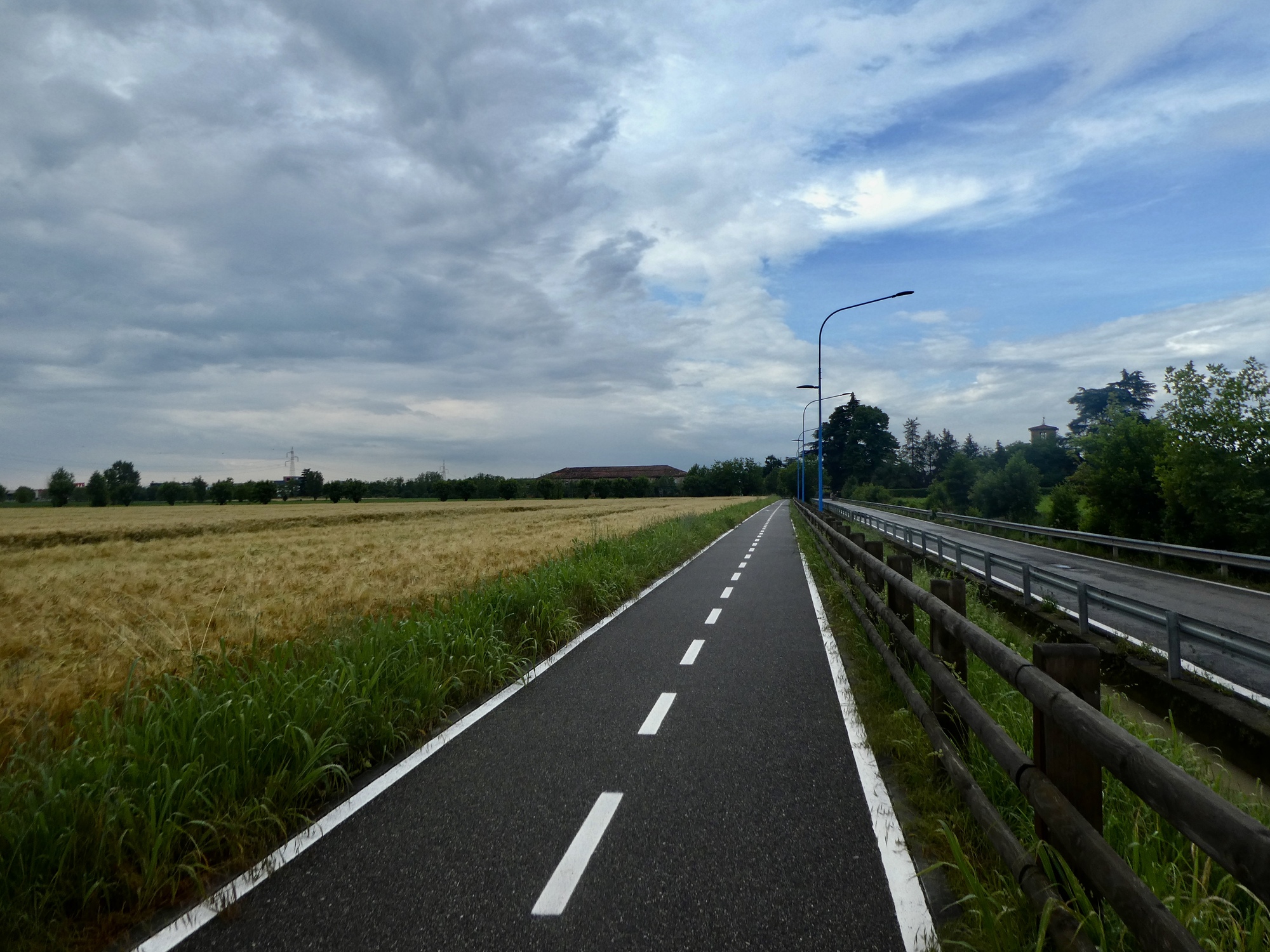 The first half of today’s short, easy ride goes reasonably quickly. We don’t stop much, keeping focused on the goal of arriving in Peschiera by noon and hopefully staying dry. The second half is much slower though, and more ‘interesting’ as our route is considerably more varied and textured. Not only does it slow us down significantly, but for a brief period the sky darkens ahead, a few sprinkles precipitate out of it, and we’re wondering if we’ll need to be seeking shelter soon.