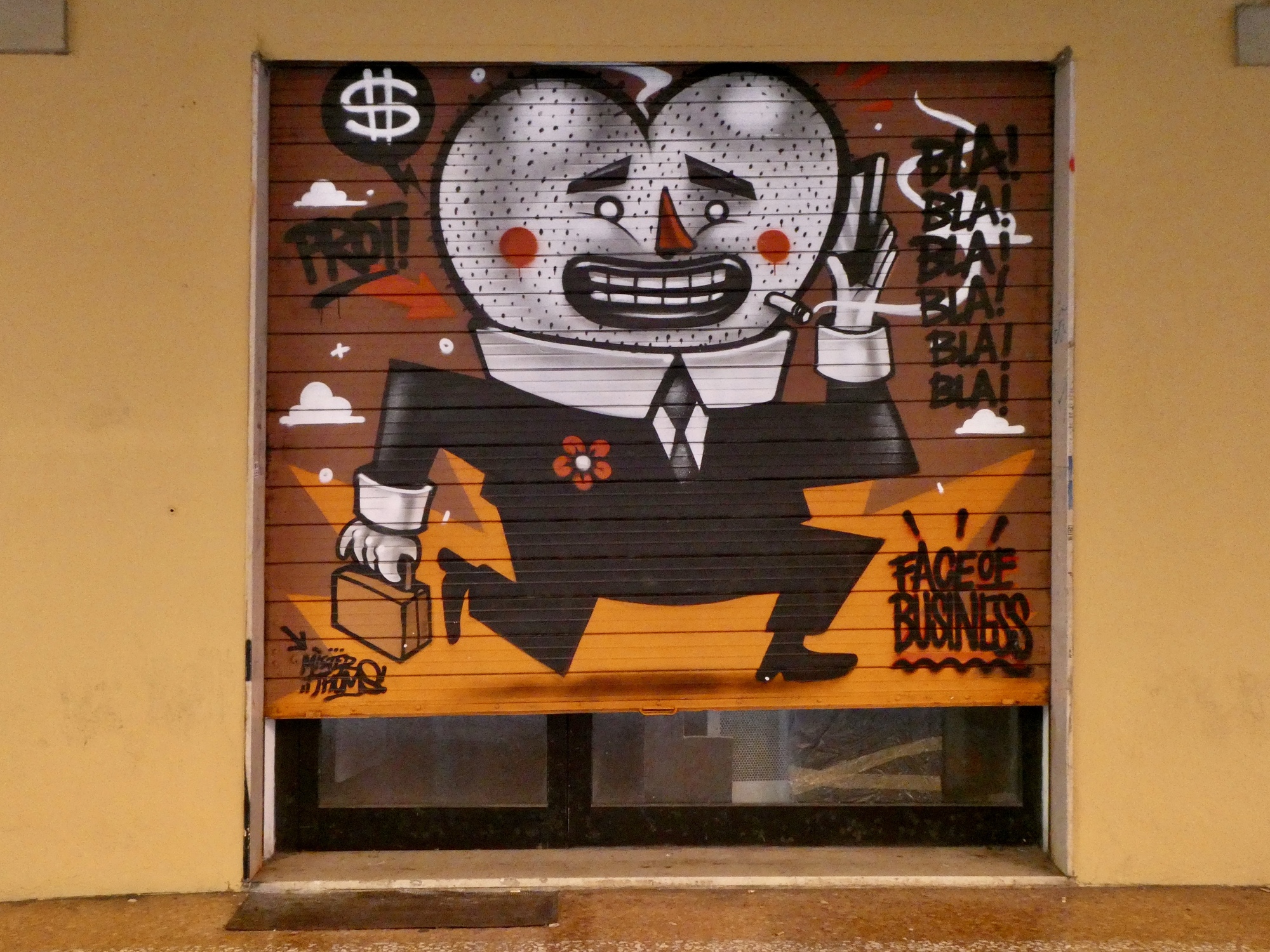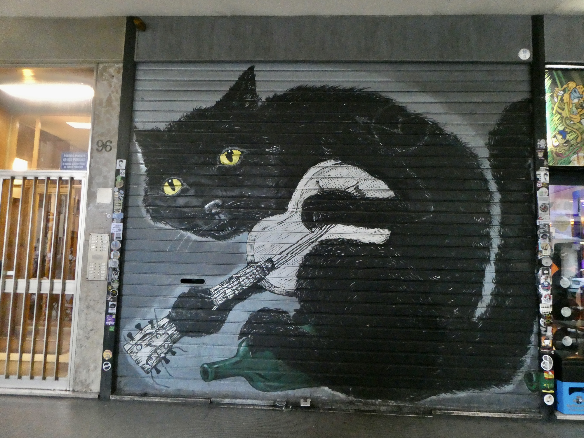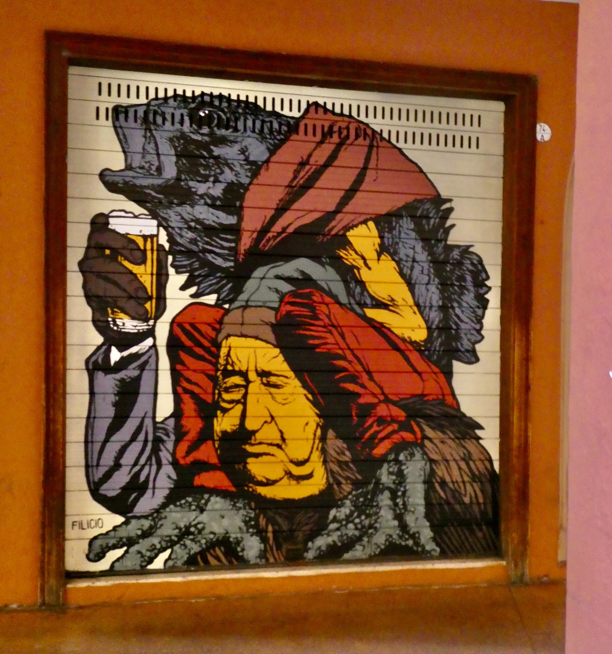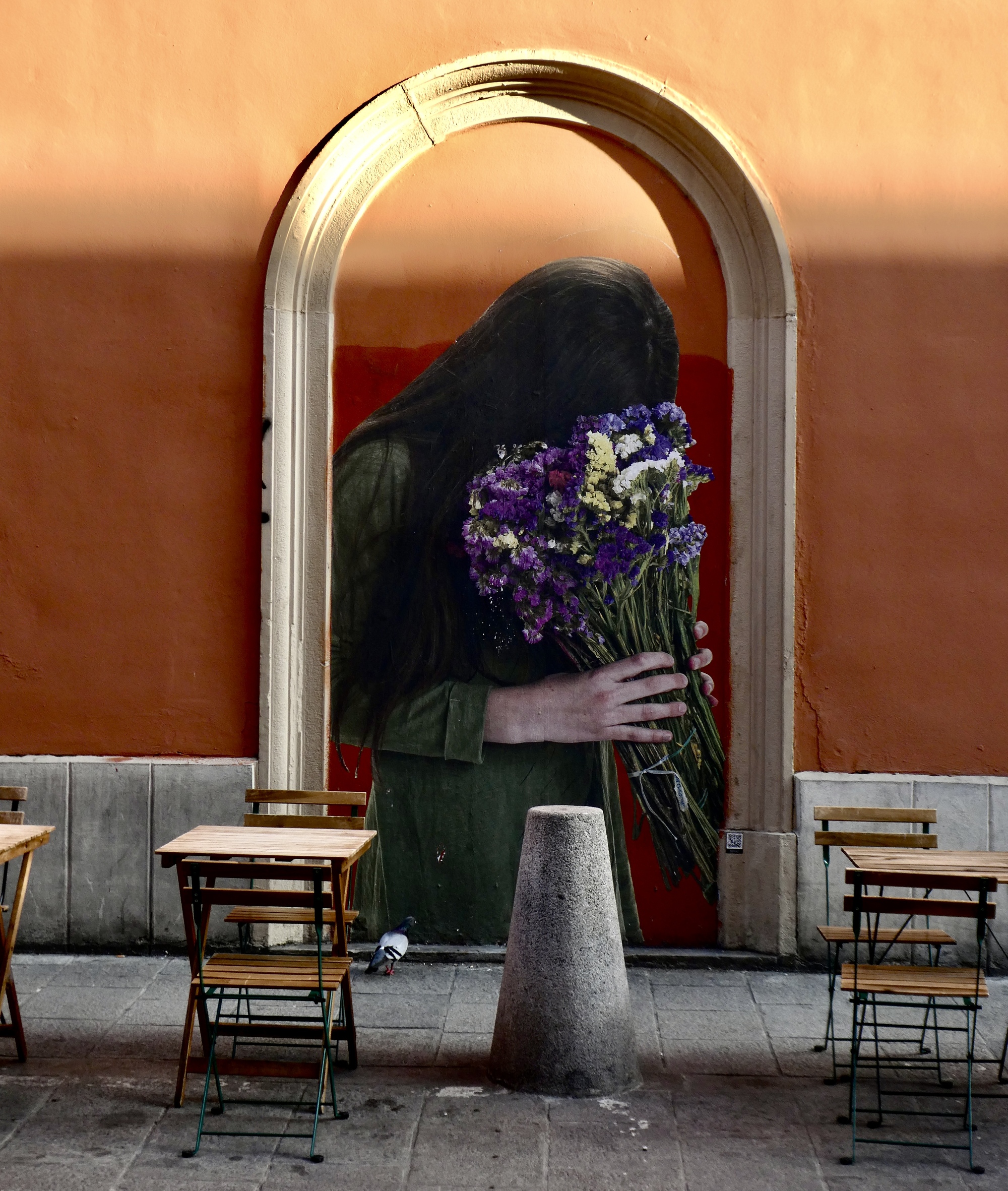 We walk the length of the street, stopping for one mural after another and looking for a candidate restaurant for tomorrow’s main meal before doubling back to Osteria Alla Due Porte to claim our outside table where we enjoy our meal and the adjacent parade.