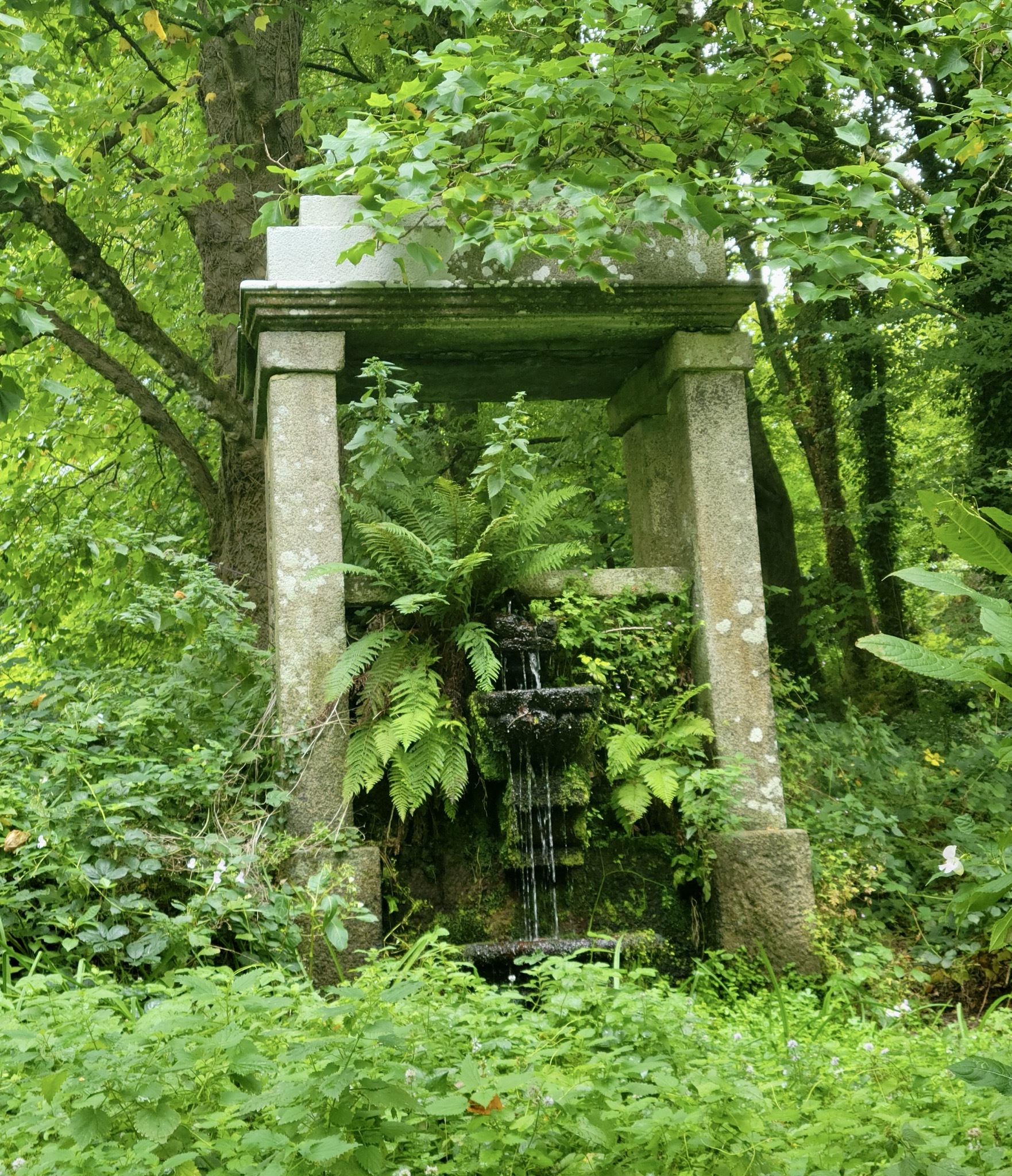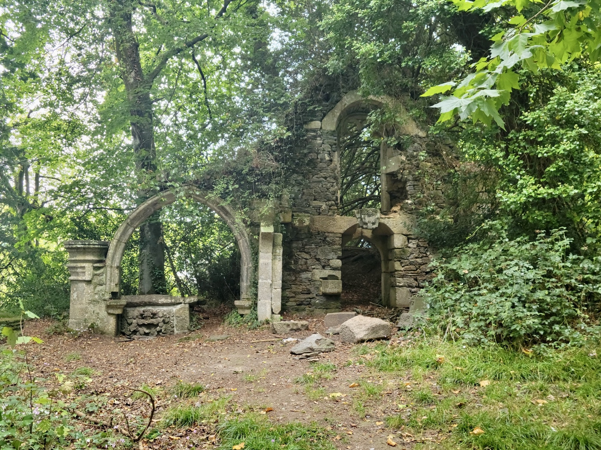 Just off the forest trail, I come to the grounds of the Château de Keranroux. The chateau is closed but there is a park surrounding it with a waterfall, chapel, pond, forest, dovecote, wash house and ruins of a chapel. It was amazing! Below are some photos of the area.