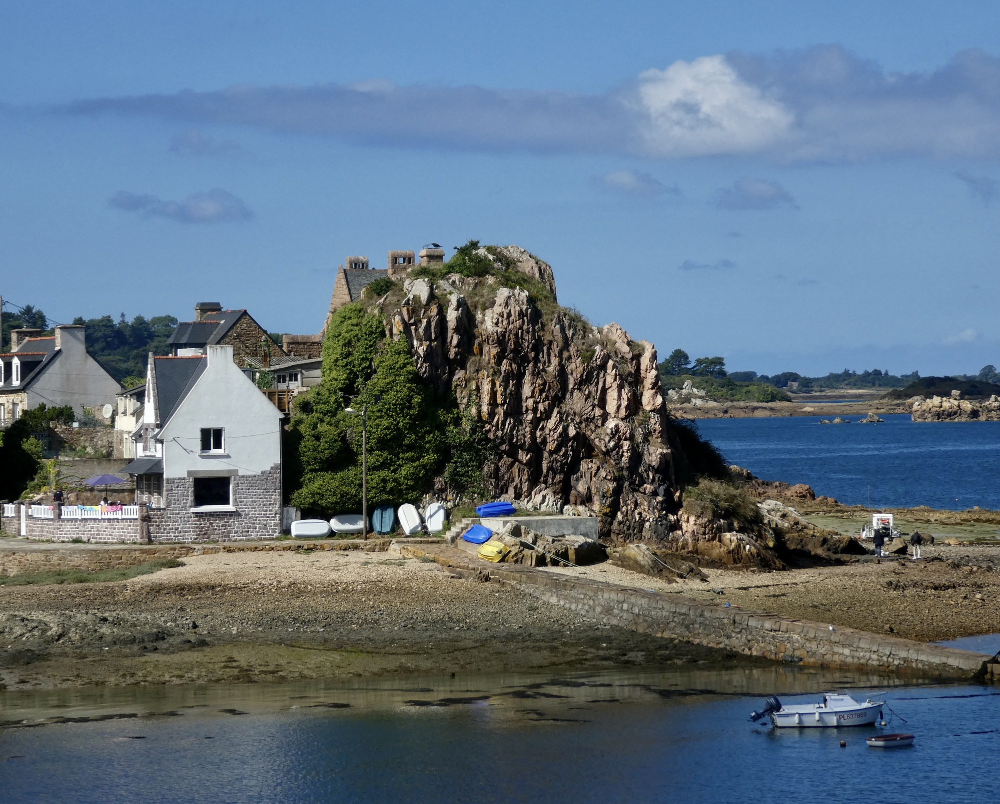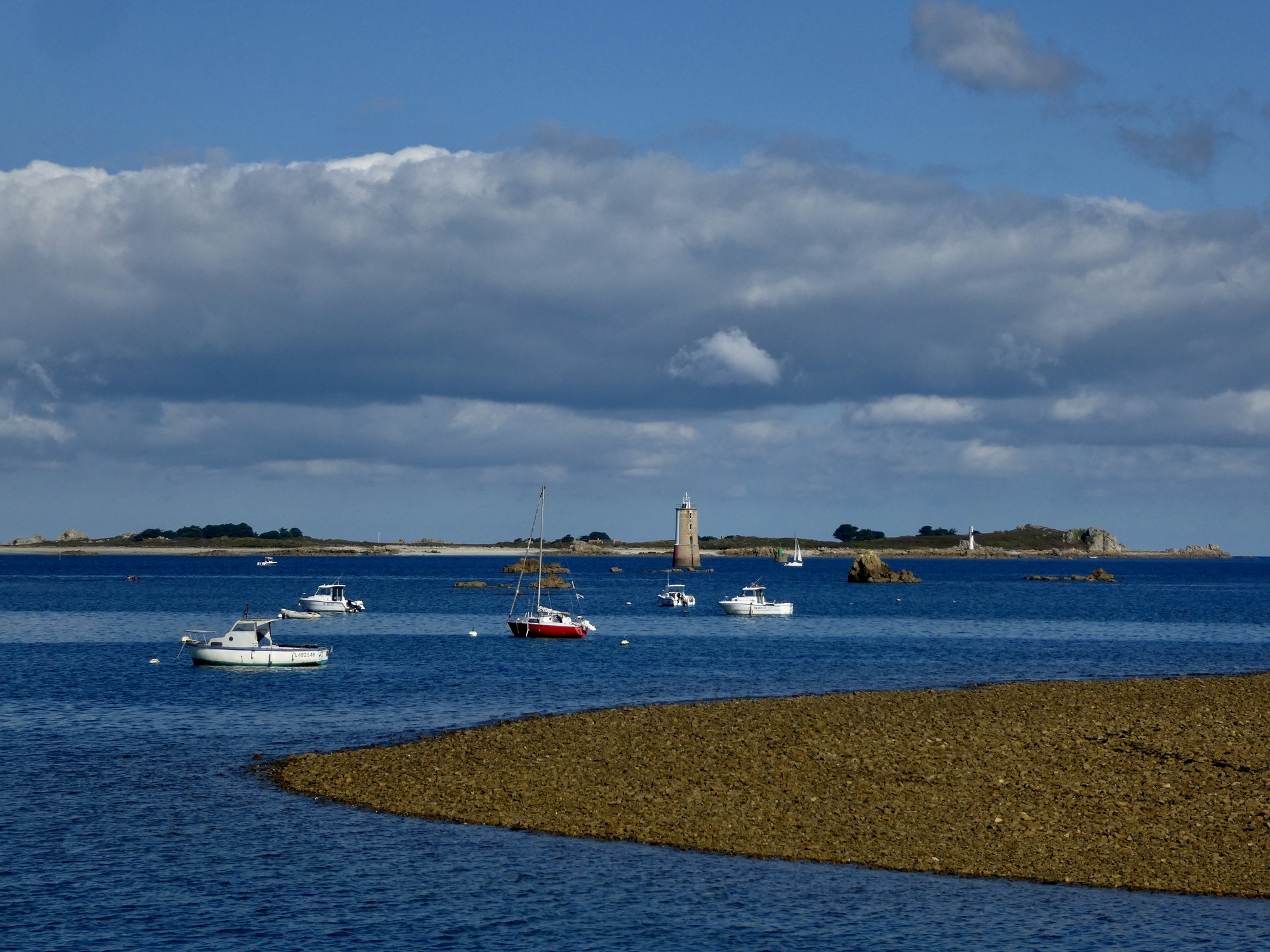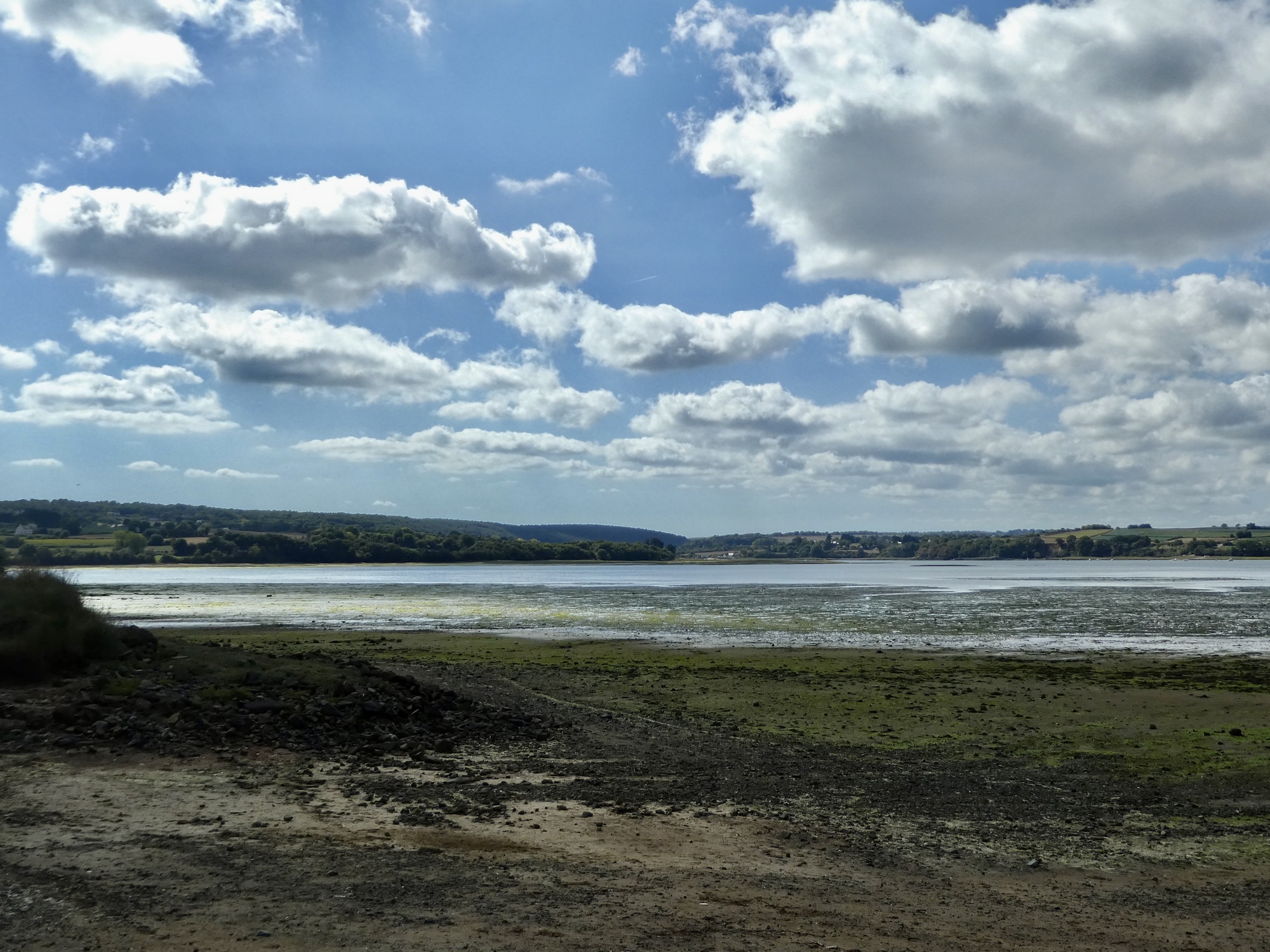 On the beach at Port-Beni, at the mouth of the Jaudy inlet. Across the water is the route we followed biking to Tréguier two days ago.