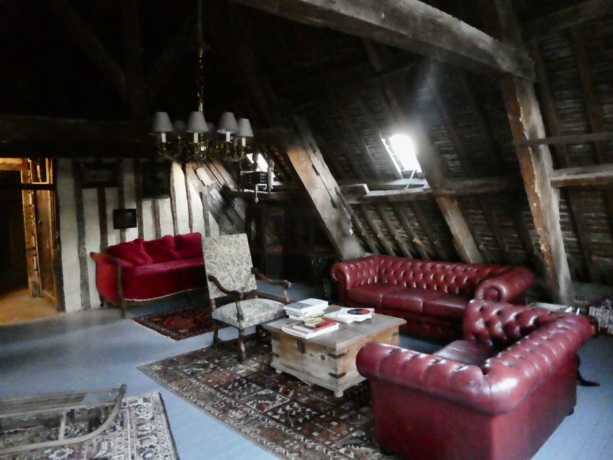 Before moving on to today’s short ride, here’s a last plug for B&B du Cloitre, a place filled with character. We enjoyed everything about the place, including walking up to the semifinished attic for a cup of instant coffee and a change of scene from our room while we waited for breakfast. The structure is a large half-timbered house from I think the 15th century, and you can really see it best in the attic where the slats, lath and plaster still show through in spots.