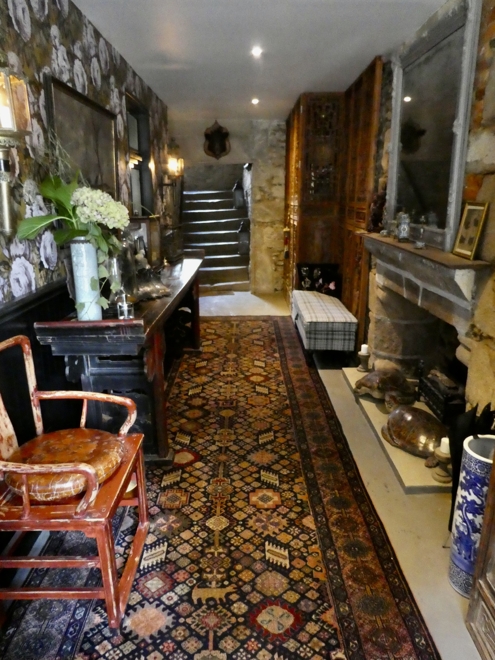 The entrance hall to B&B du Cloitre. Note the two sea turtles on the floor on the right, and the uneven stone staircase at the end, its steps irregular and worn from centuries of use.