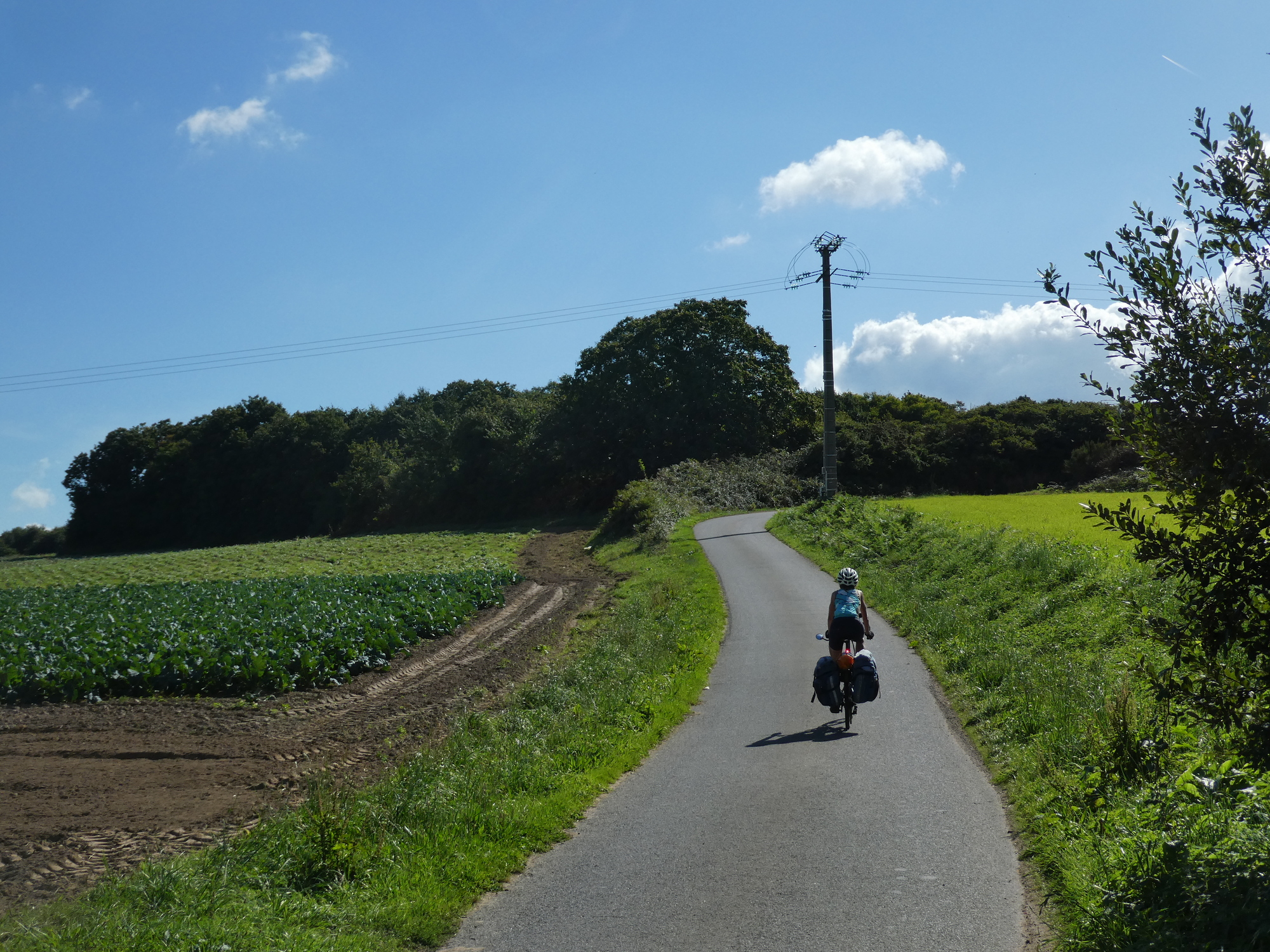 And up again. We’re climbing and falling for much of the day, but other than that first pitch out of Tréguier its nothing like England. Slopes are reasonably well behaved, climbs are short. Which isn’t to say they don’t wear on the legs by the end of the day.