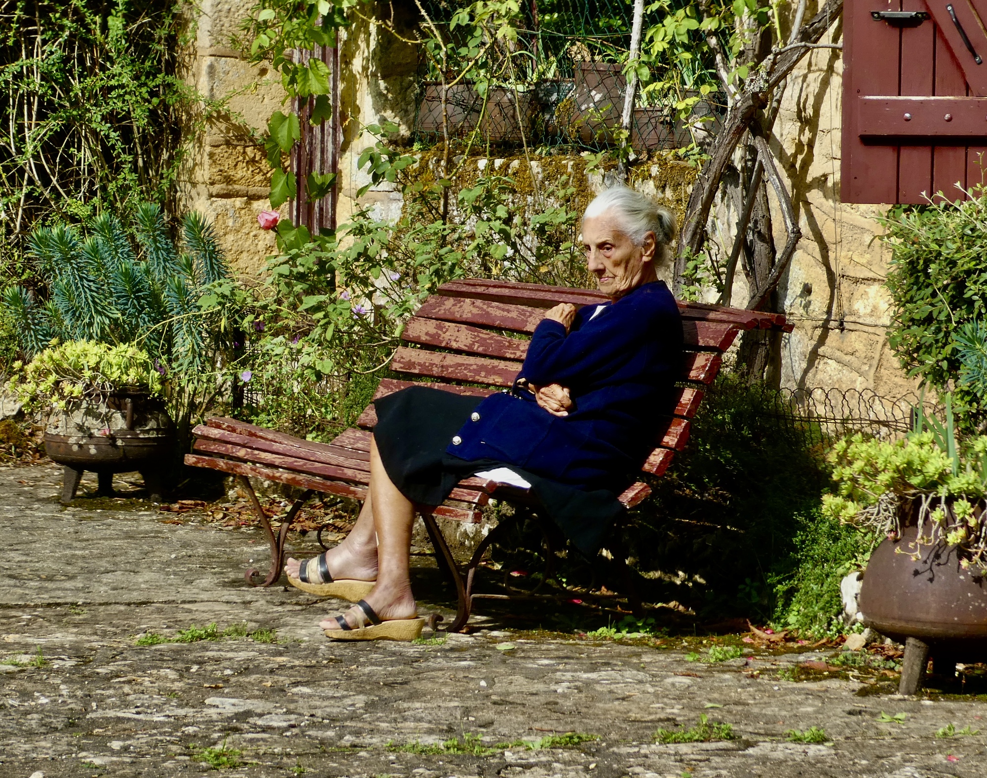 Rachael doesn’t make it to La Madeleine though, because partway there she comes to a pair of snarling, scary dogs. They’re constrained, but barely, by a young girl doing her best to hold them back with their taut leashes. Rachael can’t think of any good reason to tempt fate when there are so many other places she could walk instead, so she heads off inland and haphazardly makes her way back to the room. By the time she’s done she’ll put in 14 miles, so it’s just as well she didn’t have me holding her back today.