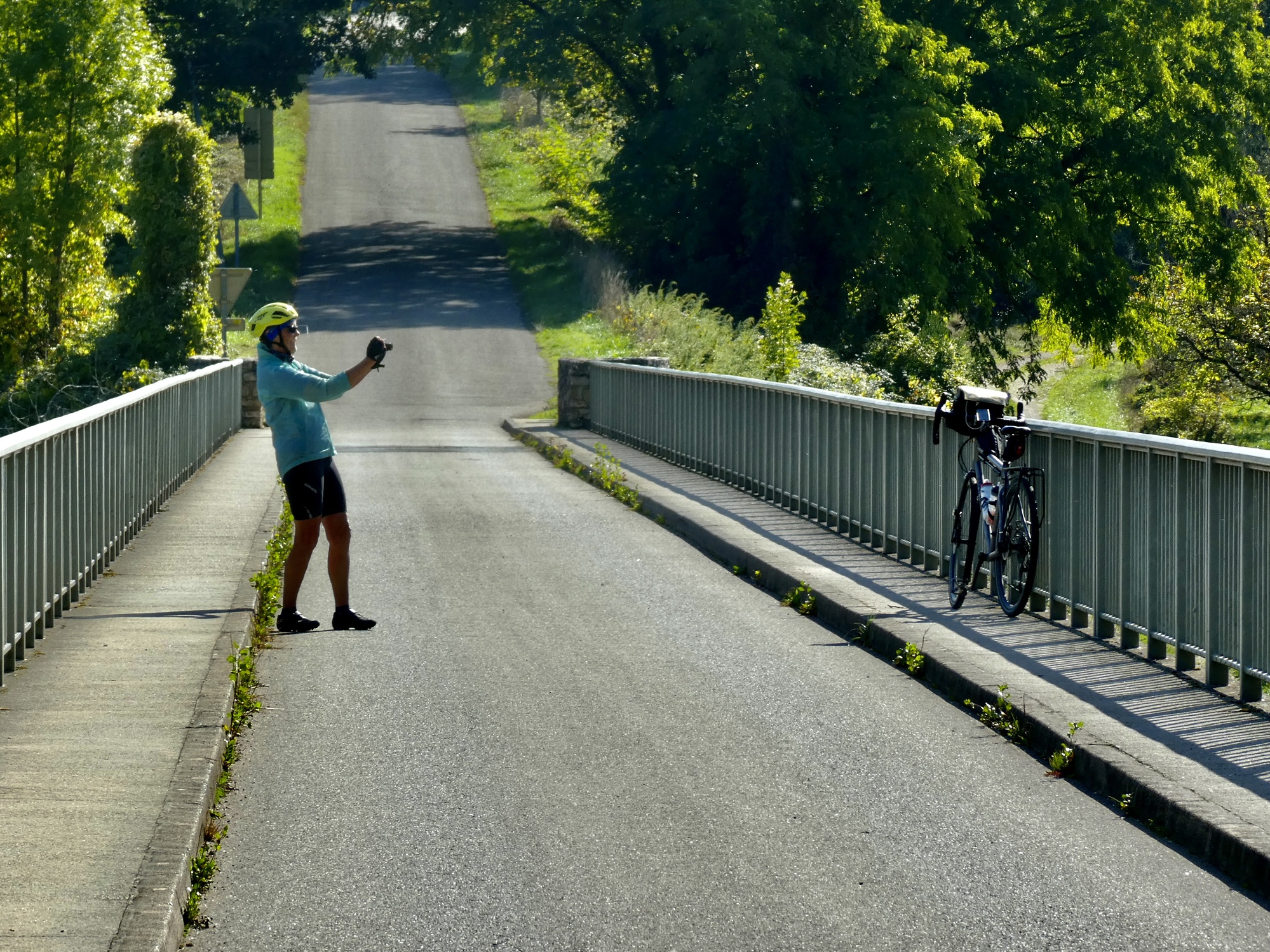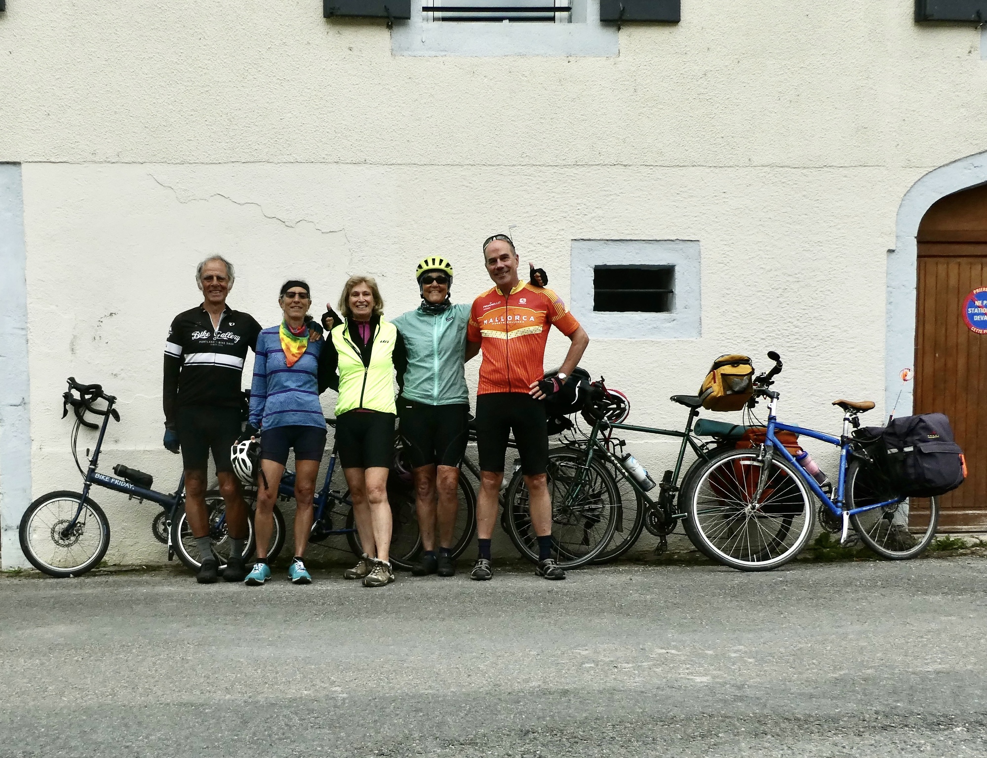 The five of us assemble with our bikes at 10:30, stage a pair of group photos, and then we’re off as a group, Susan and ourselves riding with them for about a mile before turning back - just far enough for Rachael to capture some footage for the group video.