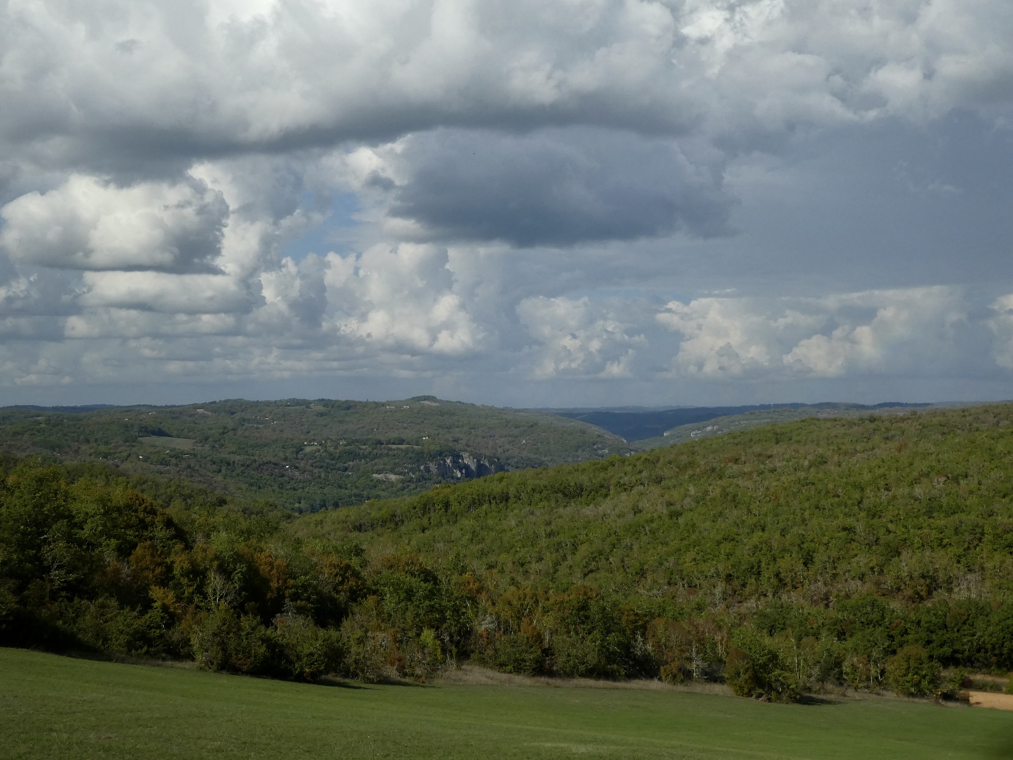 The ride we’ve mapped out is a loop. On the way back we climbed up well above the river into the Causse, where you might expect we’d get some fine views. We didn’t, but the riding was very nice.