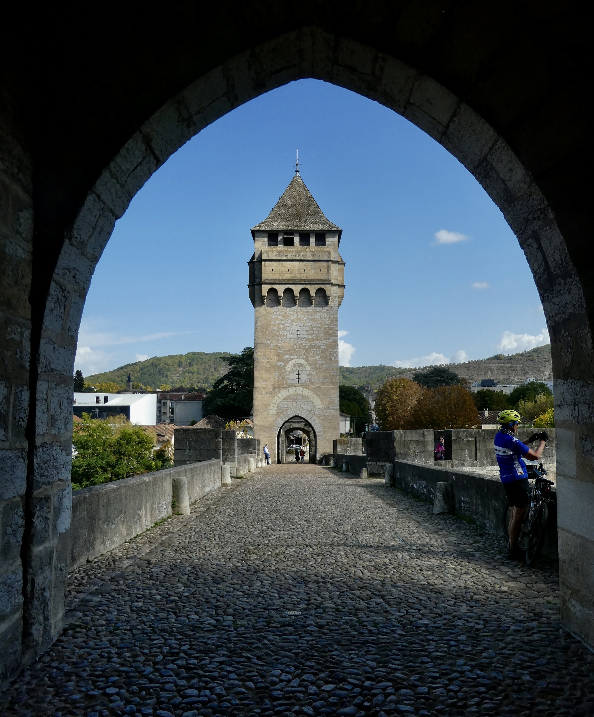We came to Cahors mostly because it was a reasonable destination in the right direction. That is, we weren’t actually here to see the city itself, but just to use it as the point to turn back. While we’re here though it would be remiss if we didn’t at least check in to view its landmark bridge, Pont Valentre. You’ve already seen it recently - Steve and Ann were here recently - but we’ll throw our own photos on the digital heap also.