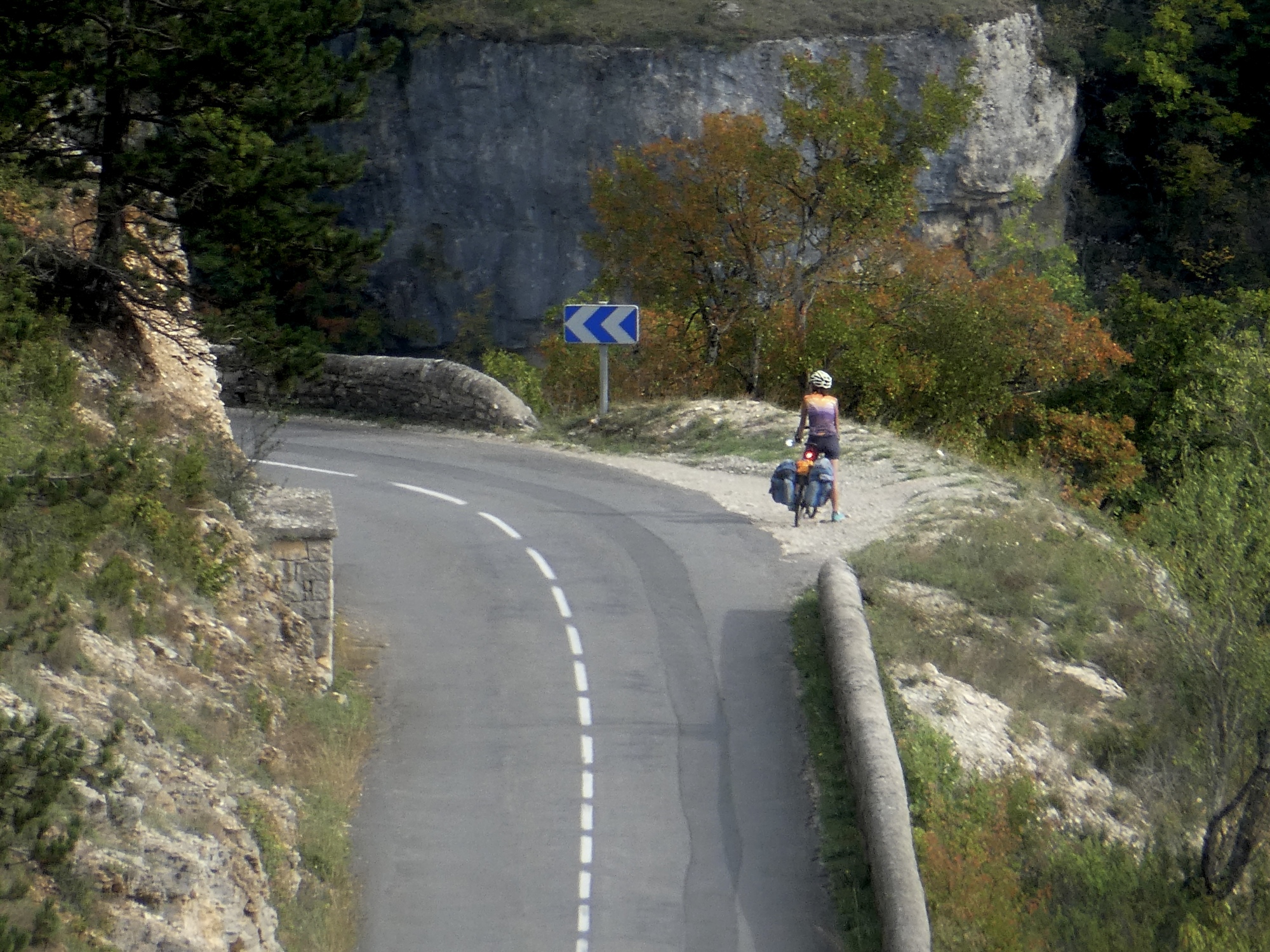 France has so many spectacular gorges. They’re all remarkable when I think back on the many we’ve biked through by now but the Tarn is really in a class of its own, up at the top with the incredible Grand Canyon of the Verdun. On one level I remember how astonishing it seemed when we biked through it 25 years ago, but then again I really don’t. It takes our breath away when we round the bend and stare down into this immense chasm, really to vast and sprawling to fully take in. We both stop, stunned for awhile, and then begin the descent - a comfortable 1,300’ in the next eight miles, but one that goes slowly because around every other bend I have to stop and look again.