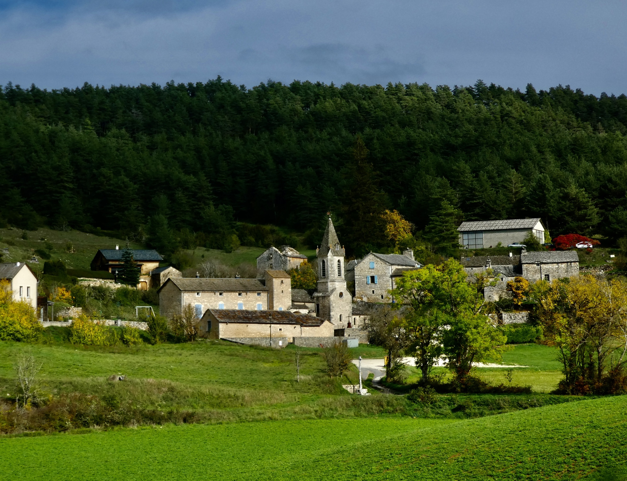 Leaving Saint-Geniez, taking the shortcut past the Marie and cloister.