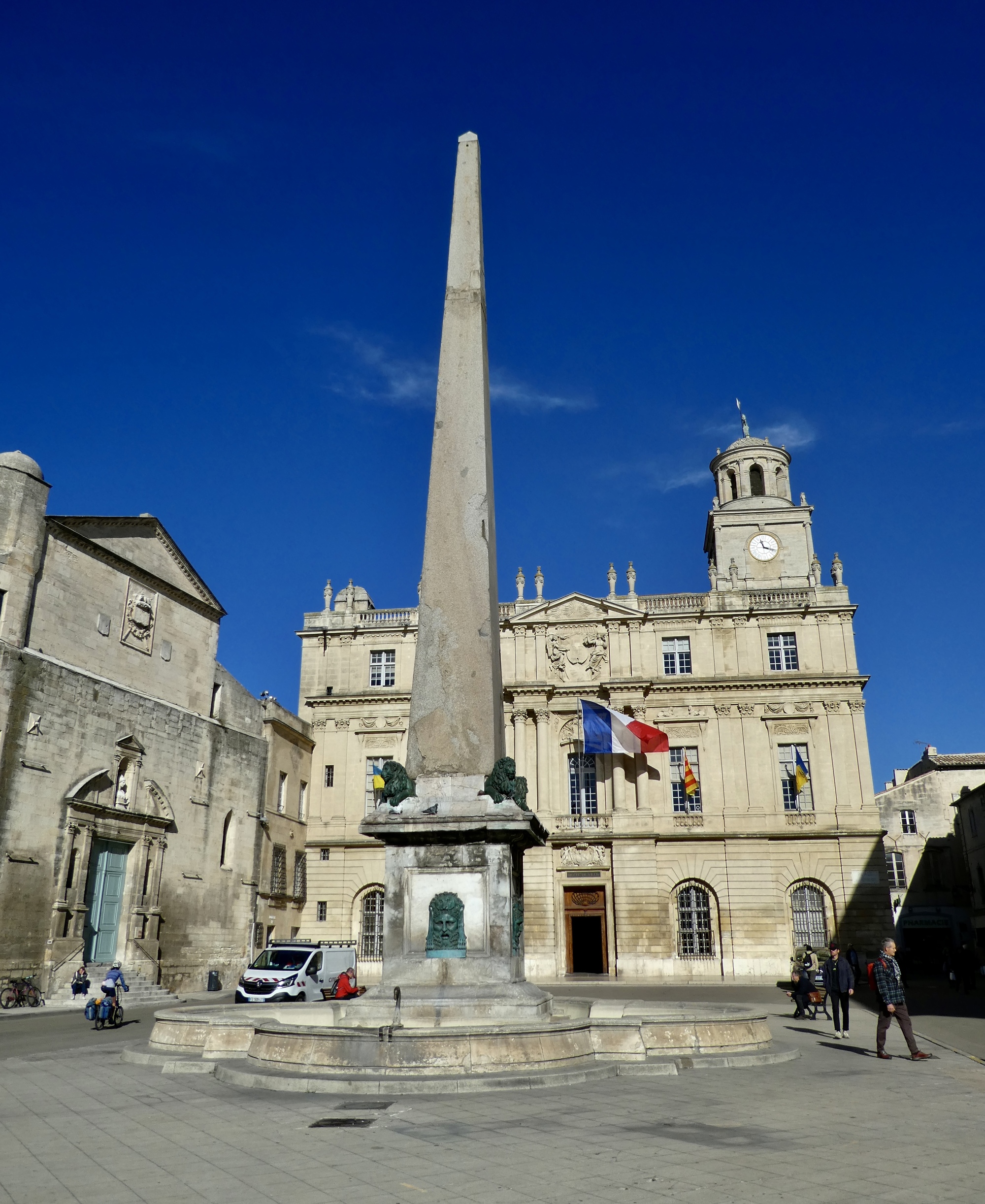 The sky is a crystalline azure this morning as we circle the Place de la République on our way out of town. I was just here yesterday afternoon but it has a much different air under this morning’s sky.