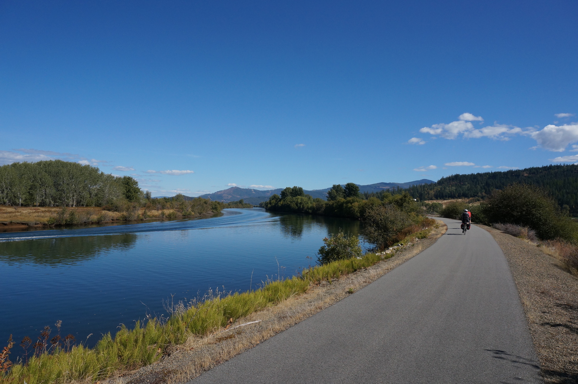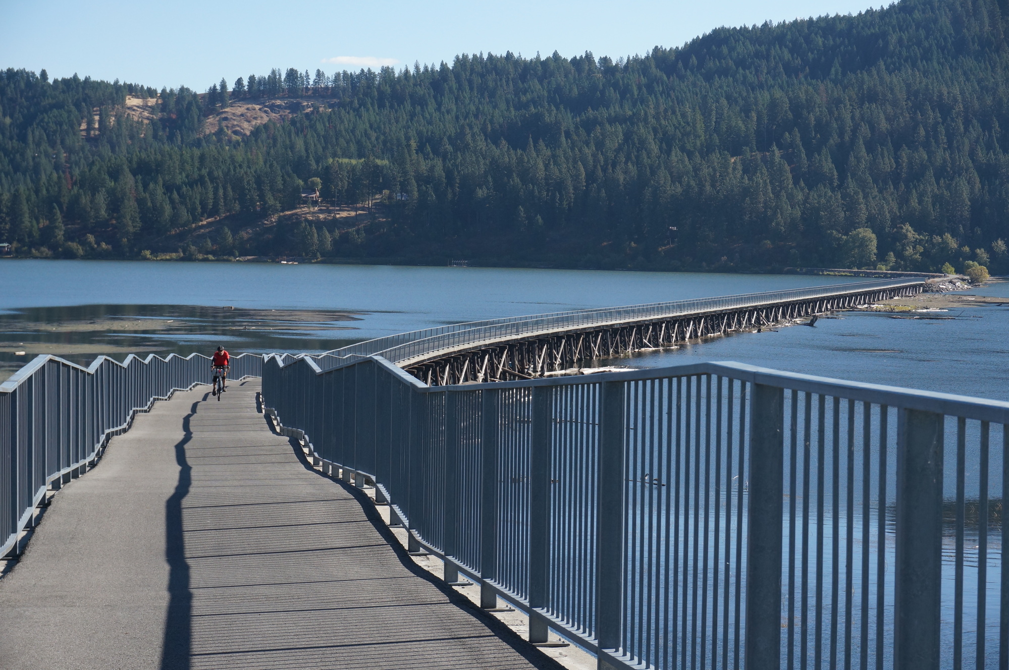 This should have been an easy 39-mile ride to Wallace, but that would mean we would miss the Western portion of the Trail of the Coeur d’Alanes, including the bridge across Lake Coeur d'Alene that is in pretty much every picture you see of the Trail of the Coeur d'Alenes. So, my brother had the bright idea that we would start the day by riding in the wrong direction until we had crossed the lake, and then we would reverse directions and go to Wallace. In theory, this was not a bad plan.