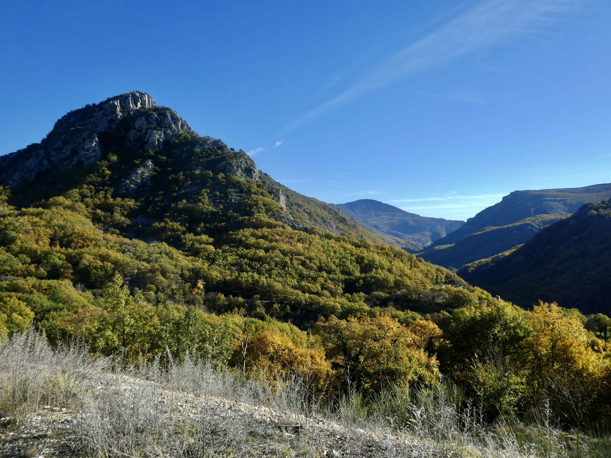 Fantastic. The formation ahead is the Cheiron Massif, topping out at 5,800’. Just on the far side of the crest is a winter ski resort. Views from the top are alleged to be sublime, north to the higher mountains and south to the Riviera. On a clear day, you can see Corsica.