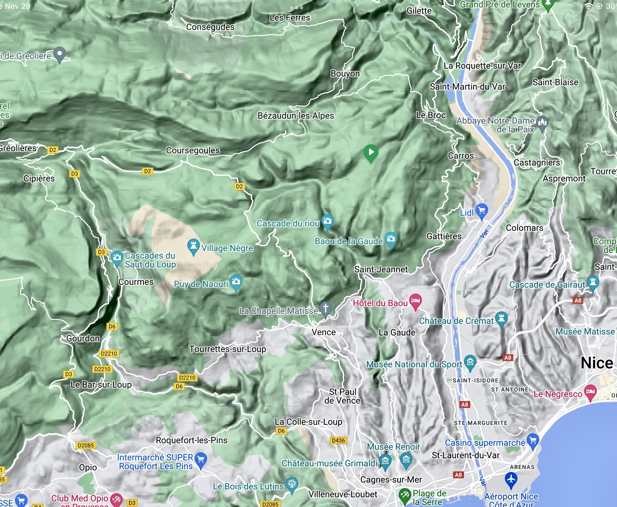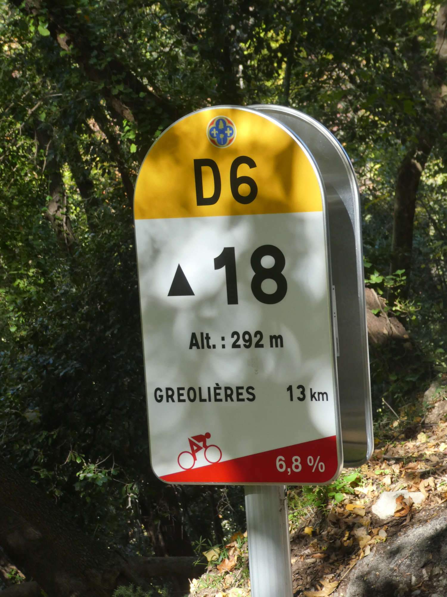 We’re in the mountains! For the rest of our ride uphill we’ll get regular updates on our progress. We’ll continue climbing until just a short ways from Gréolières.