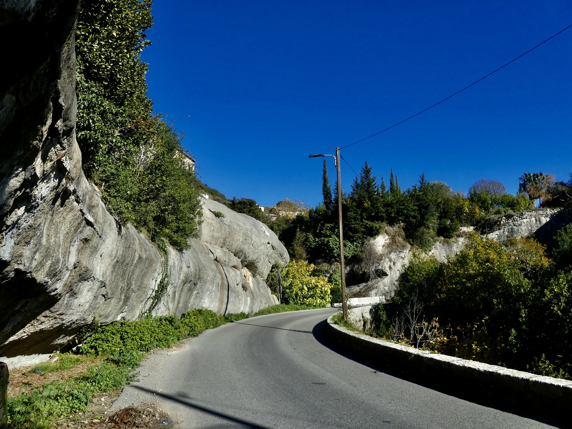 Rounding a hairpin as we drop to and cross the Bouirades, a small stream beneath Tourettes-sur-Loup.