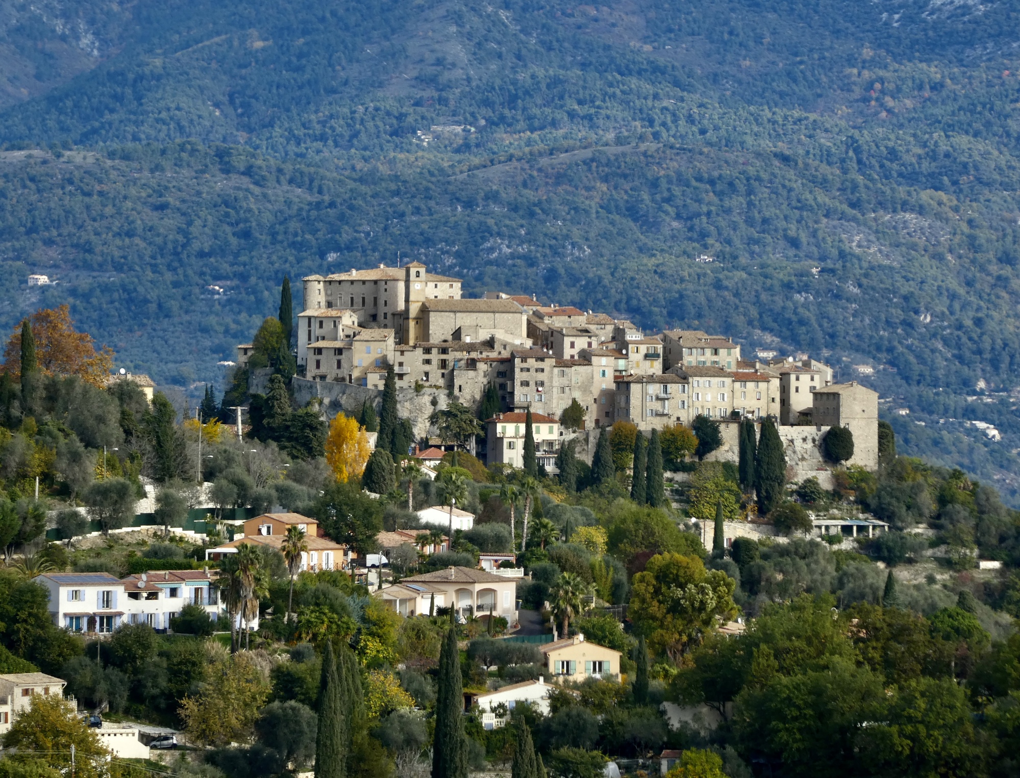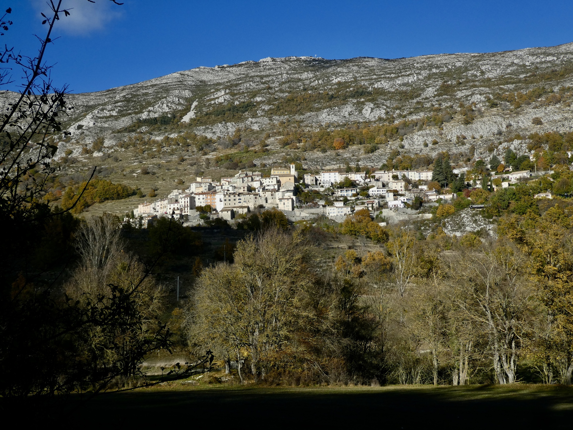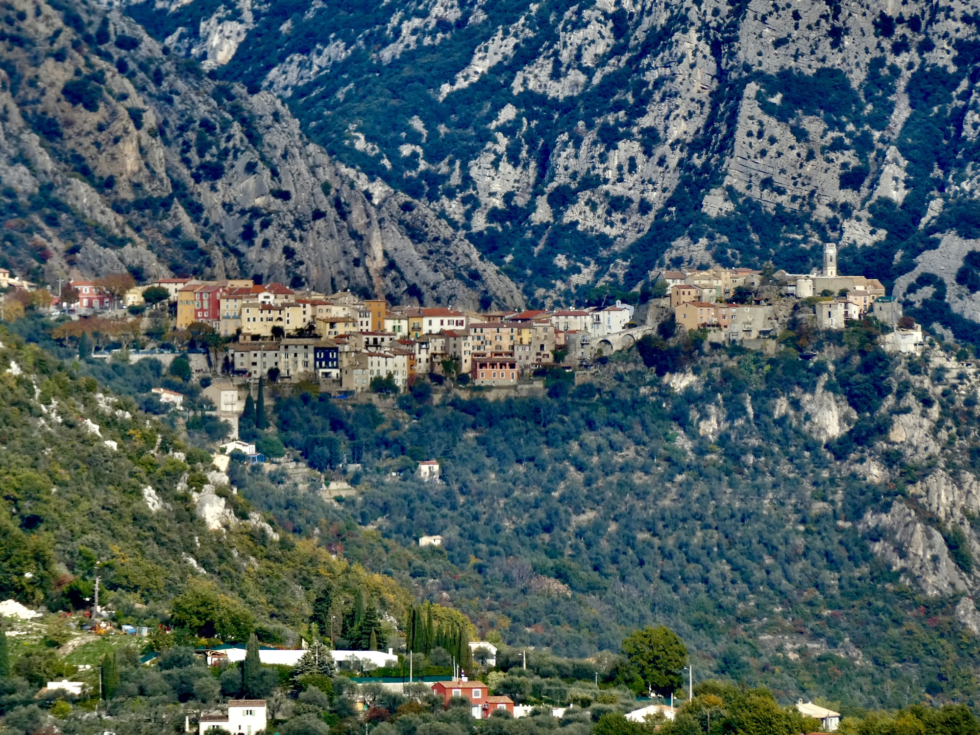 Looking across the Var, we get a different perspective on La Roquette-sur-Var. From here you can’t tell that we’re just seeing the tip of a pencil-shaped village capping its ridge.