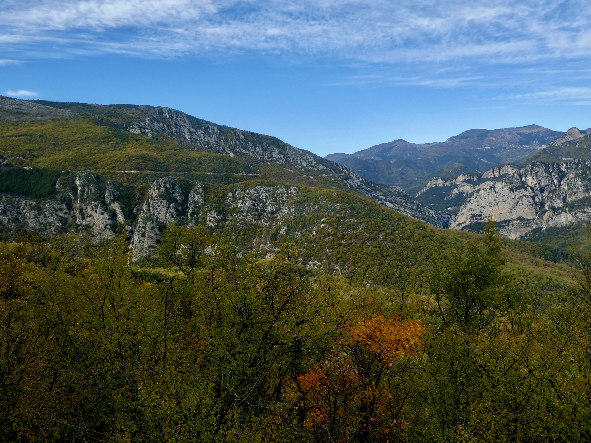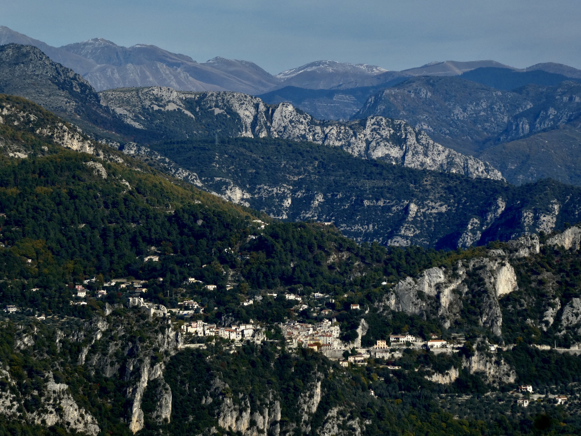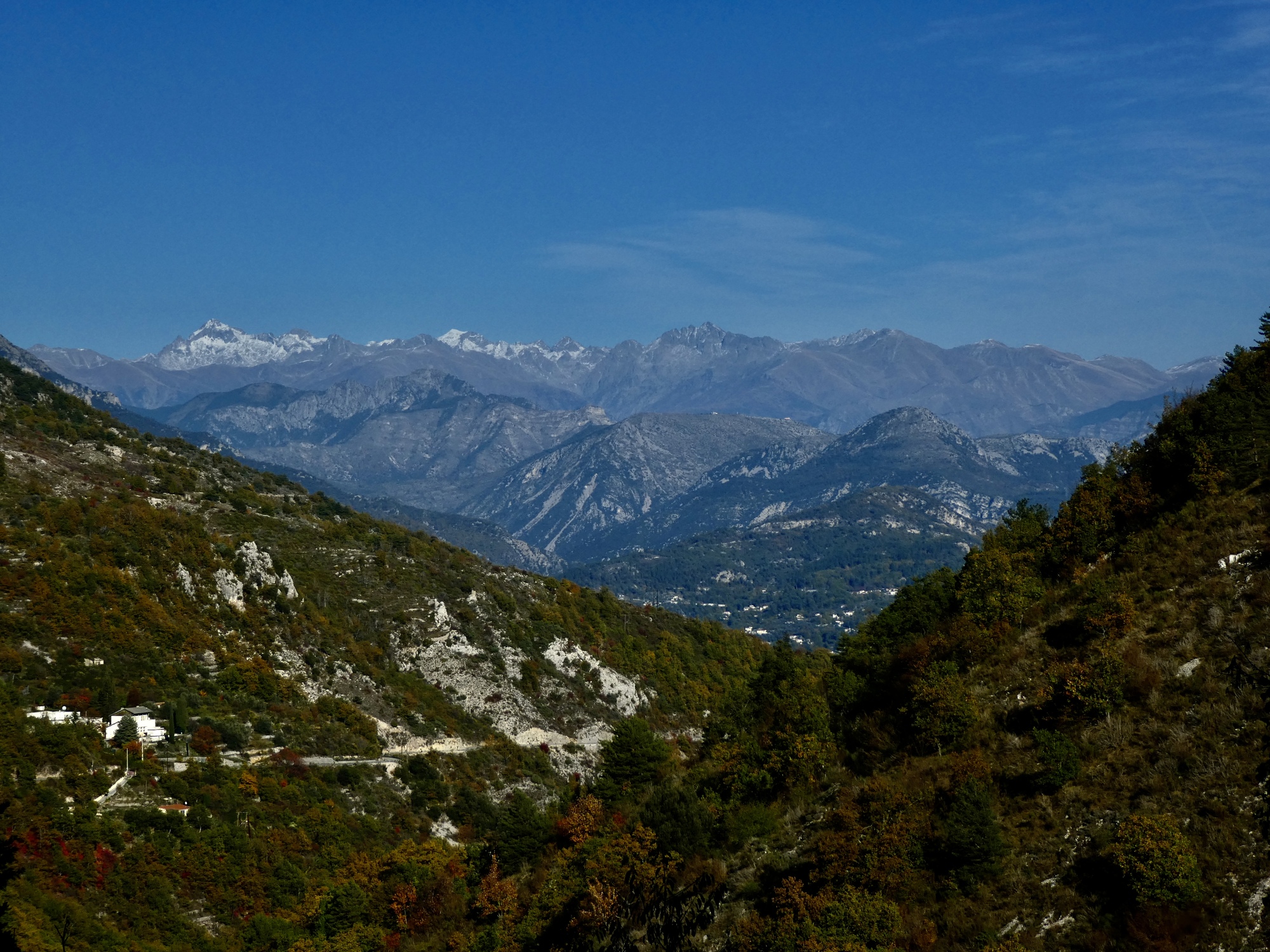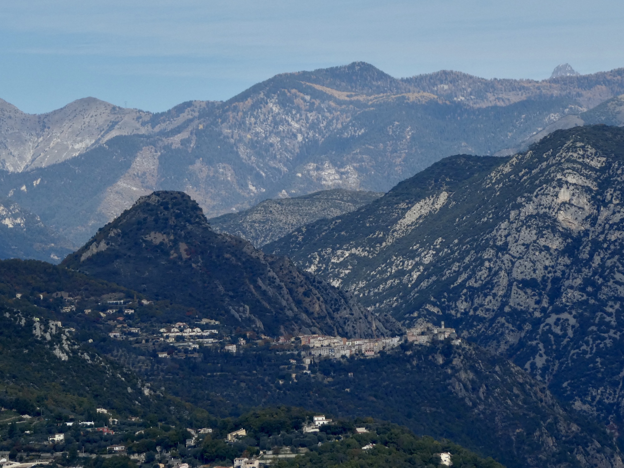 Another view across the Cagne canyon. I recognize that rugged formation, which we see from below by Vence also. There are better views of it from the hike Rachael took today.
