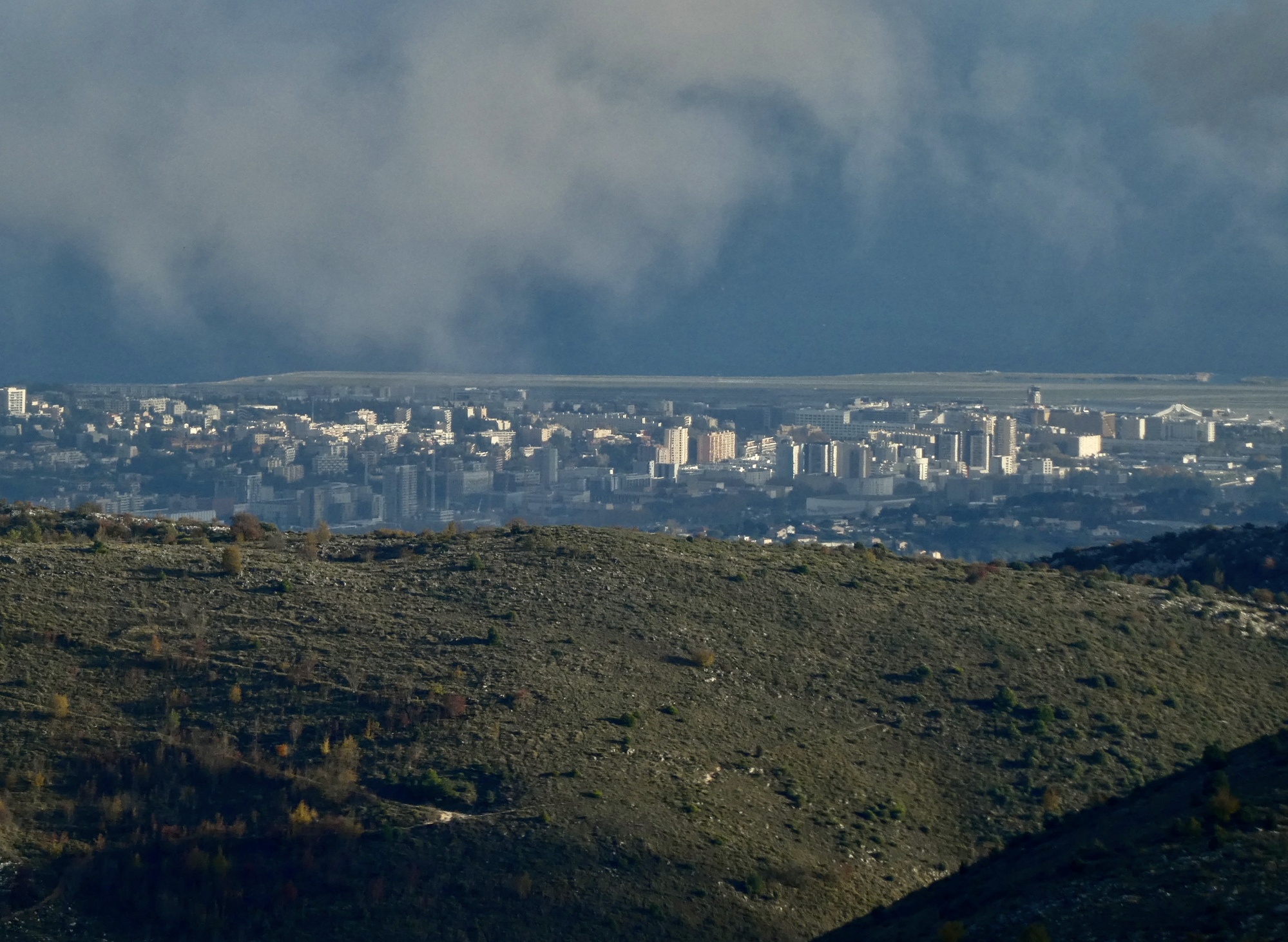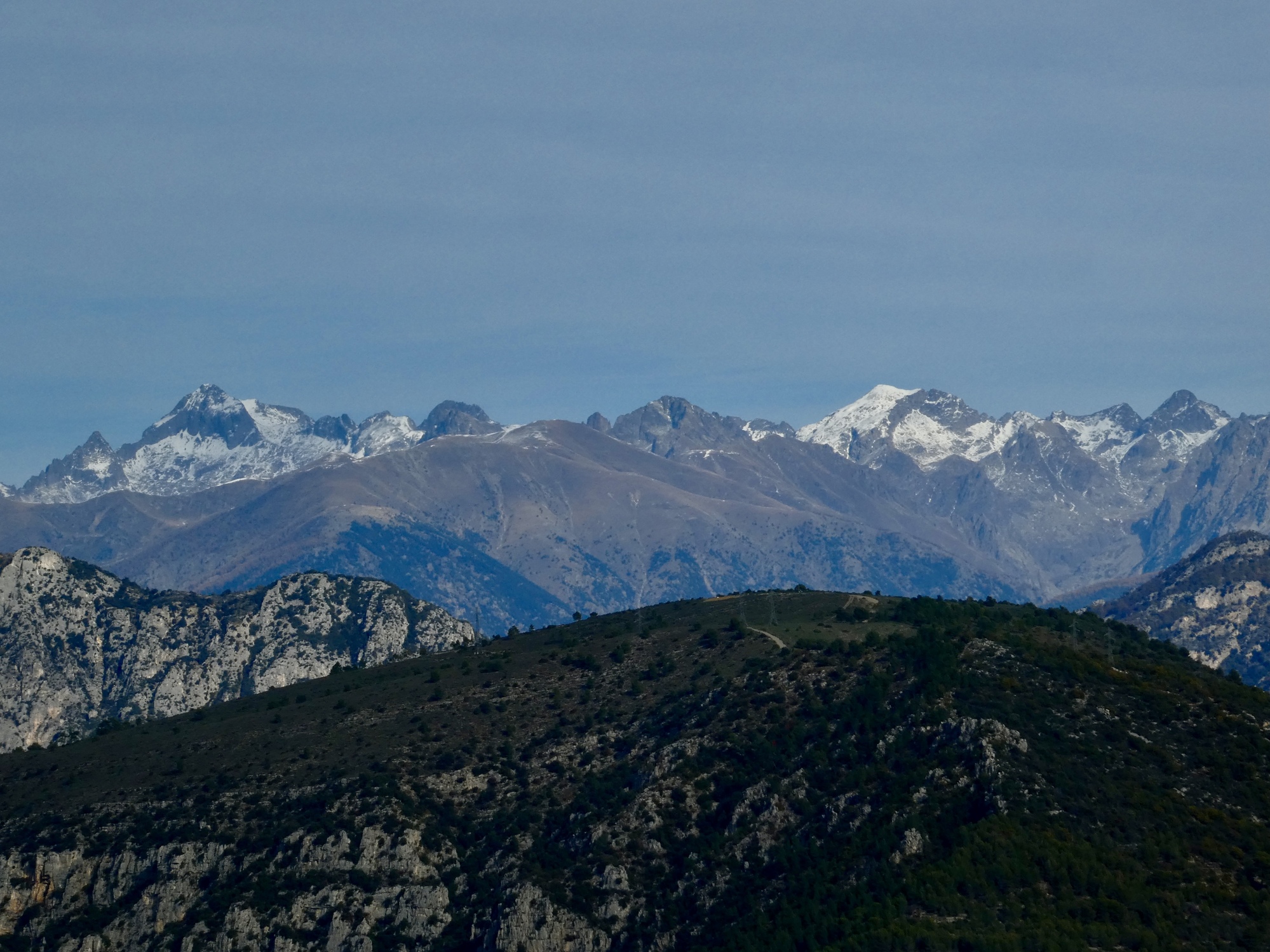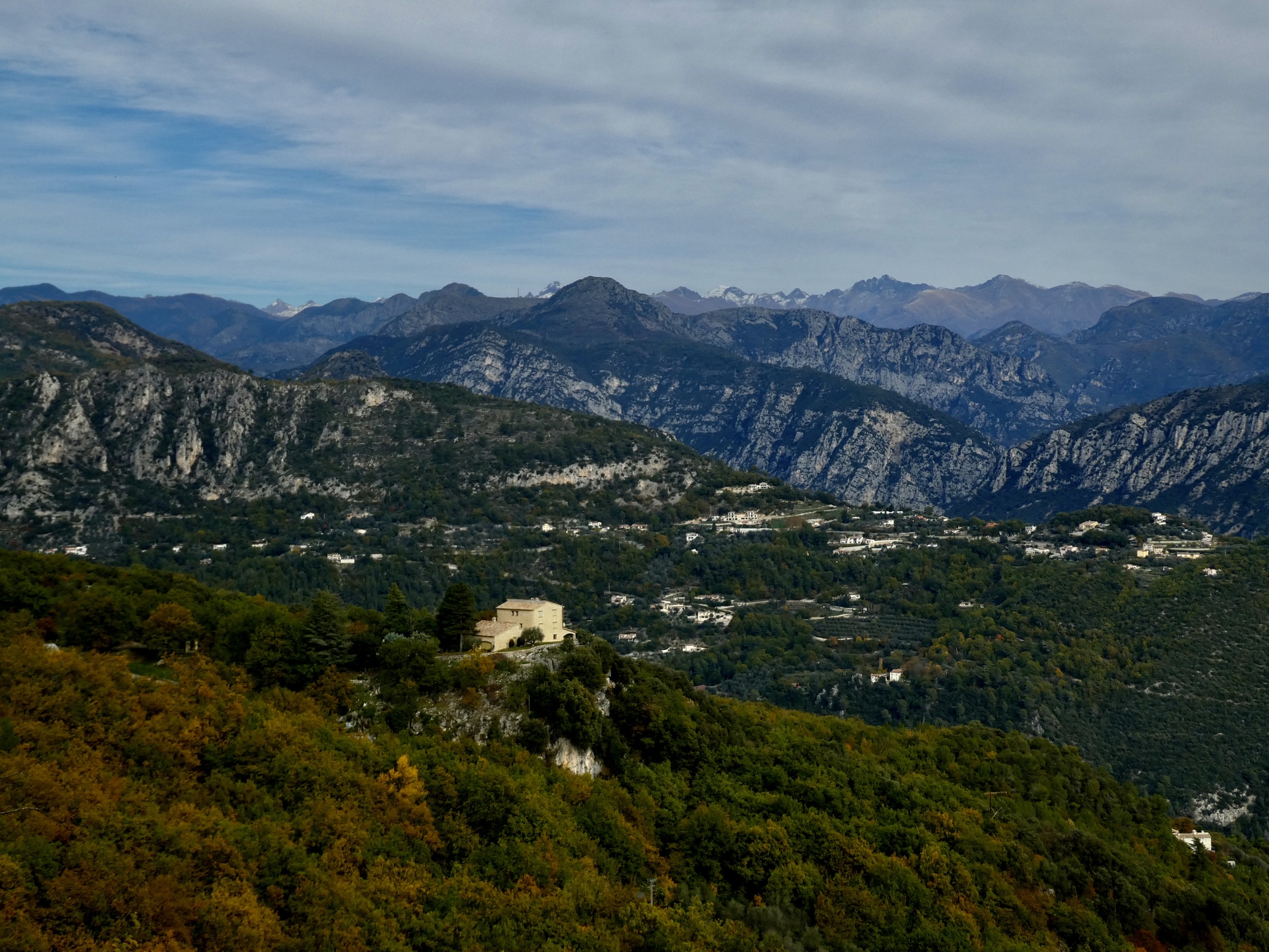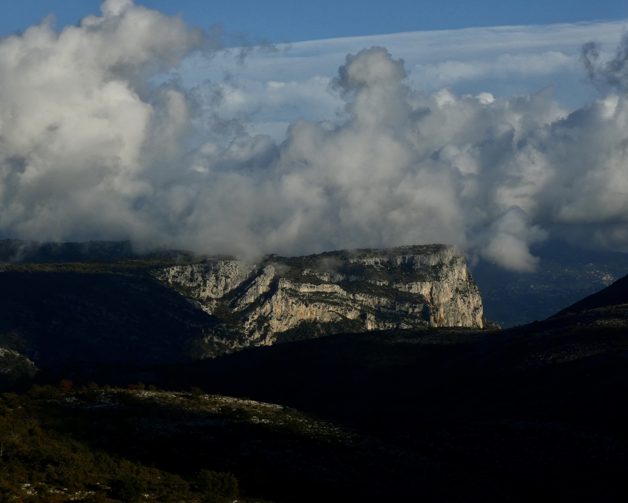 Another view across the Cagne canyon. I recognize that rugged formation, which we see from below by Vence also. There are better views of it from the hike Rachael took today.
