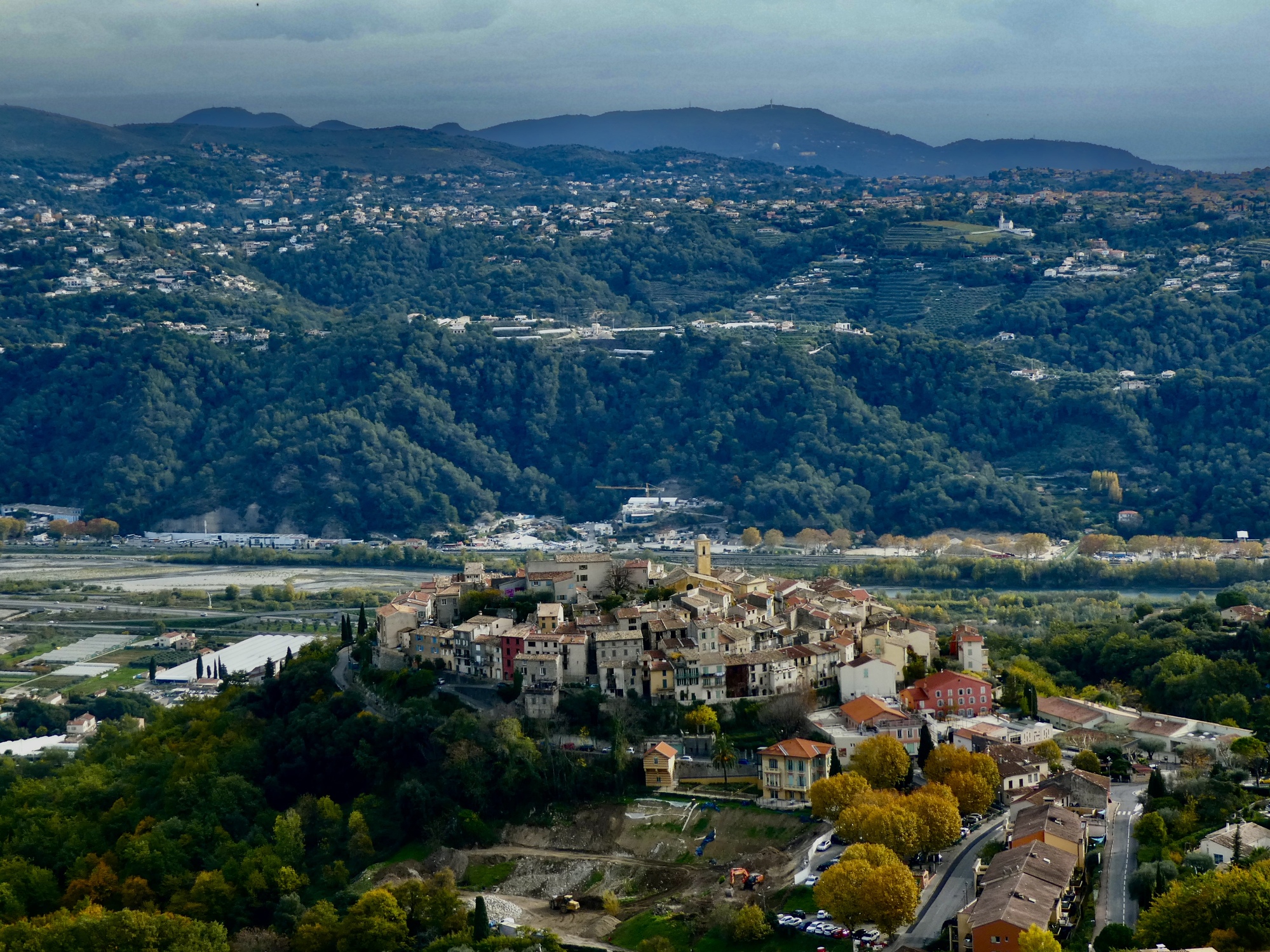 Looking across the Var. On the right is Gattières, one of the villages we admired earlier. It’s even more impressive seen from above.