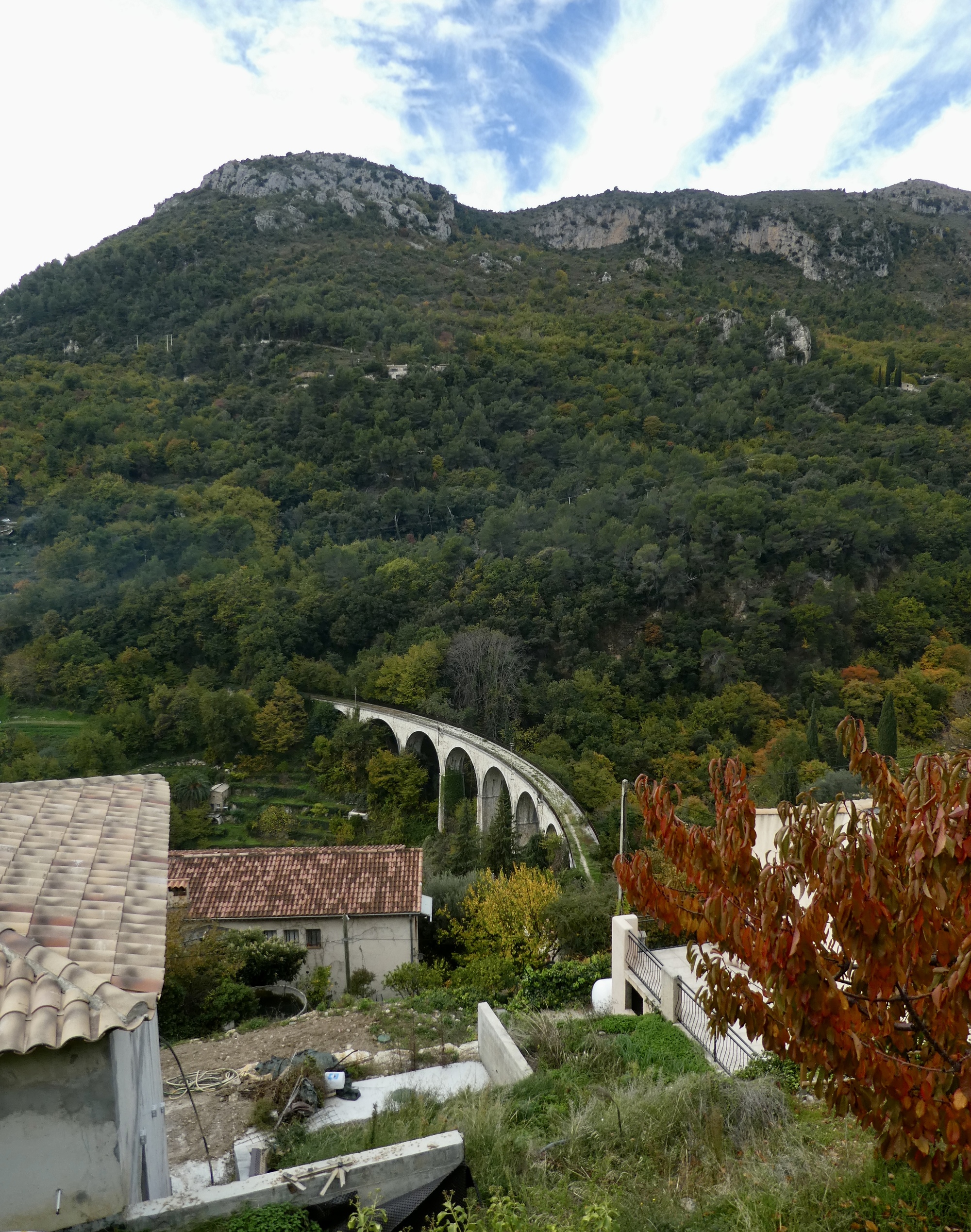 Looking down from Saint-Jeannet at the viaduct across the Cagne, the river cutting in from the north that I mentioned earlier. The viaduct is a remnant of a former tram line from Vence to the coast at Cagne-Sur-Mer.