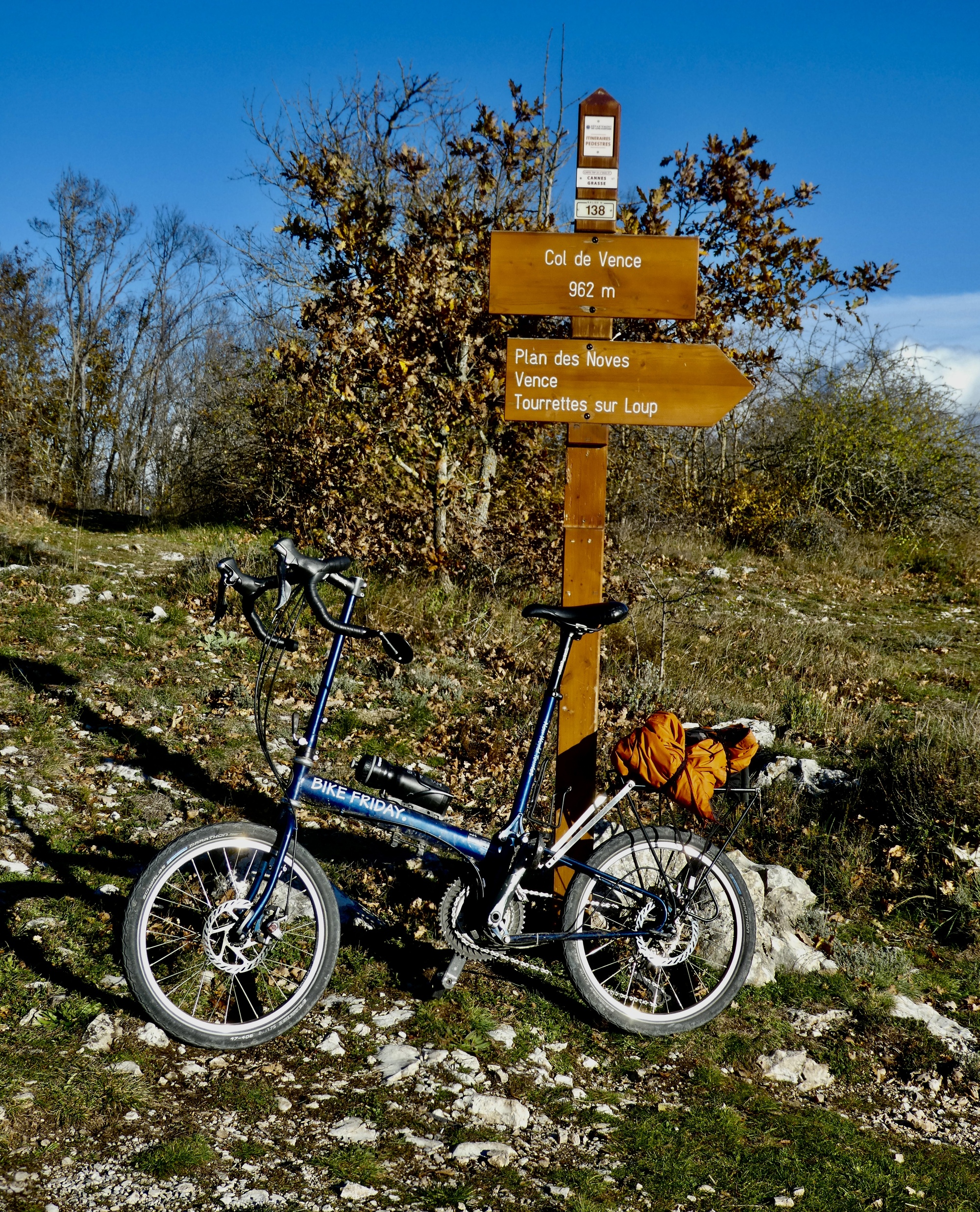 It’s our second layover day in Vence, and while Rachael’s off climbing into the nearby foothills I’m biking east out of town on a loop that will bring me around to Col de Vence from the north before dropping back into Vence at the end. Until seeing that sign for it yesterday I wasn’t aware that there was a Col de Vence, but I was aware of the route from having already scoped out the roads around town before we decided to base ourselves here - it’s the high point on Route D2, the only paved road leaving Vence to the north.
