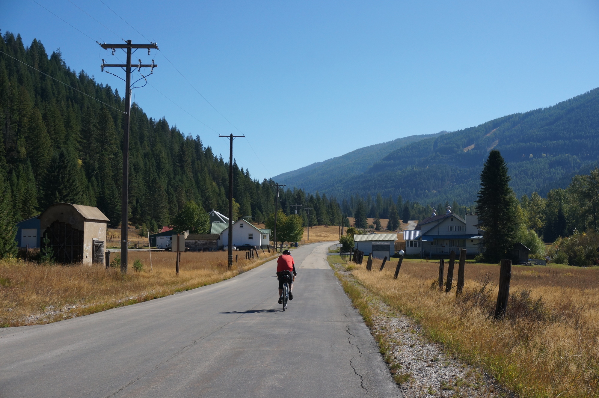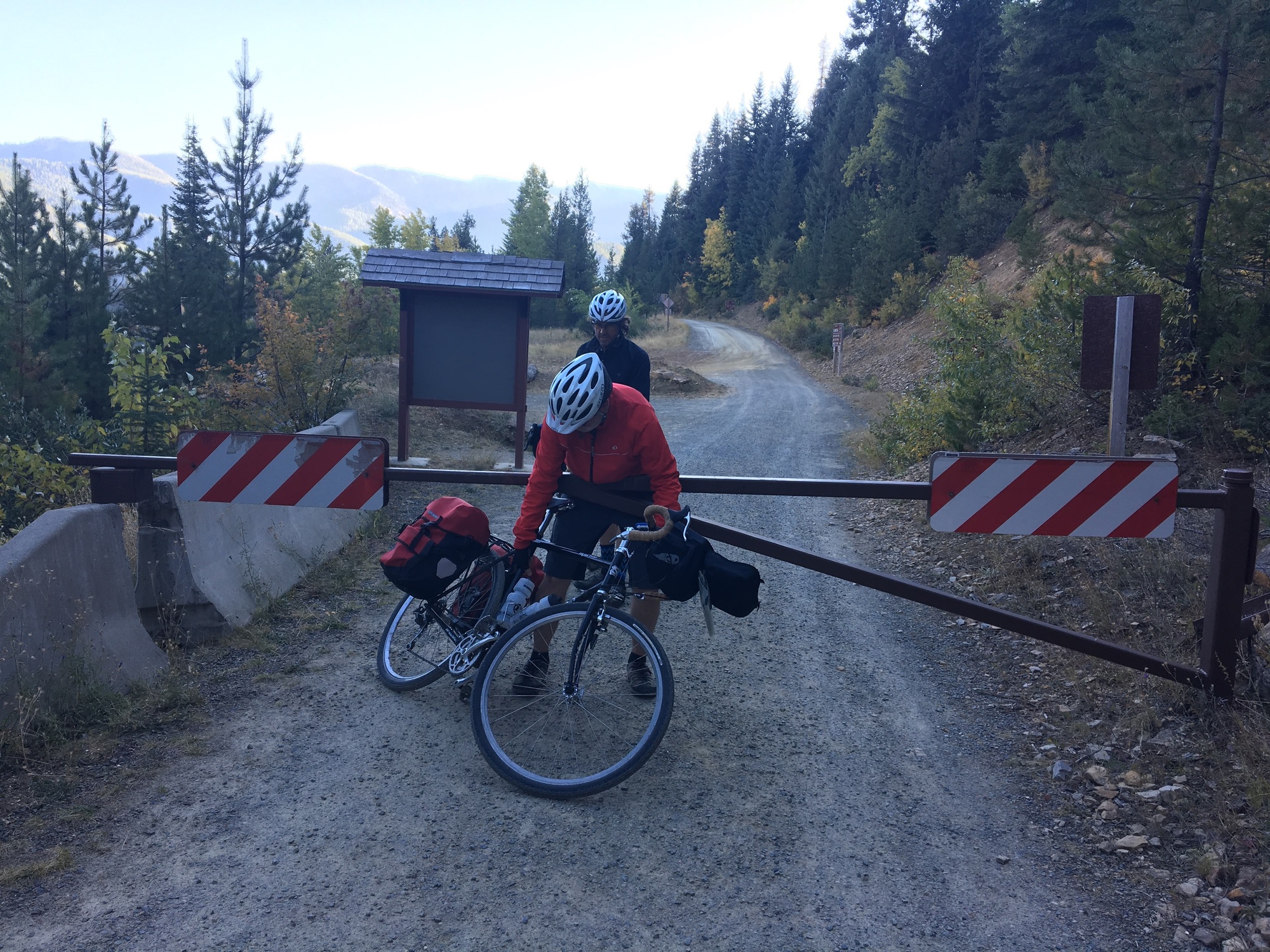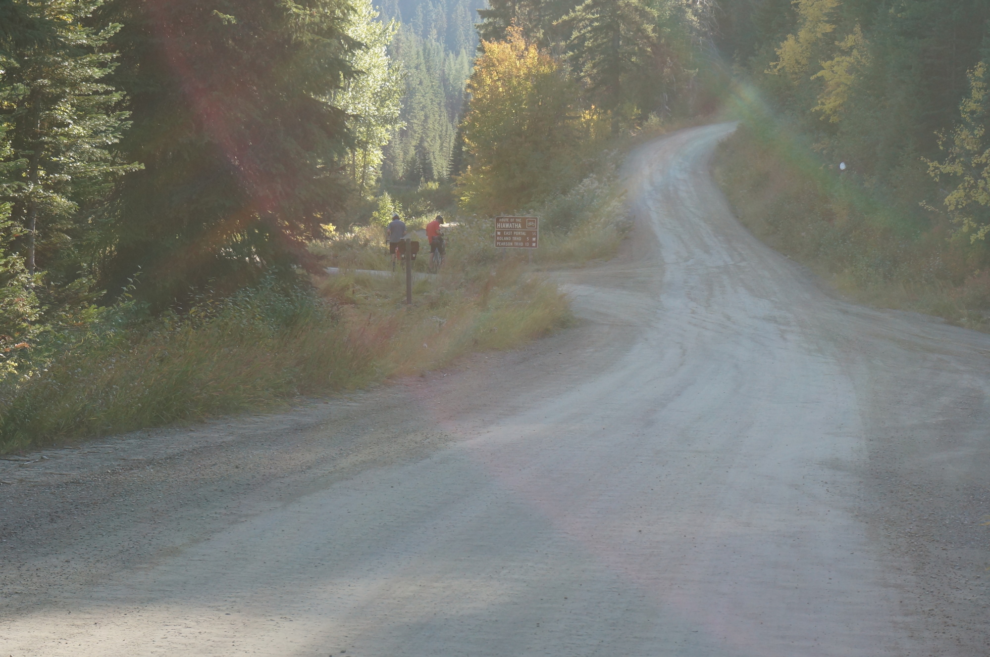 The day started out on the trail of the Coeur d’Alanes which took us to Mullan. From Mullan we took a road that eventually turned to gravel. When that road ended, we picked up the old rail turned gravel road known as the Northern Pacific Trail and started to climb. It was railroad grade, so not too steep, but it was gravel, so it was still a grind.