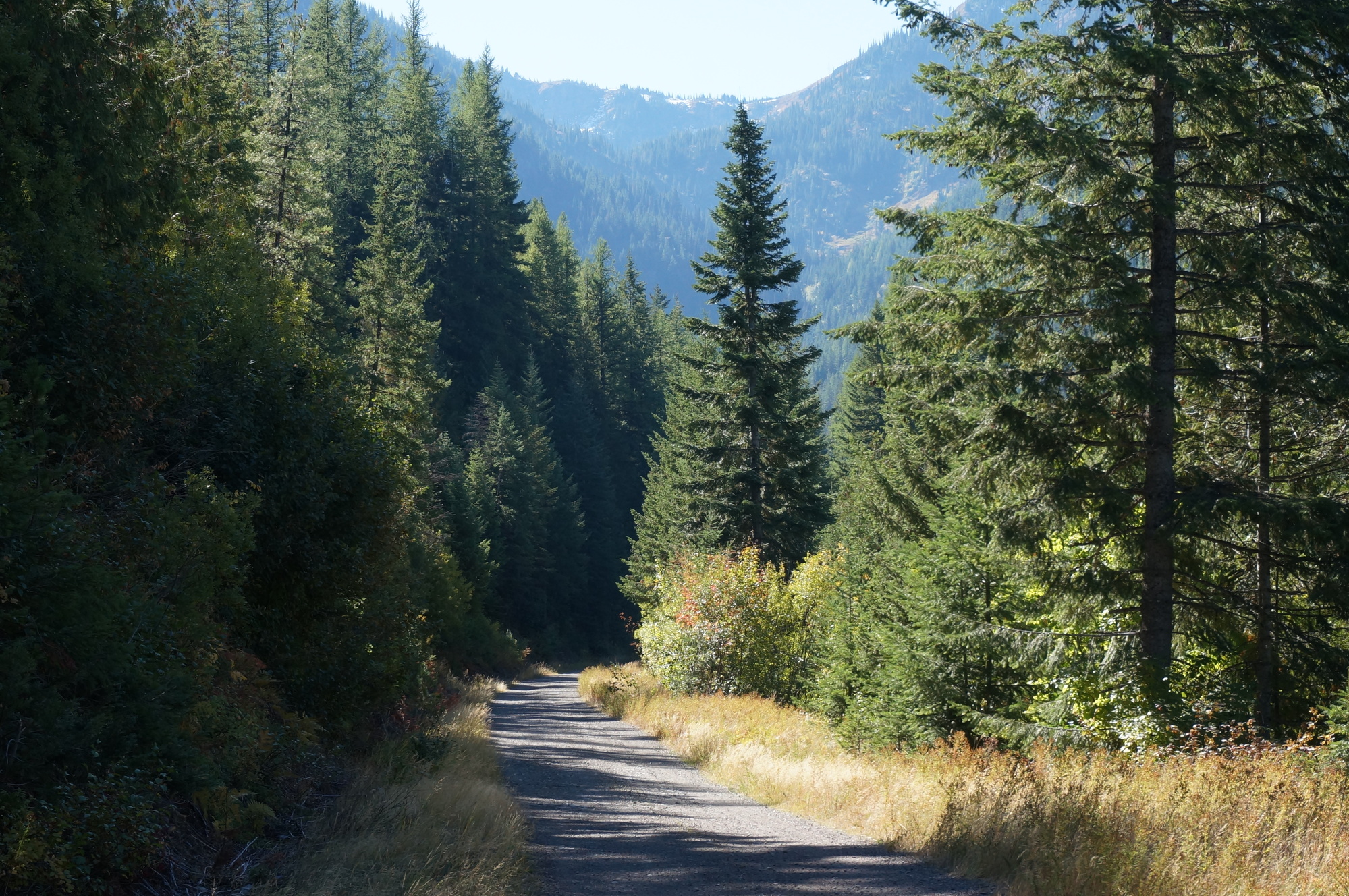 At this point, there were three ways to get to Avery. One was to ride up and over Roland Summit, the mountain that the Route of the Hiawatha tunnel went through. With any luck, we could pick up the rest of the Route of the Hiawatha on the other side of the tunnel and get to Avery before dark. Two was to take a shorter route over Moon Pass. Still a long grind up a gravel road, but easier than Roland Summit. The third choice would be to punt and find a ride. The first choice seemed like a stupid idea, so that's what we did.