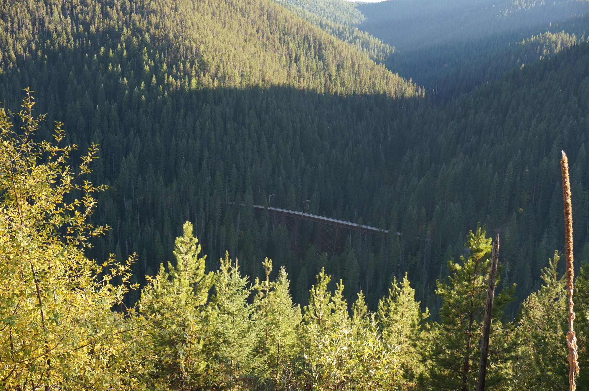 This is a popular section of trail for day users who can rent bikes and be shuttled to and from the trail. For those who are shuttled, it starts out with a 1.6 mile tunnel, followed by a series of trestles and shorter tunnels. We of course, would not be shuttled. The plan was to ride up to it, then ride the Route of the Hiawatha, before riding on to Avery.