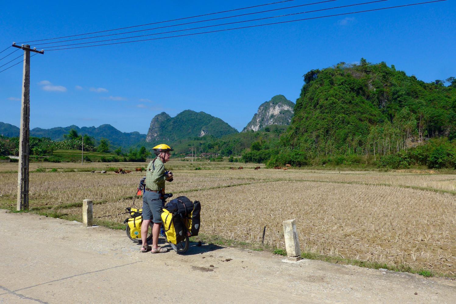 But I did find a section of the map where karst mountains were spaced like warts on a frog’s back, with sinuous little roads winding through them in presumably flat rice-field valleys, and that is the area around Bắc Sơn.